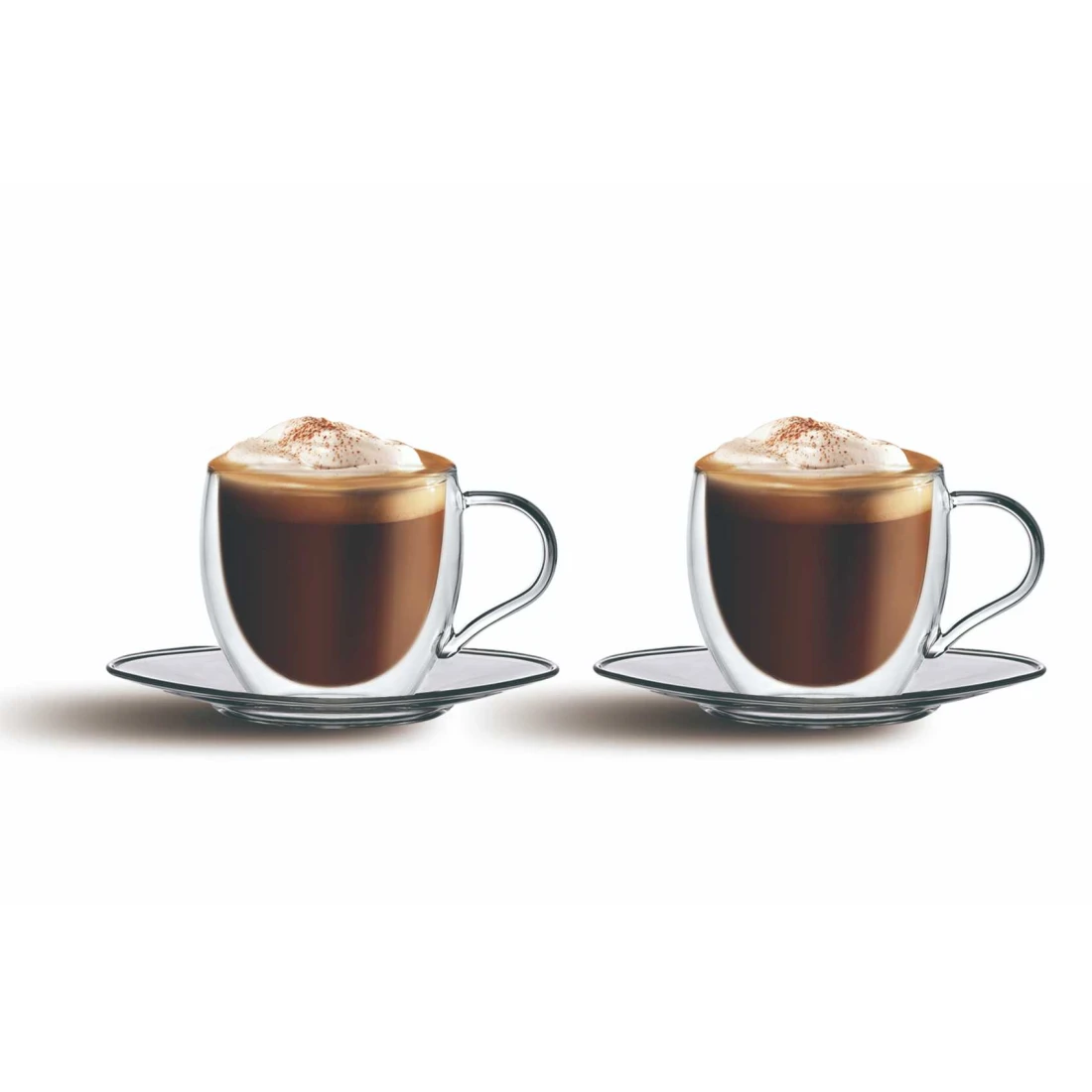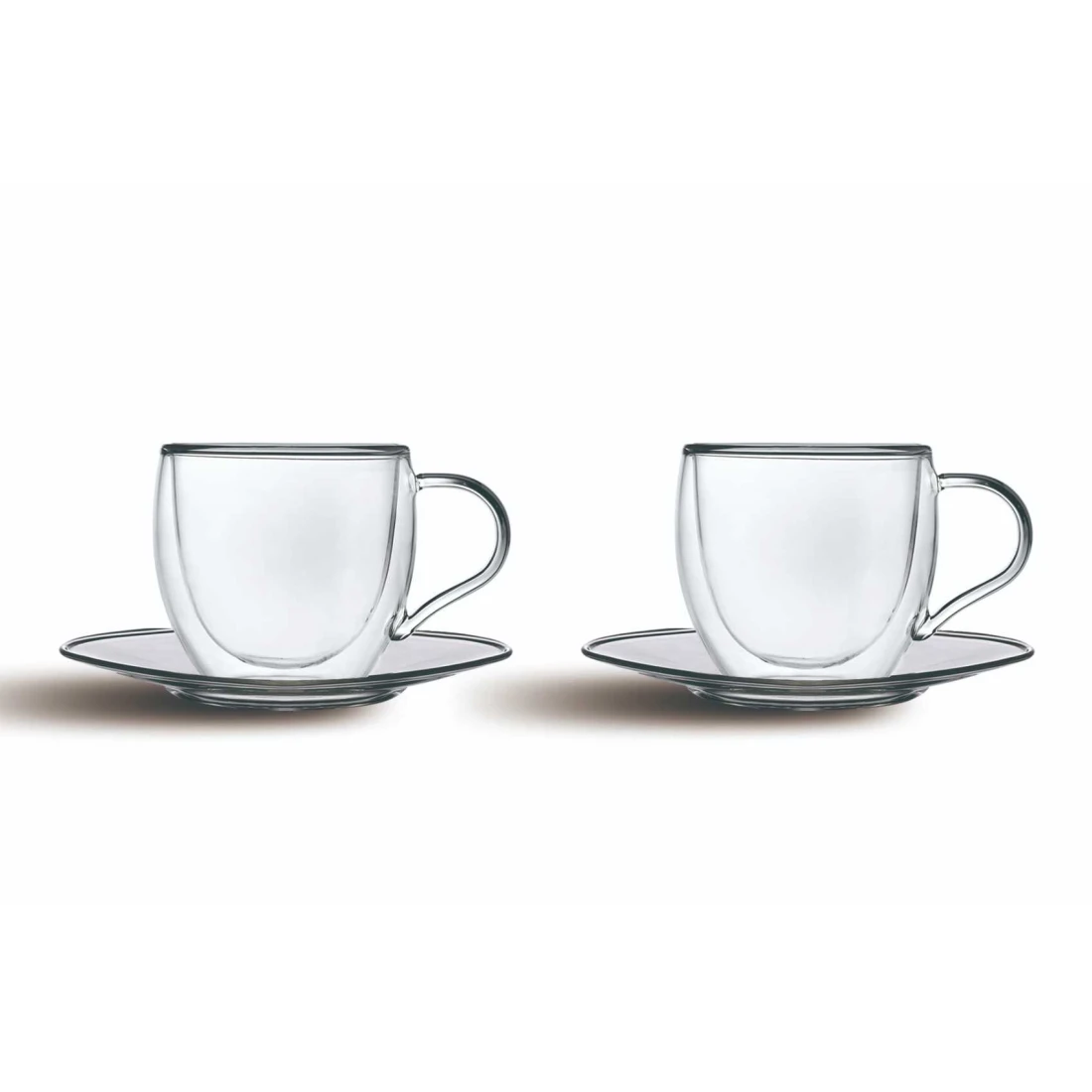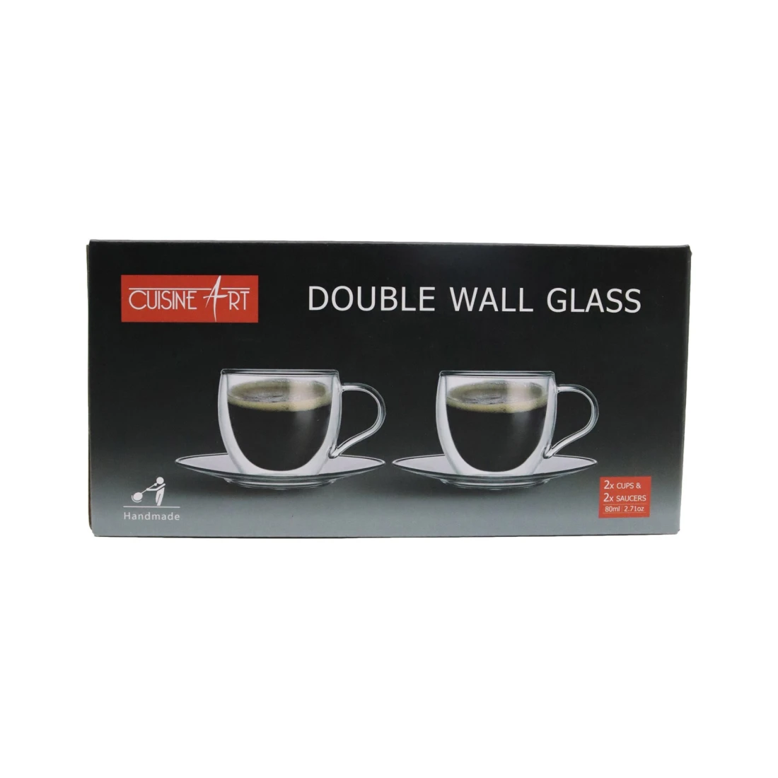 كويزين آرت فناجين قهوة وصحون زجاجية مزدوجة الجدار - شفاف 80 ملل 4 قطع