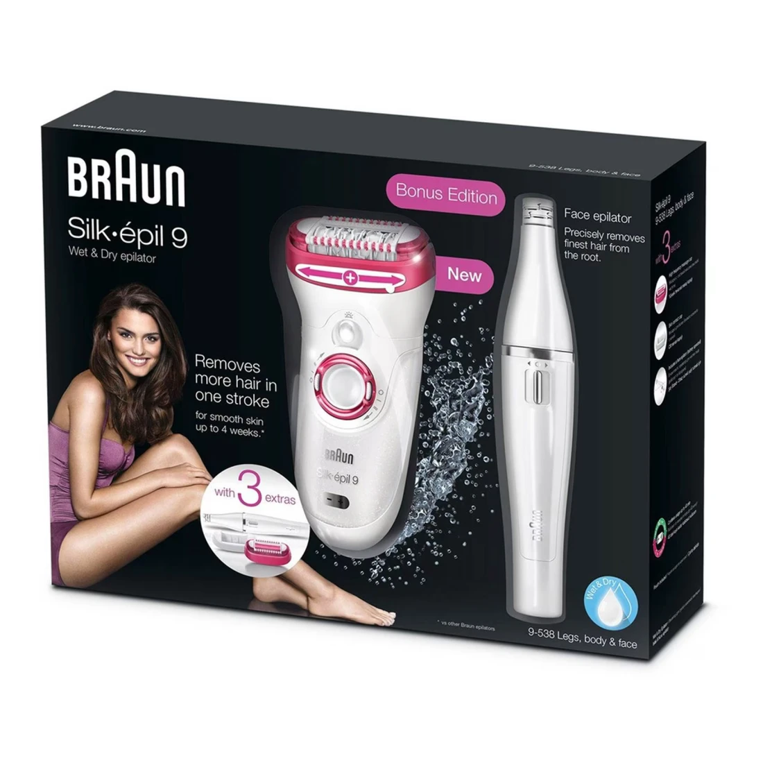 براون سيلك إبيل 9 آلة نزع الشعر للإستخدام الرطب والجاف بدون أسلاك 9-538 - أبيض