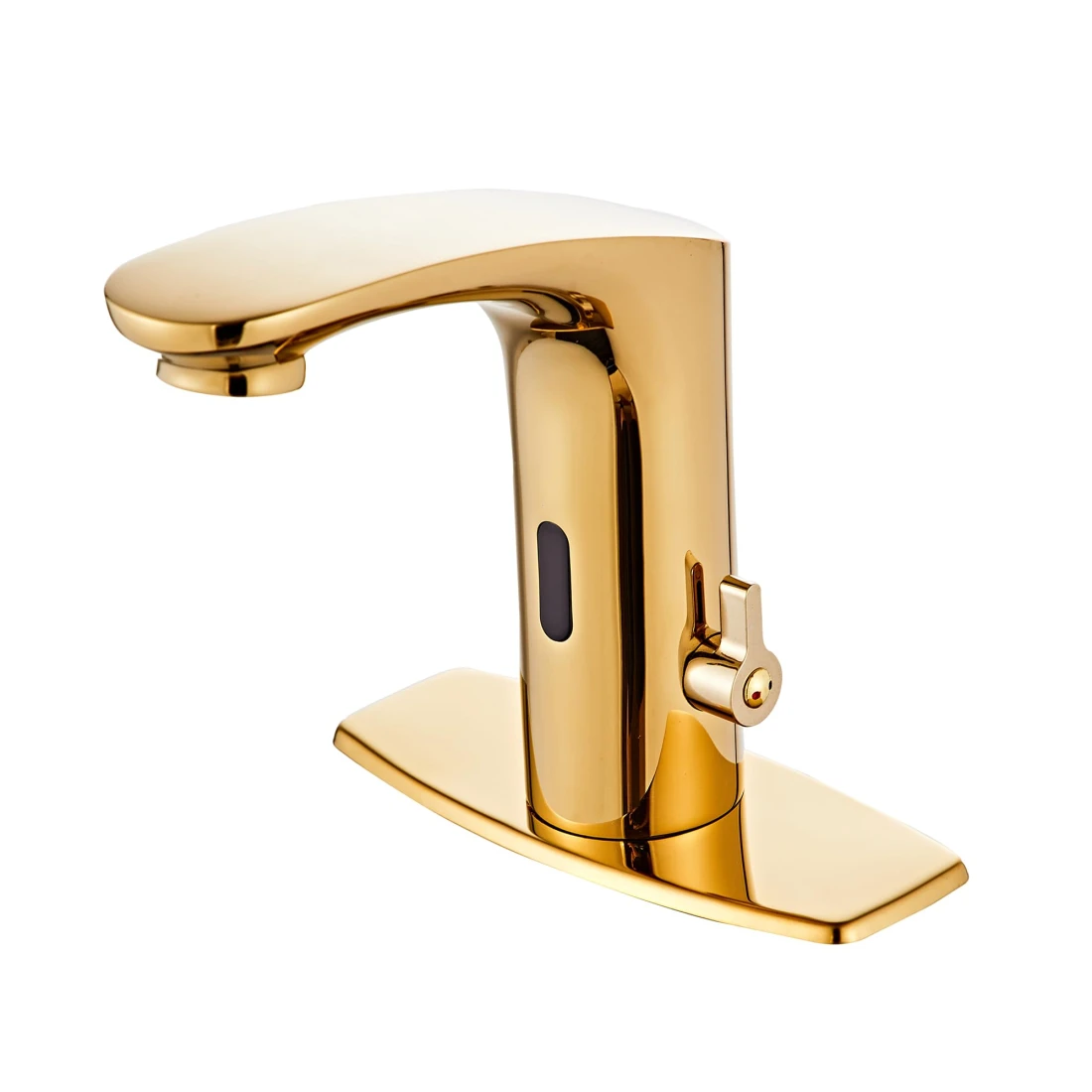 HALO SANITARY Automatic Sensor Faucet Touchless Grifo CEC Watersense for Bathroom Hand Free Robinet with Temperature Adjustable Knob Ideal for School Home Hotel Brushed Gold