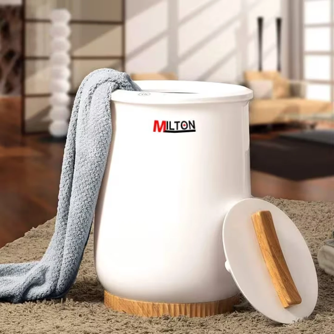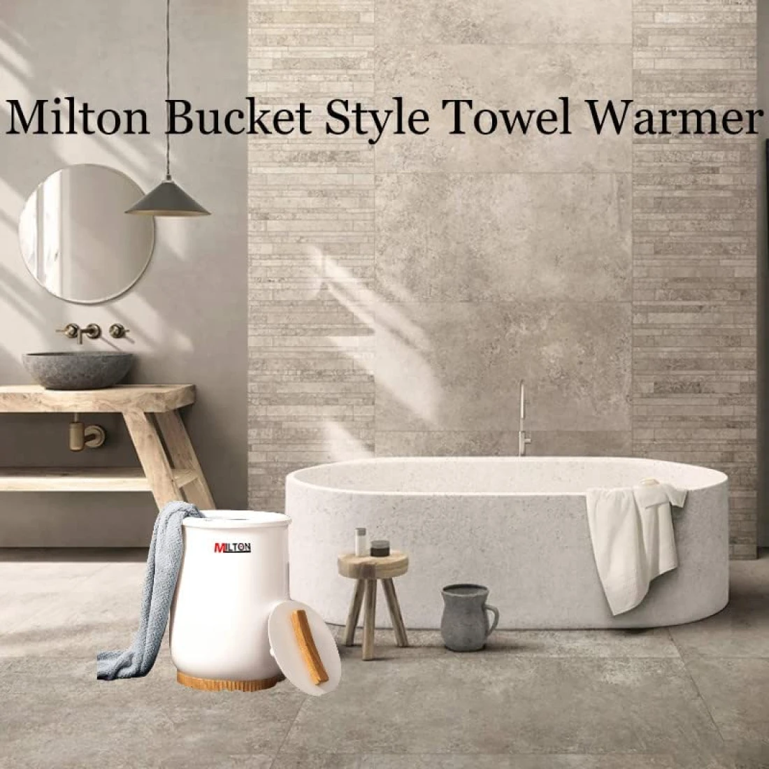 Milton Bucket Style Towel Warmer, Luxury Bucket Towel Warmer, Large Towel Warmer for Bathroom, Auto Shut Off, Fits Up to Two 40"X70" Oversized Towels, Bathrobes, Blankets, PJ's & More, White, CL1.