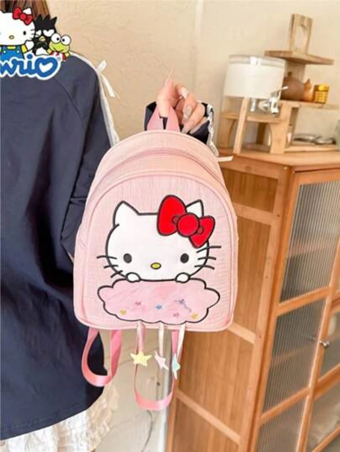 Sanrio حقيبة خفيفة متعددة الاستخدامات للتسوق والحفلات بتصميم كارتوني لطيف يظهر قطة سوداء ميلودي قابلة للعكس للاستخدام الخارجي اليومي أو كحقيبة للوجبات الخفيفة، حقيبة ظهر كلب كانيلا مع أشرطة كتف قابلة للتعديل من هالو كيتي