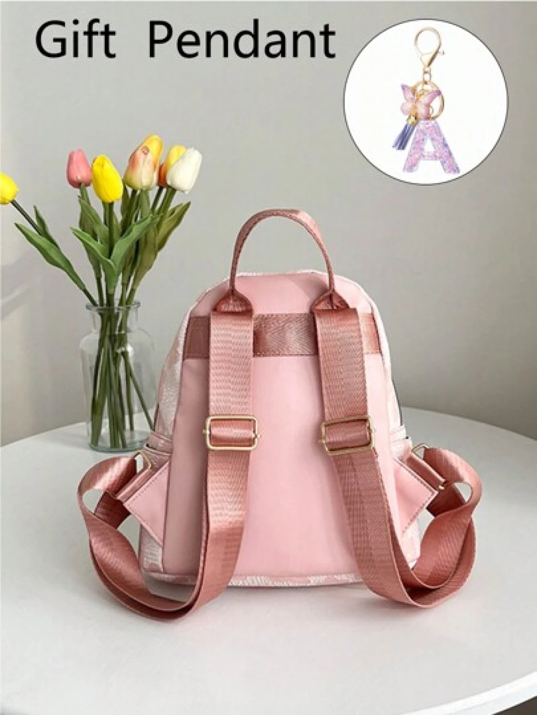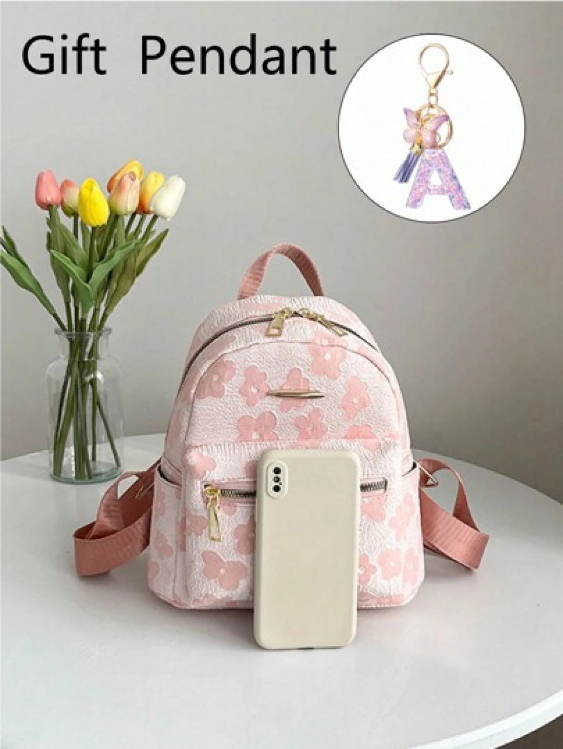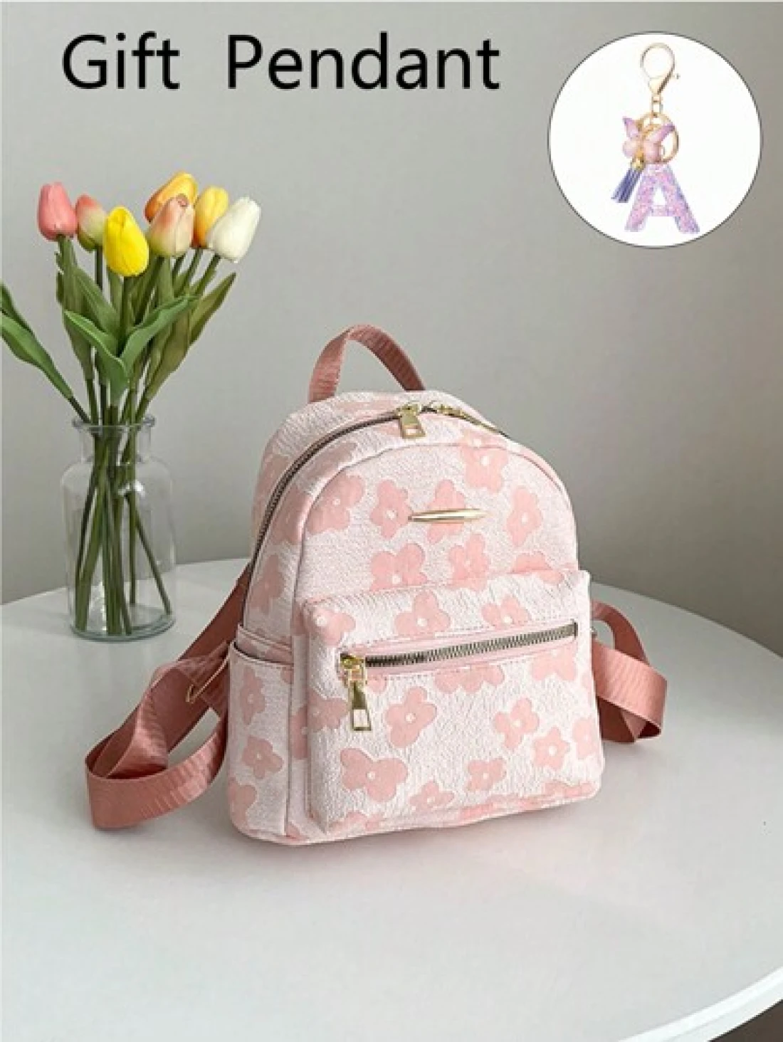 1 طقم حقيبة ظهر كاجوال ذات سعة كبيرة بطباعة رسومية + قلادة بحرف بنفسجي للأطفال الأكبر سناً ، تصميم بسيط وعصري