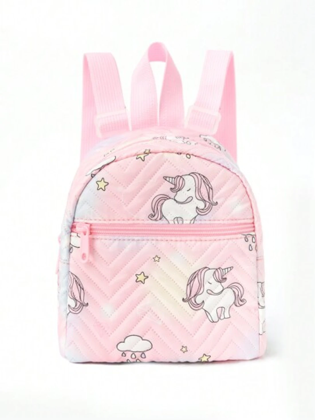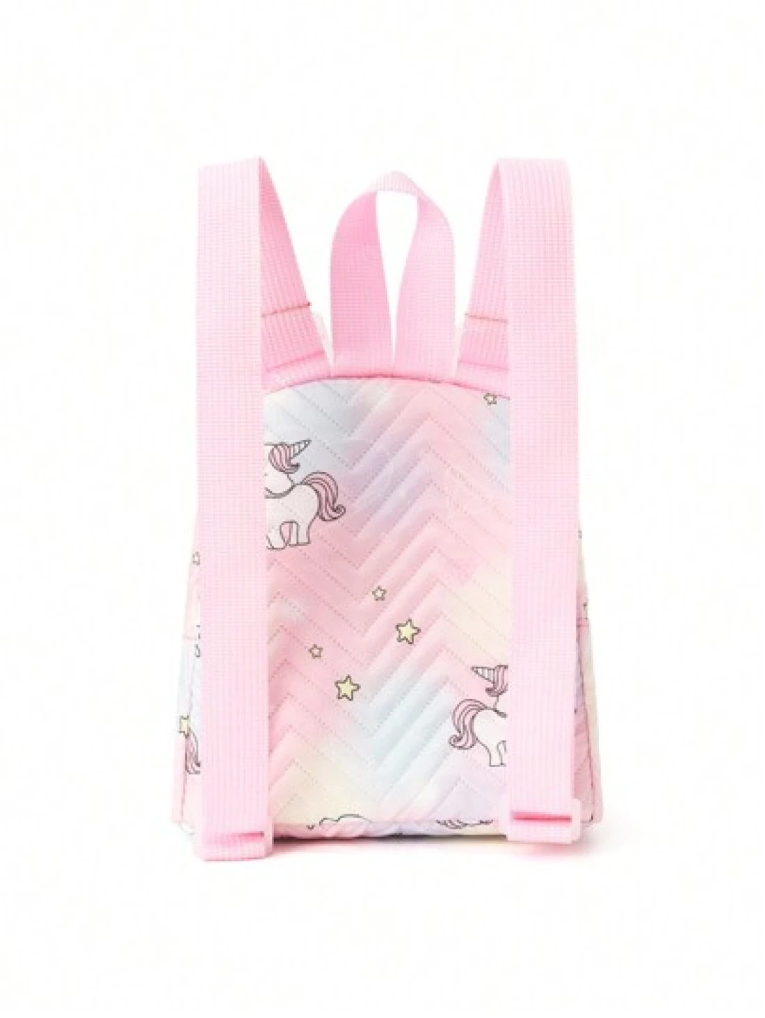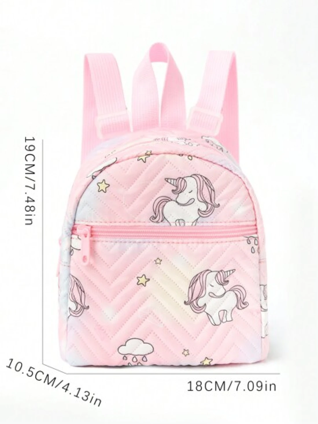 قطعة واحدة من الحقيبة المبطنة المطبوعة بنقش وحيد القرن لطيفة للأطفال، أشرطة الكتف قابلة للتعديل، كاواييية مح