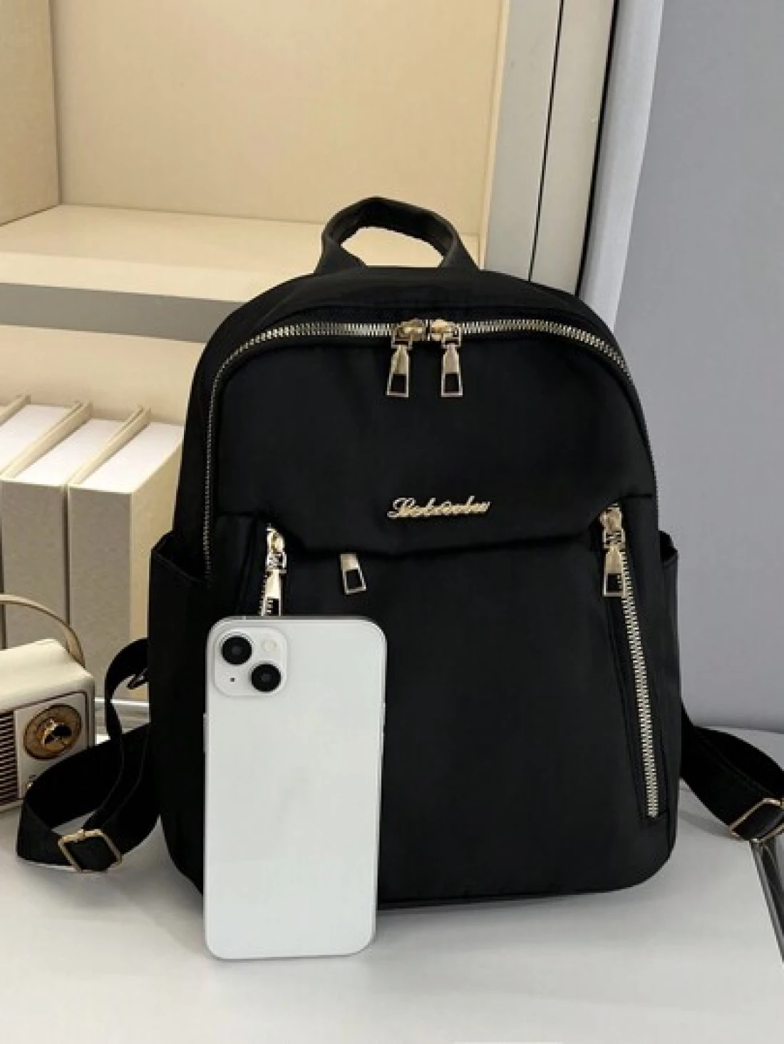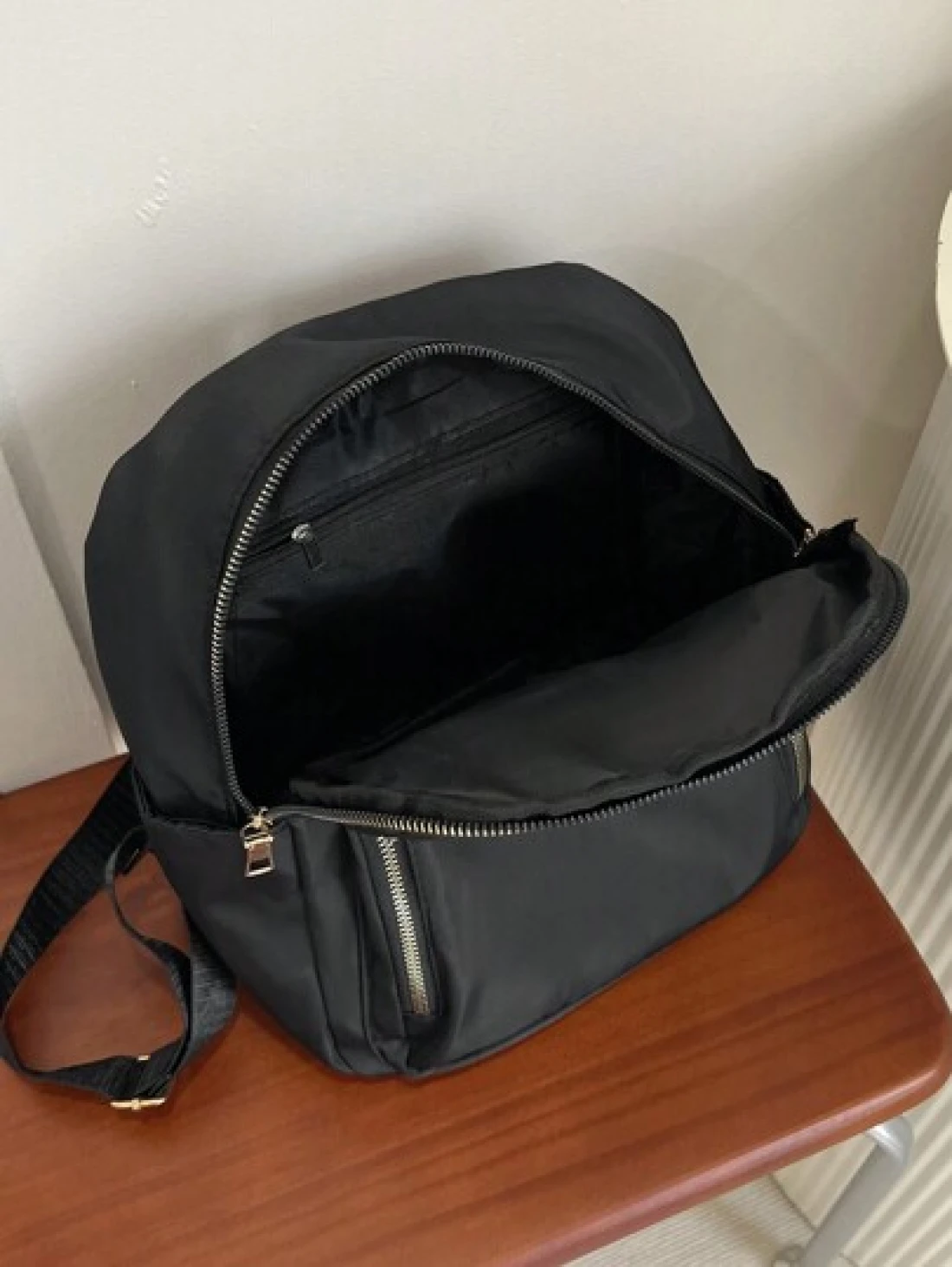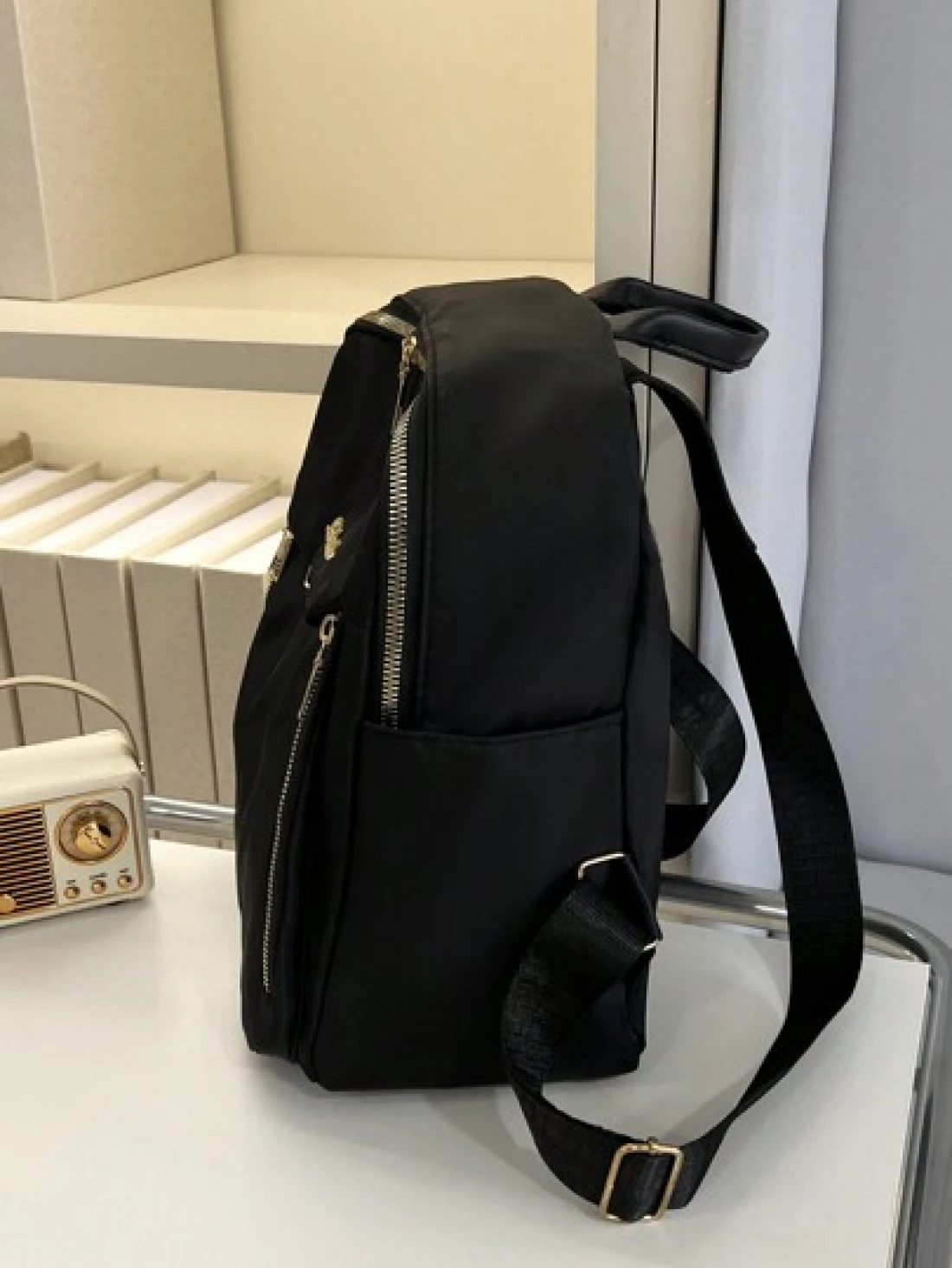 1pc All Black Metal Zipper Nylon Backpack Fashionable And Versatile For Casual Sport School Travel And Date Use For Girl Backpack School Bag S Bag S Backpack Toddler Backpack Mini Backpack Small Backp