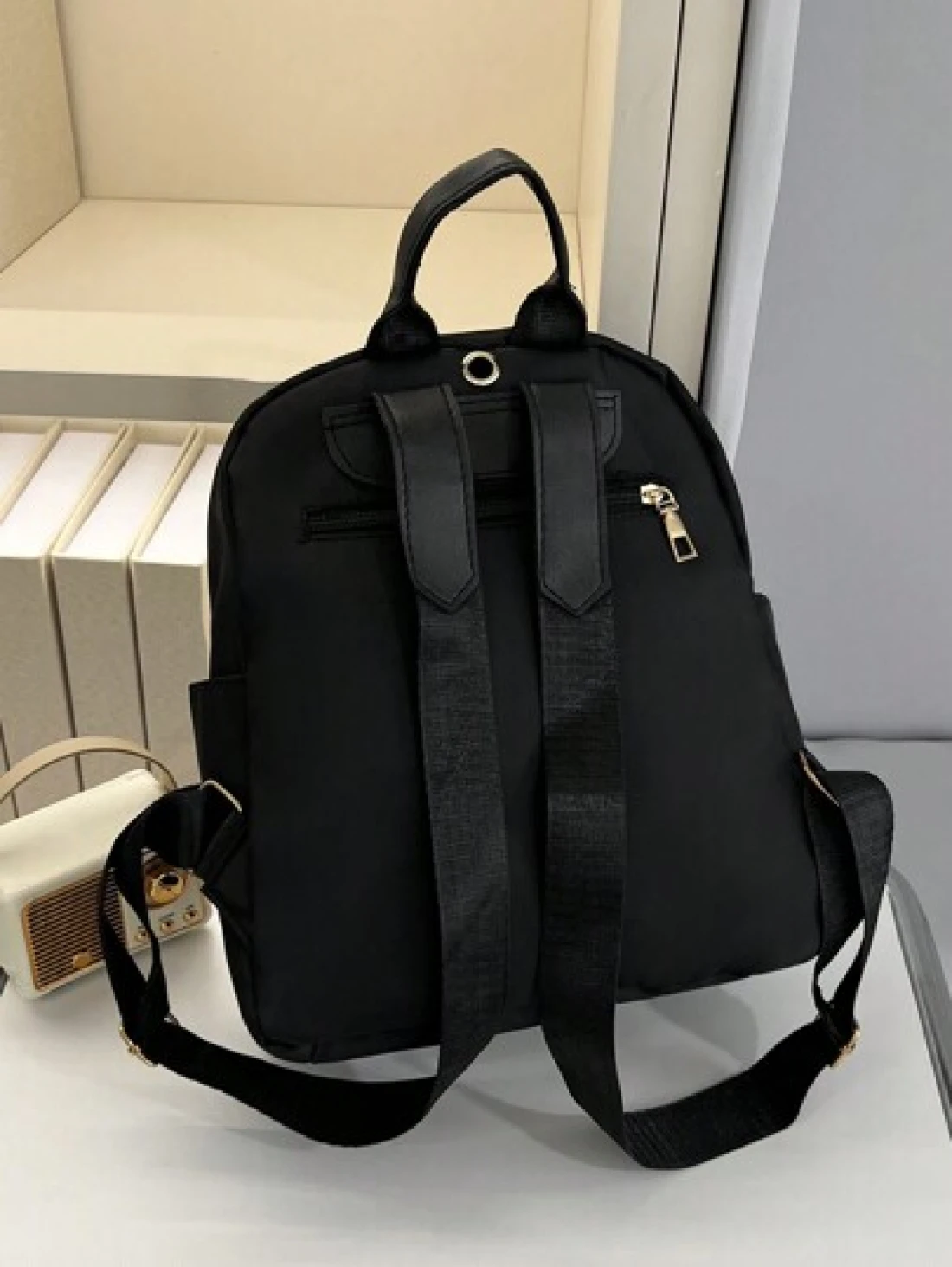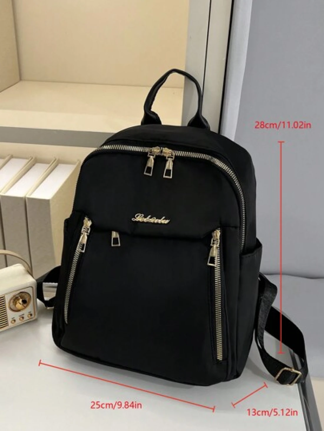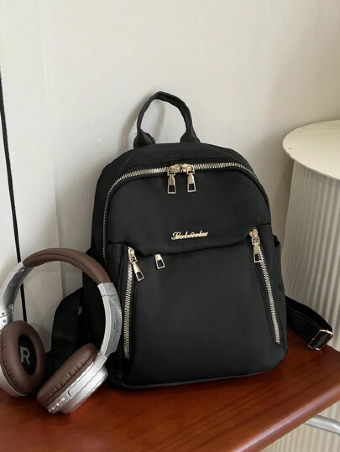 1pc All Black Metal Zipper Nylon Backpack Fashionable And Versatile For Casual Sport School Travel And Date Use For Girl Backpack School Bag S Bag S Backpack Toddler Backpack Mini Backpack Small Backp