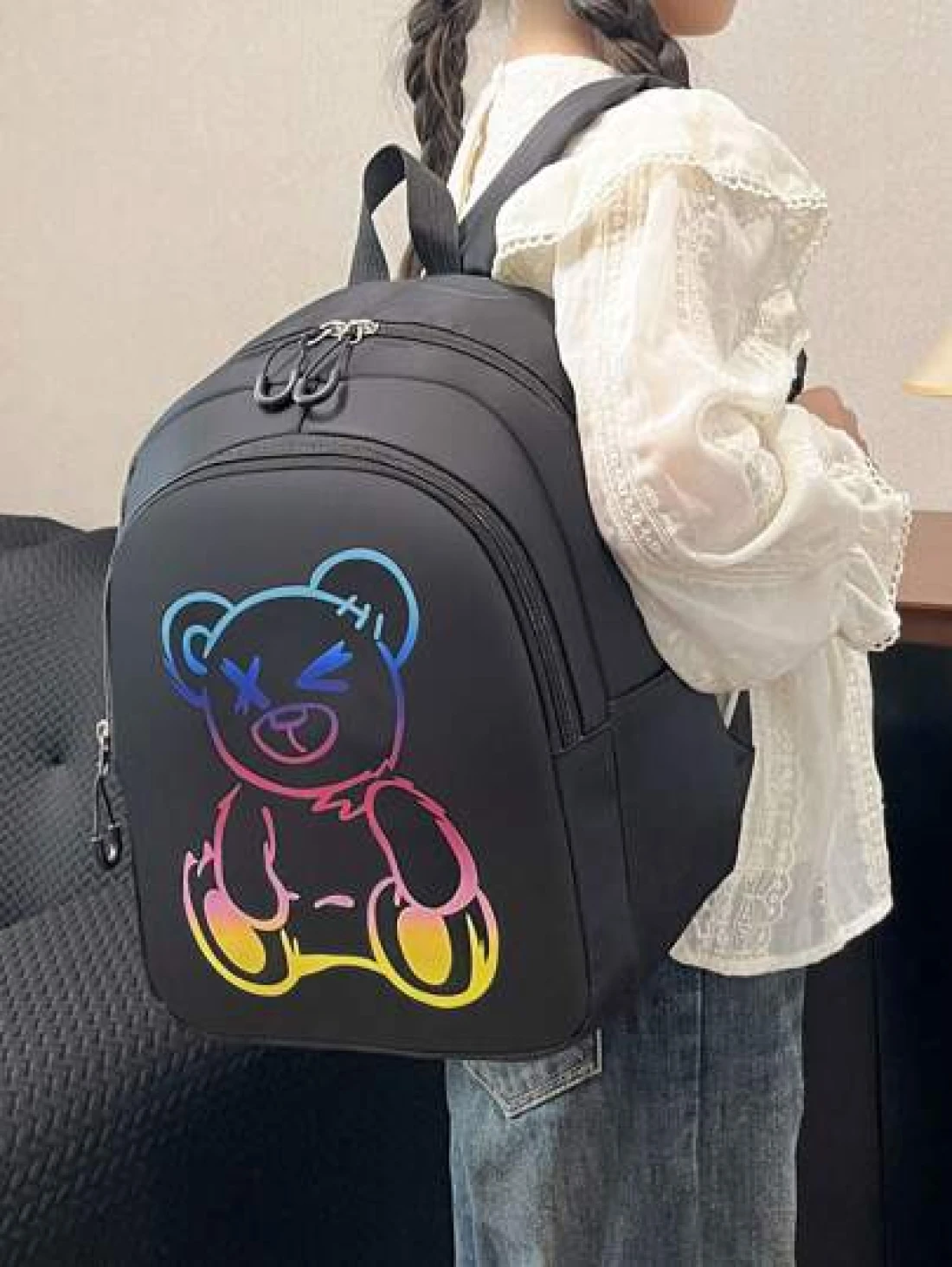 حقيبة ظهر مدرسية جديدة للبنات والأولاد، أنيقة وجذابة بطبعة الدب الكتف، حقيبة سفر عالية الجاذبية