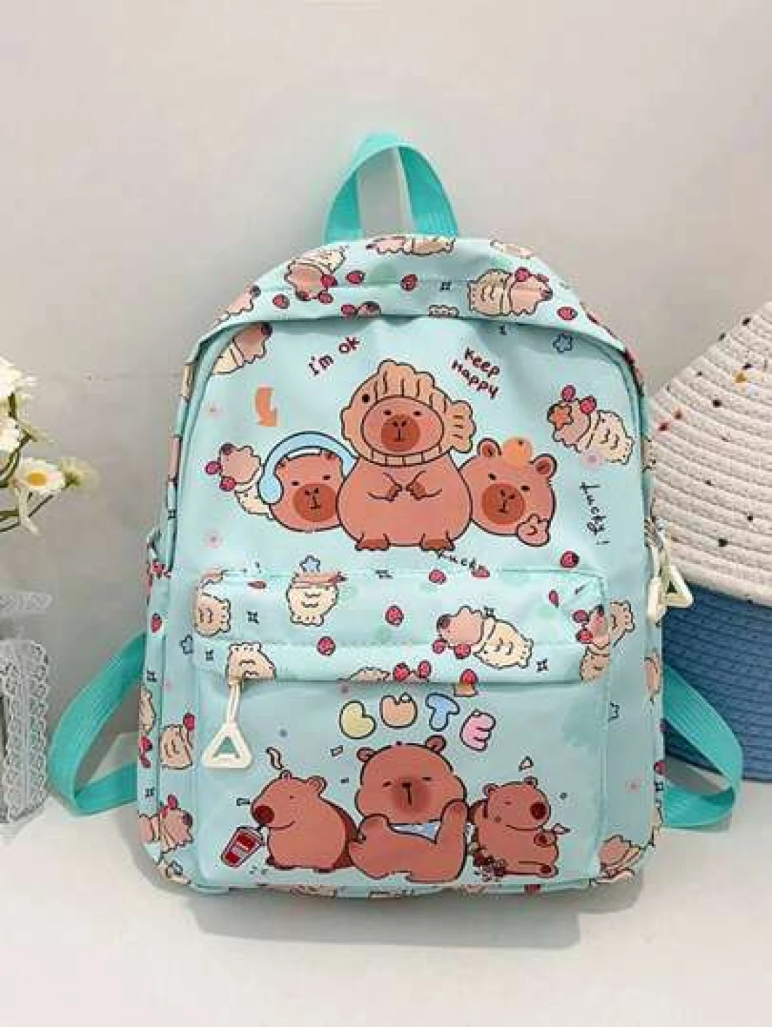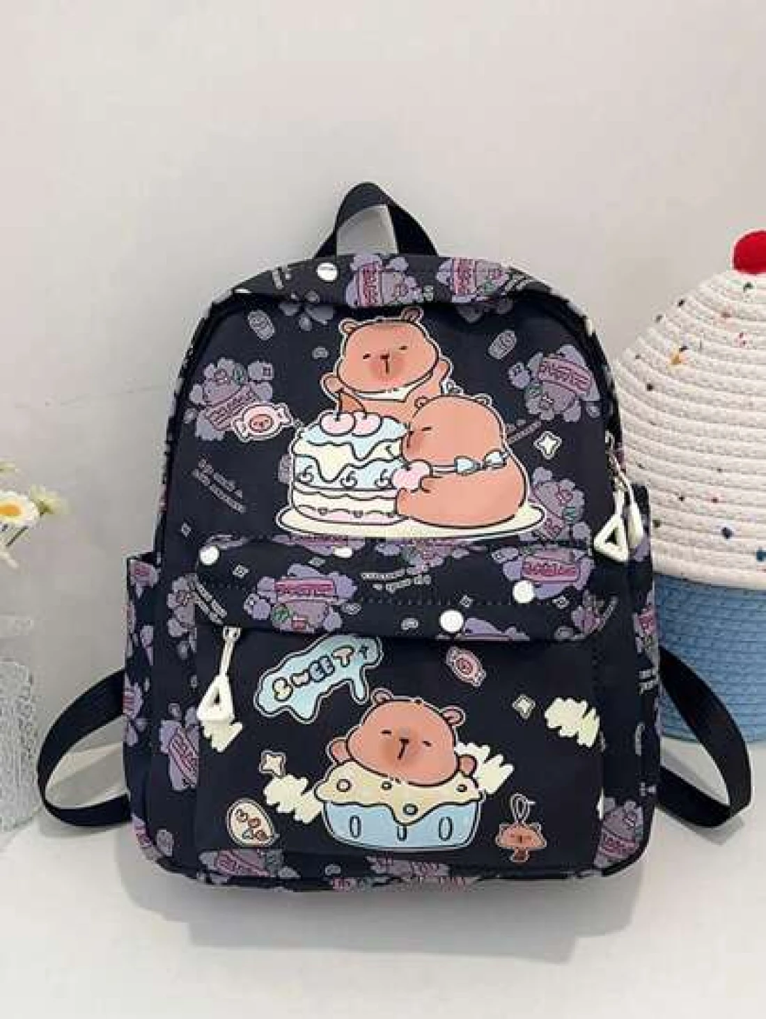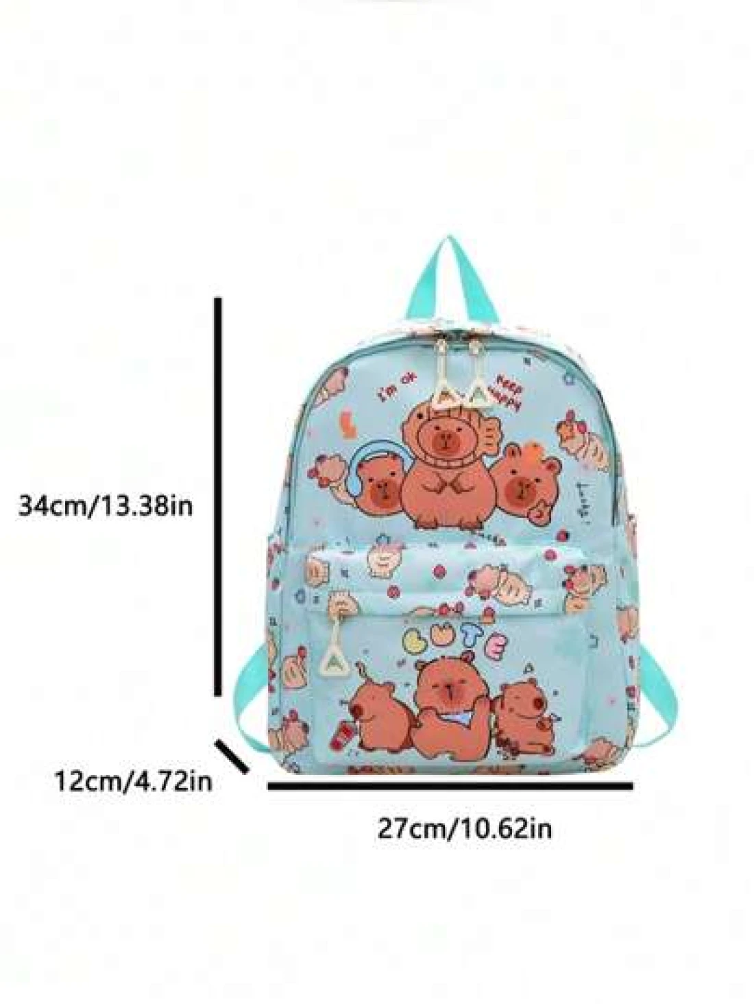 1 حقيبة ظهر من النايلون مغلقة بسوستة ذات تصميم أنيق وجميل للكابيبارا، مع أحزمة كتف قابلة للتعديل مريحة متعددة