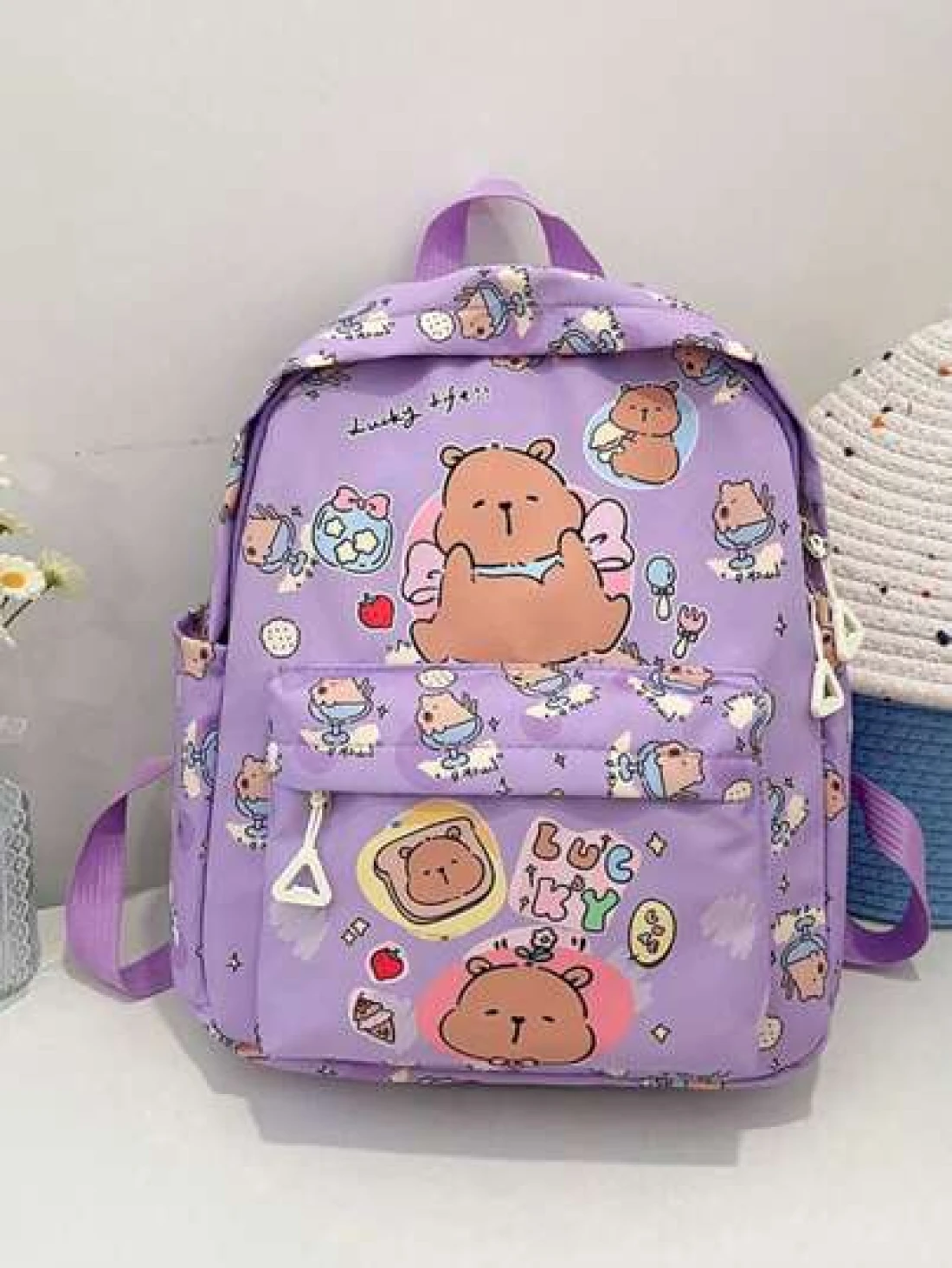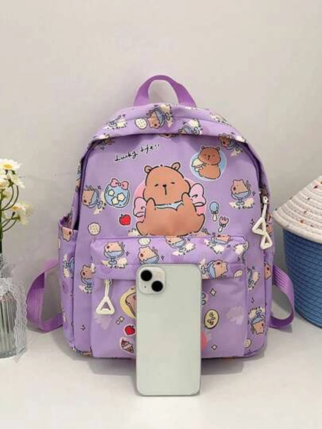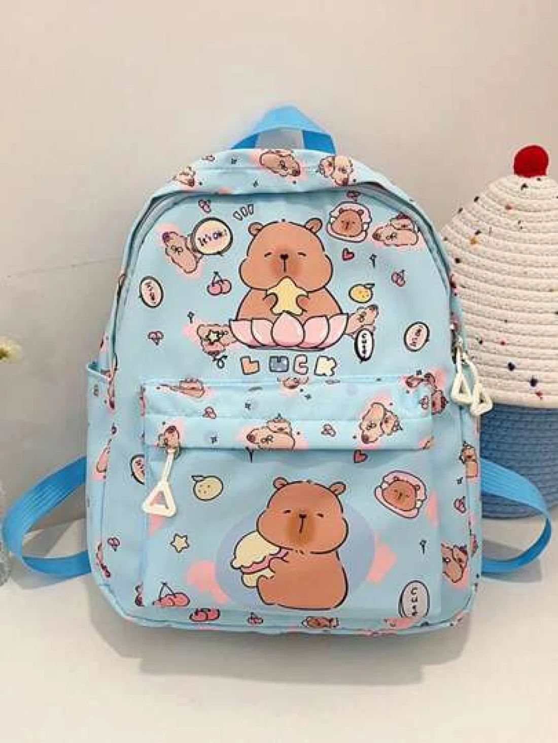 1 حقيبة ظهر من النايلون مغلقة بسوستة ذات تصميم أنيق وجميل للكابيبارا، مع أحزمة كتف قابلة للتعديل مريحة متعددة