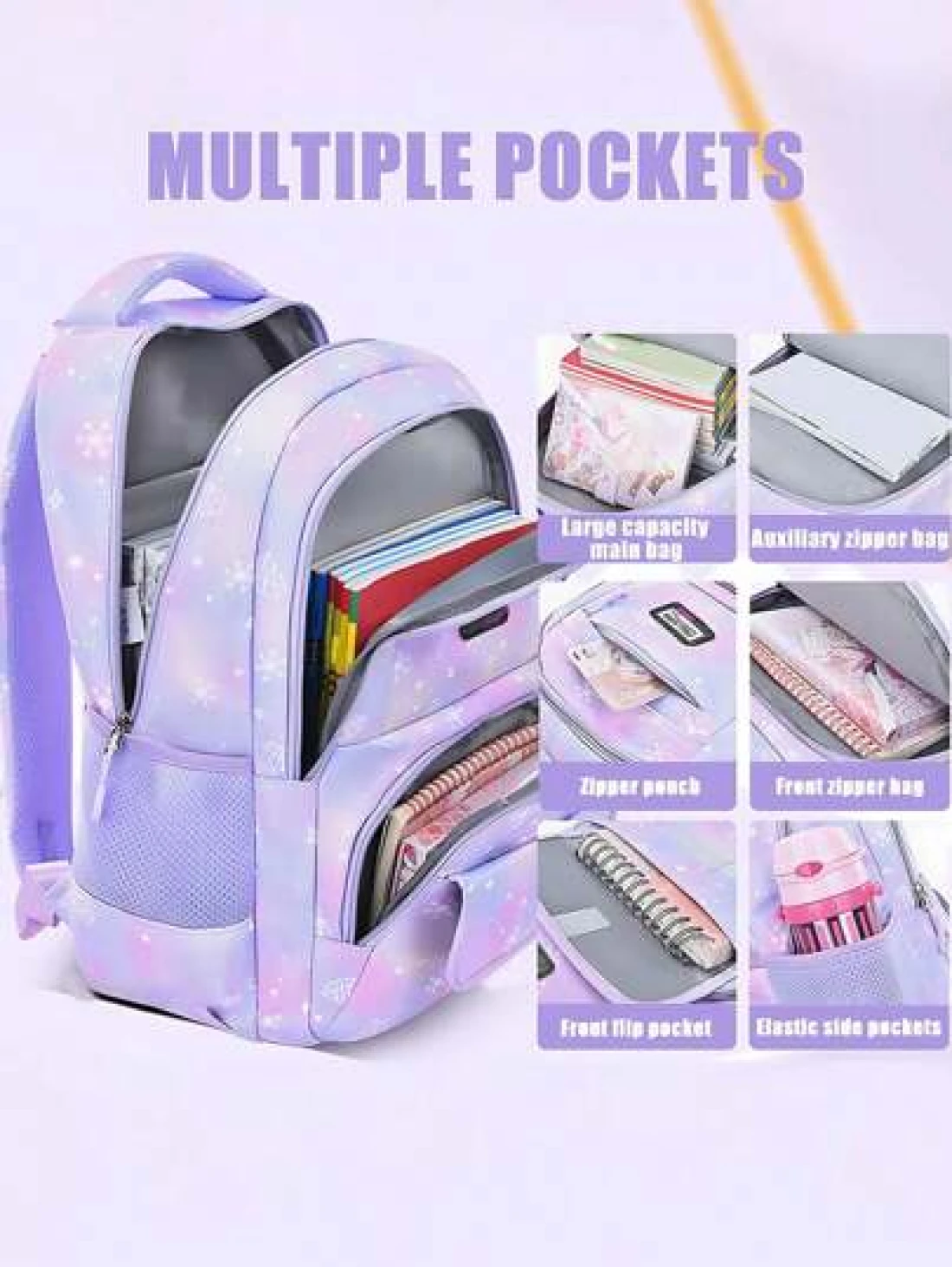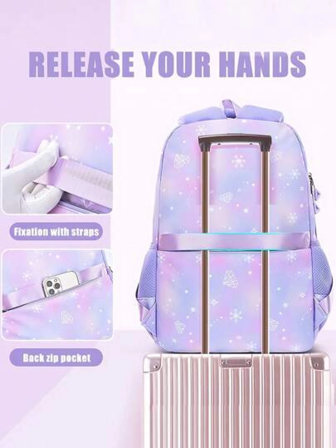 طقم ظهر مدرسي للفتيات 3 قطع، حقيبة مدرسية، حقيبة كتب للطلاب، حقيبة سفر خارجية، شنطة قلم رصاص، حقيبة غداء، مناس