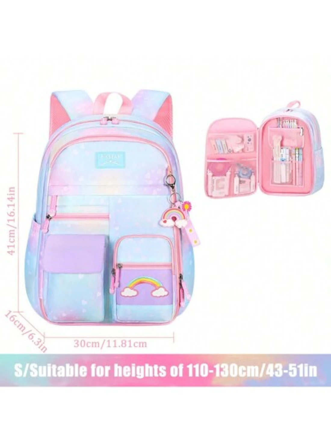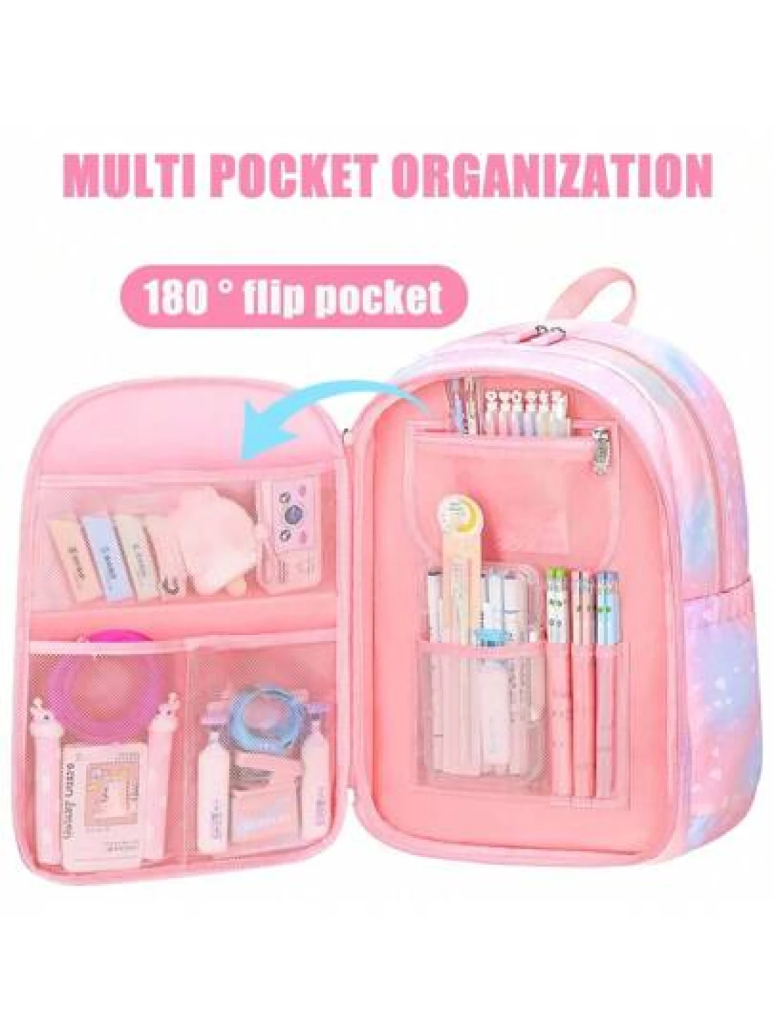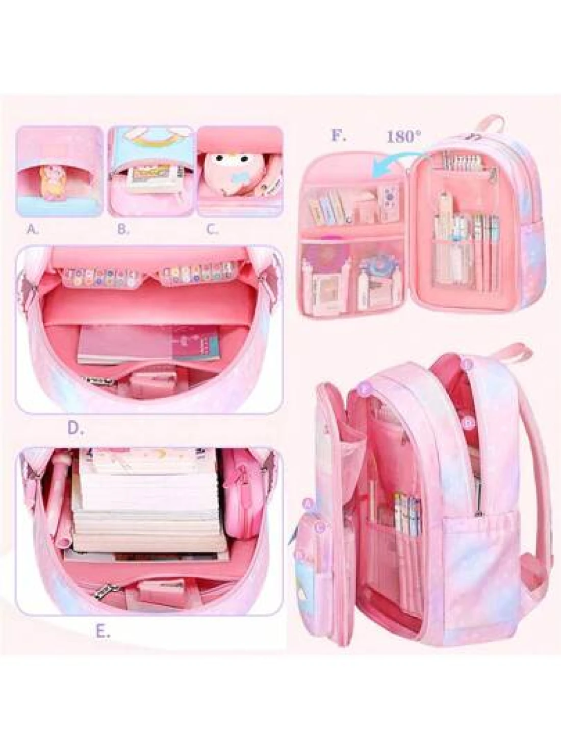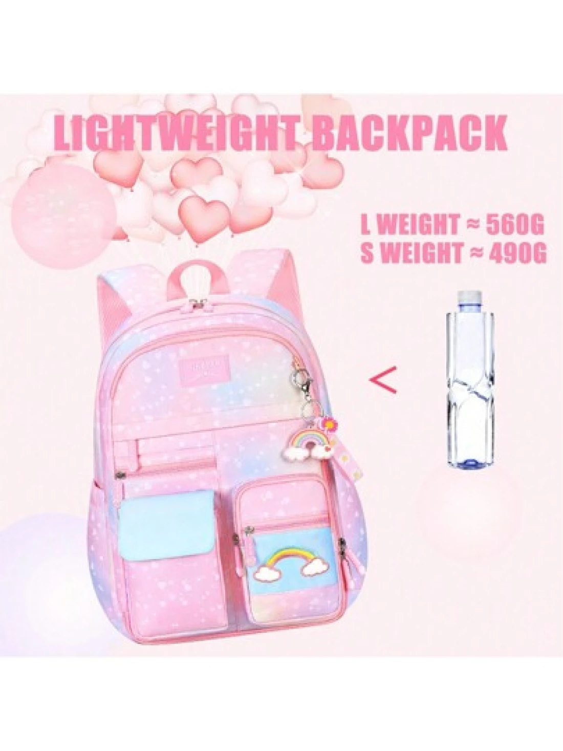 حقيبة ظهر مدرسية أنيقة خفيفة الوزن و بسعة كبيرة مصنوعة من النايلون مع جيوب متعددة للبنات والأولاد والسفر العادي والمدرسة والتخييم