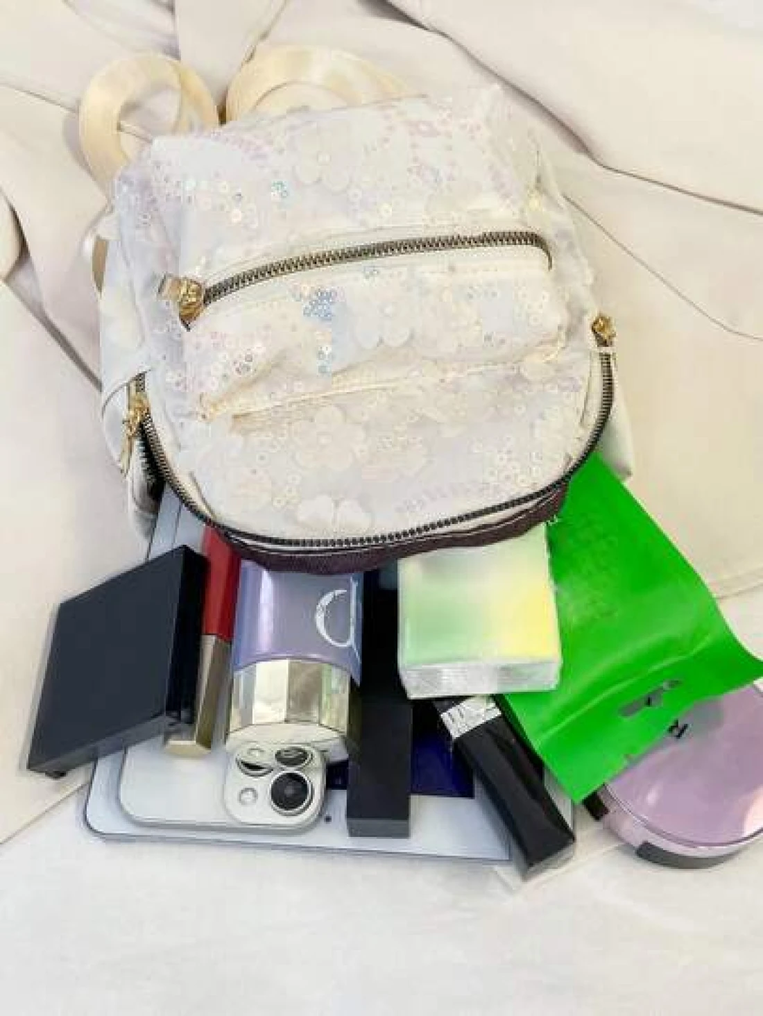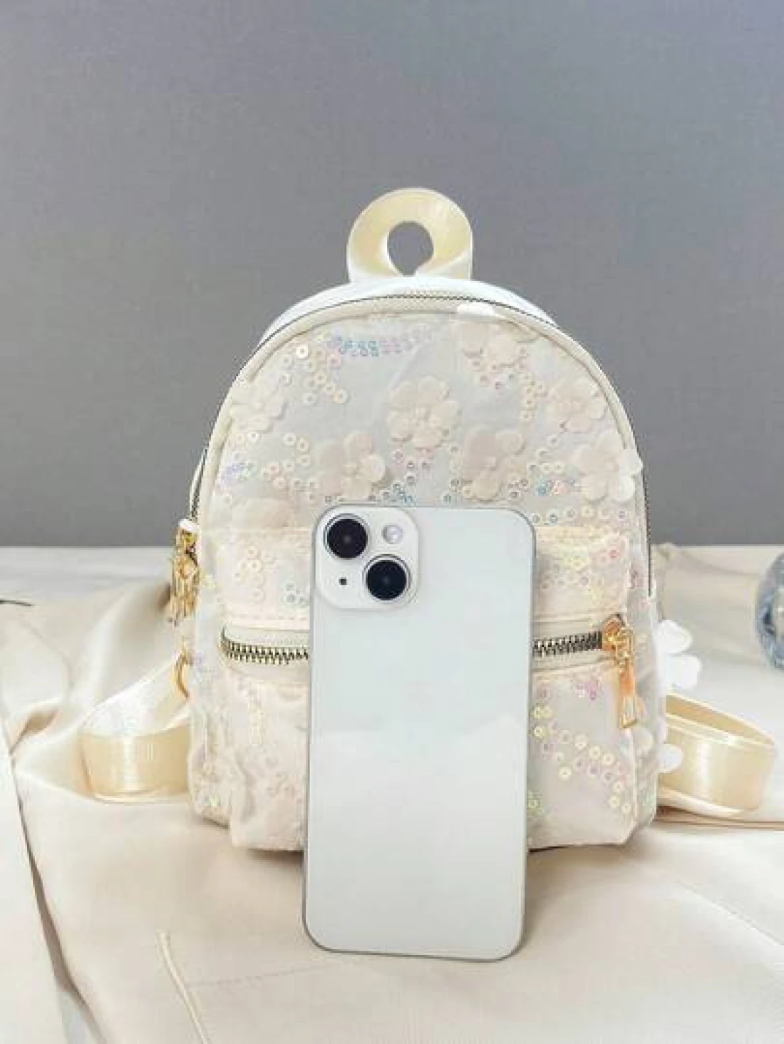 حقيبة ظهر عصرية للأطفال بأزهار صغيرة وتطريزات براقة