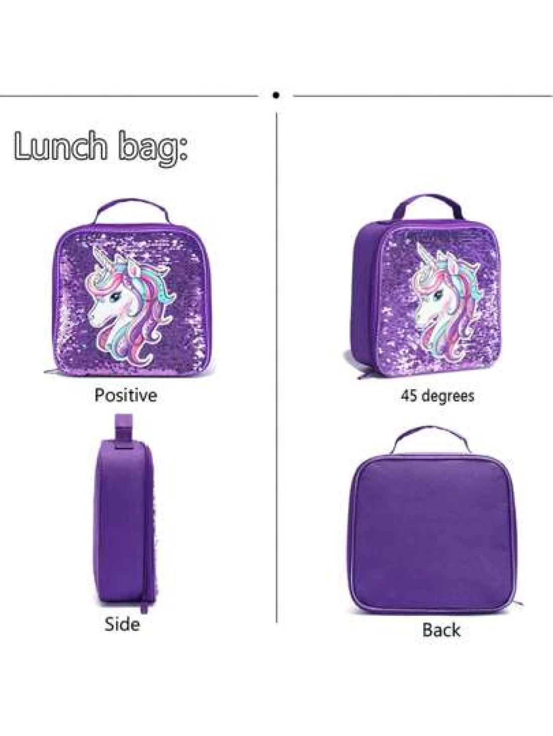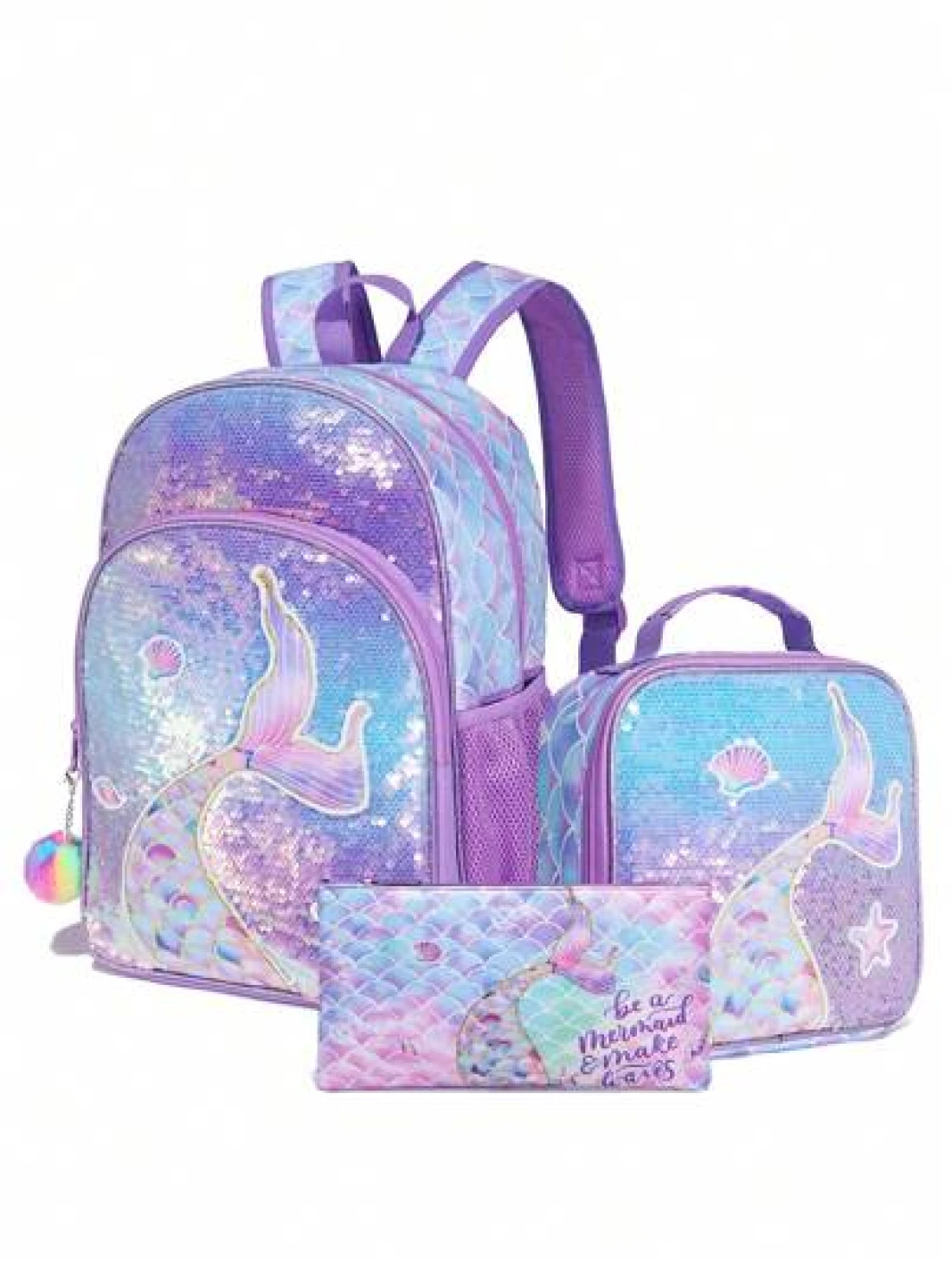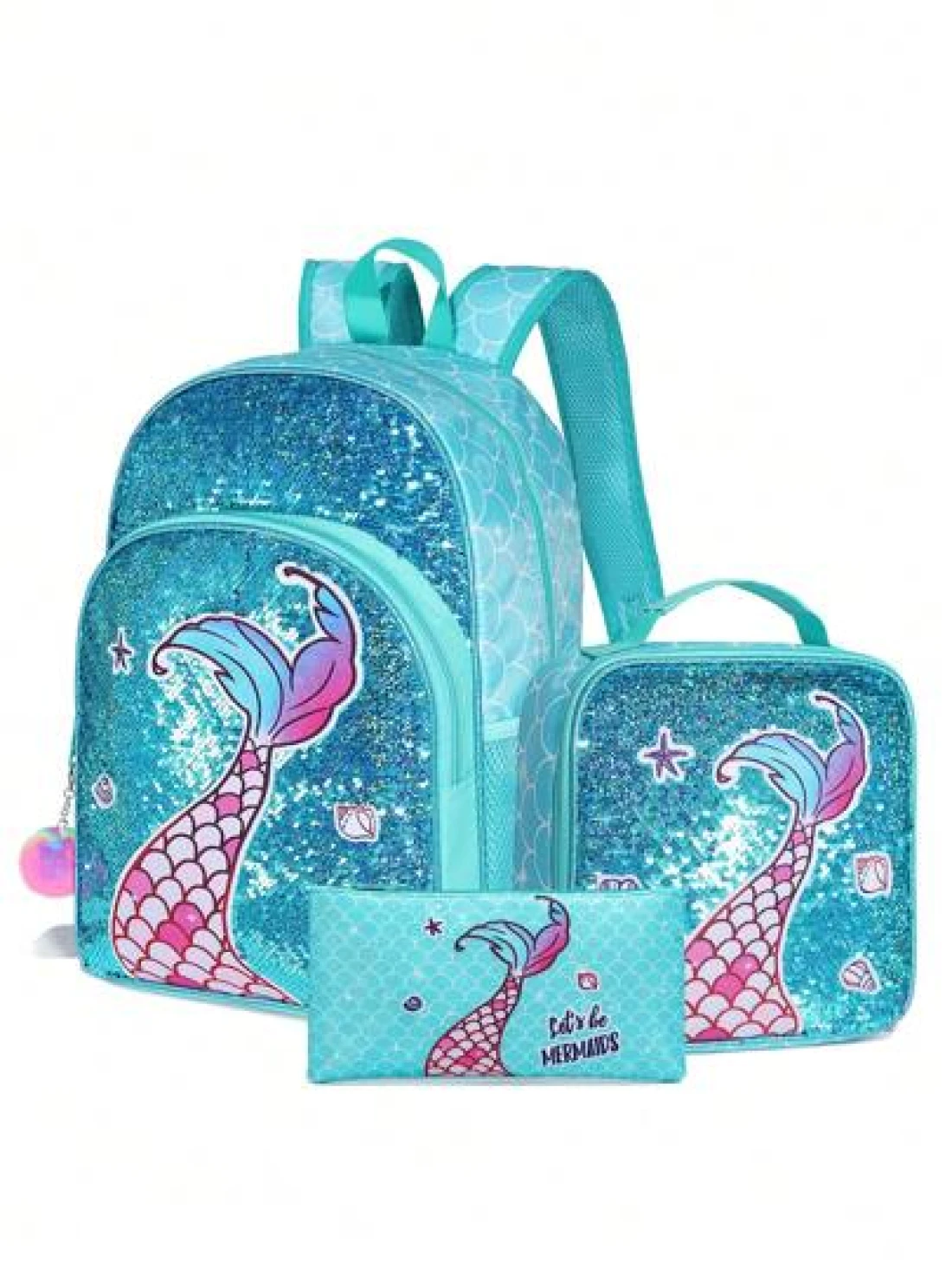 3 حقائب ظهر، حقيبة ظهر مرصعة بالترتر، حقيبة كتف، صندوق غداء، علبة أقلام