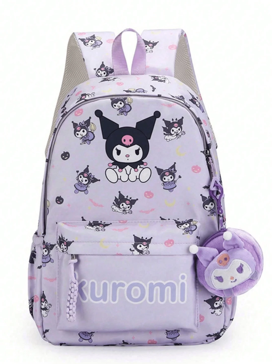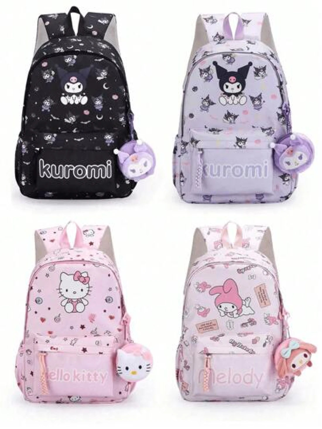 Sanrio 1 حقيبة ظهر، حقيبة مدرسية أنيقة كاواييي، حقيبة ظهر ملونة للبنات، حقيبة نهارية قابلة للطي ذات سعة كبيرة