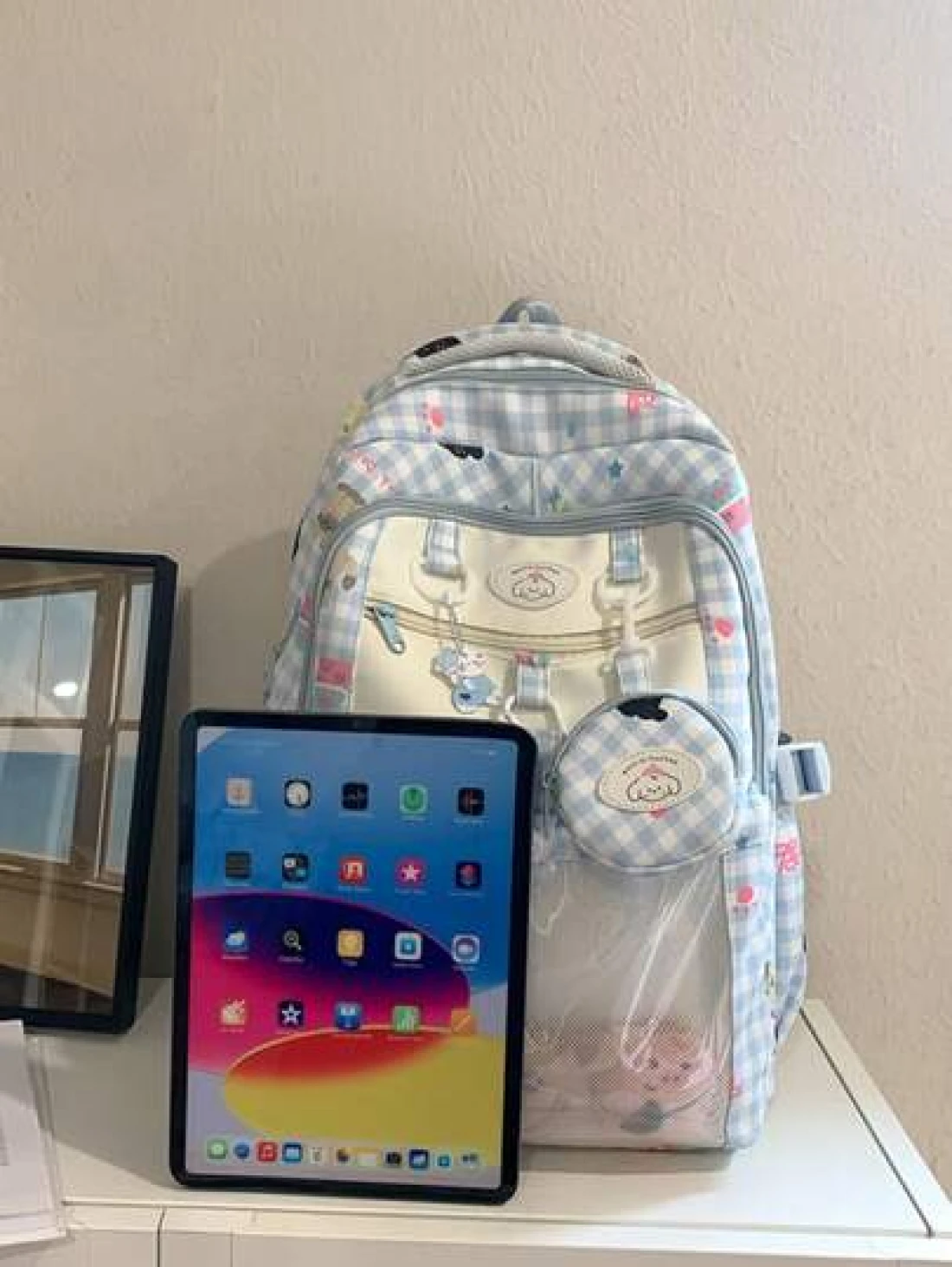1pc New Fashionable Backpack Color Blocking Cute Versatile Highly Attractive Student Bookbag Casual Large Capacity No Pendant