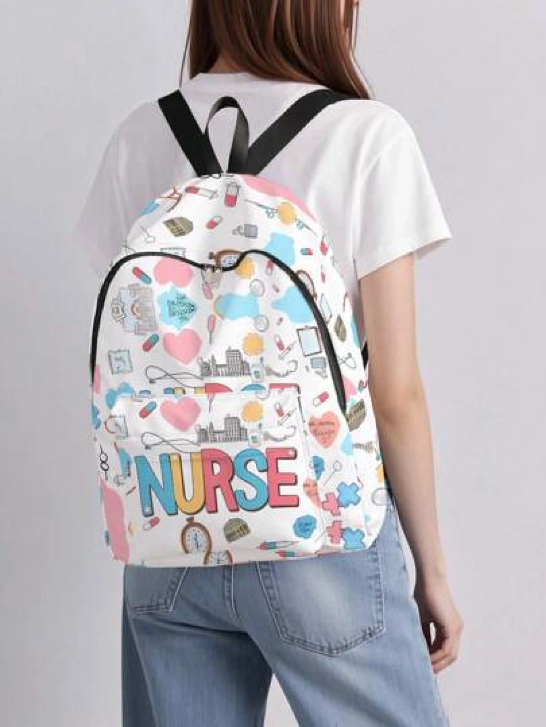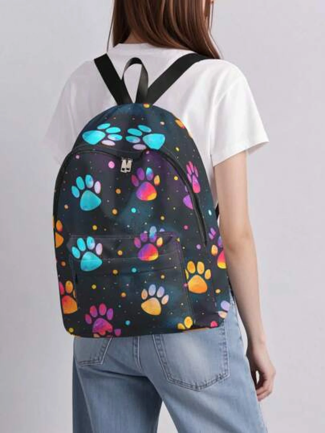 1pc Backpack With Colorful Paw Print Pattern Zipper Closure Pockets Backpack Suitable For Boys And Girls Daily Use For School And Outings