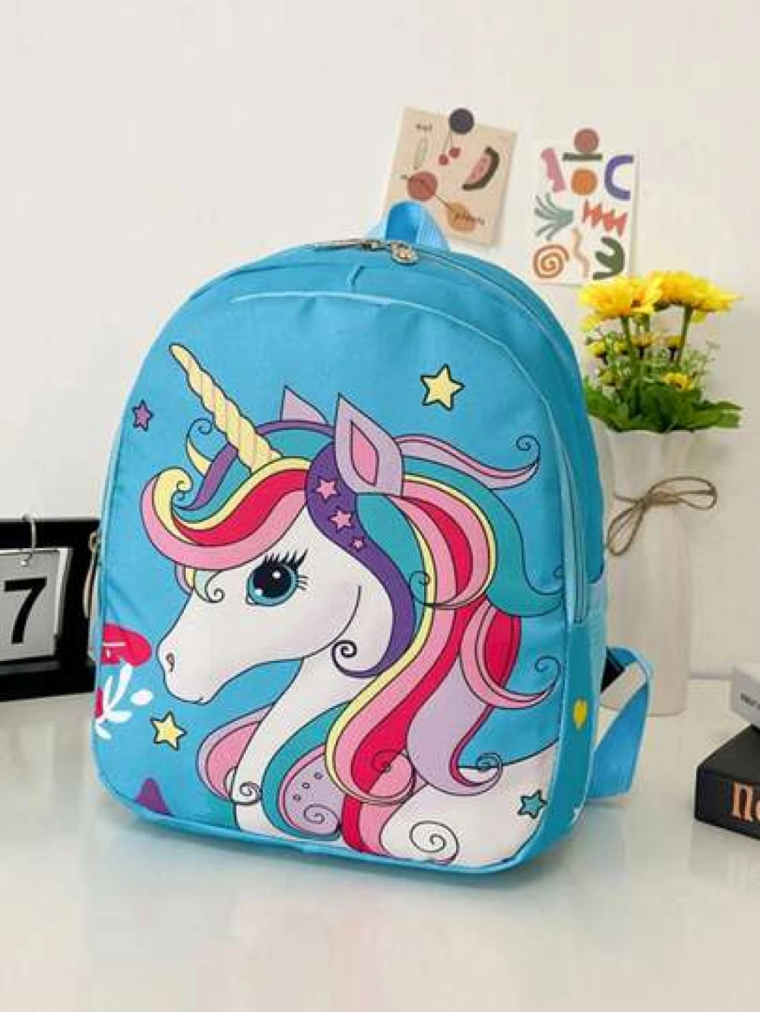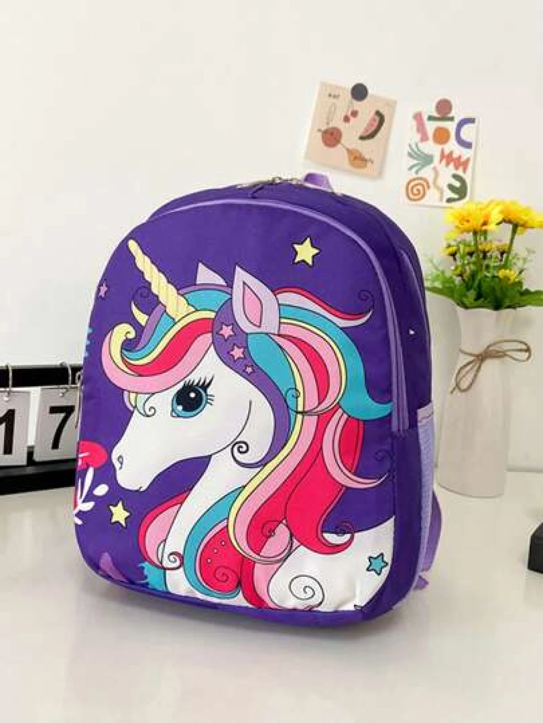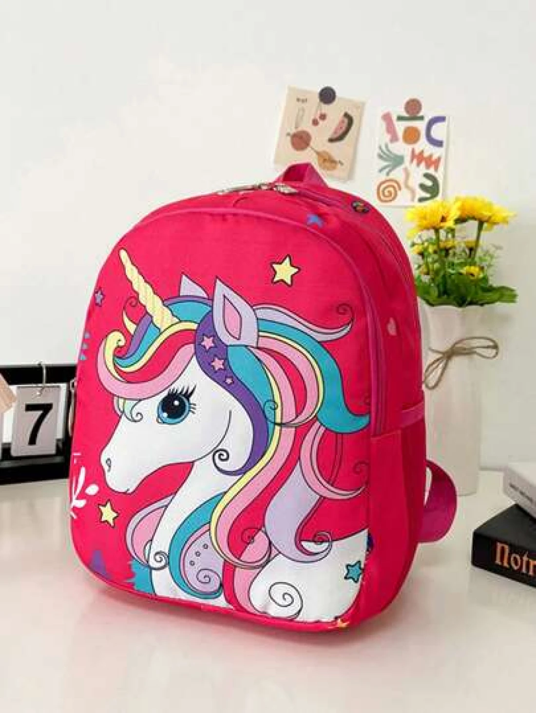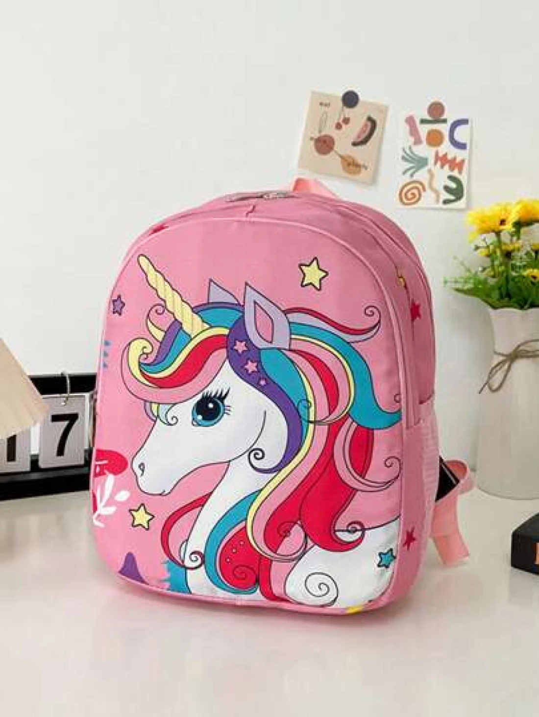1pc Cute Backpack Nylon Cloth Double Zipper Closure Summer New Style Pink Rainbow Unicorn Schoolbag Fashionable Cartoon Backpack Comfortable Shoulder Strap Large Capacity Multifunctional Suitable For