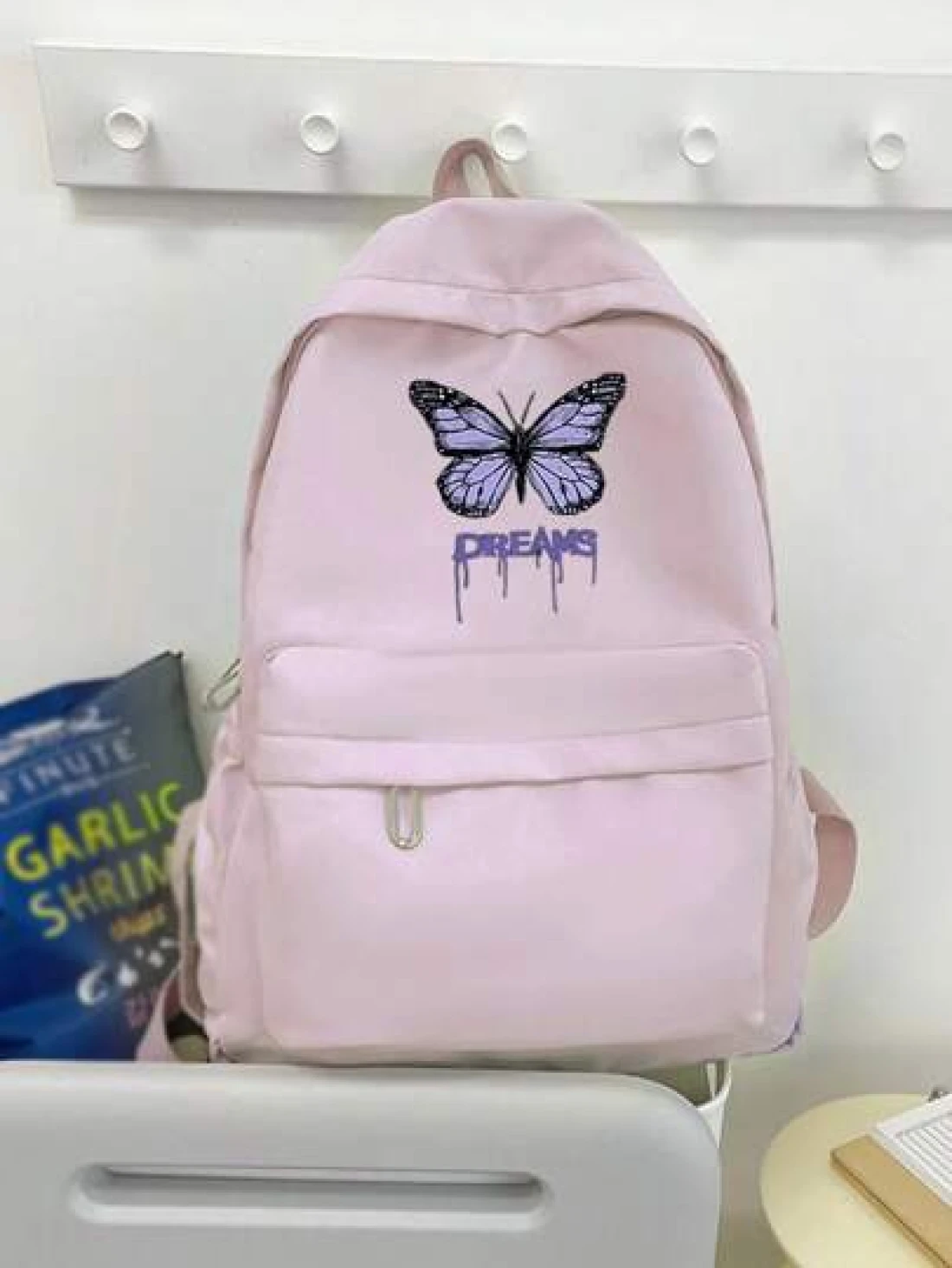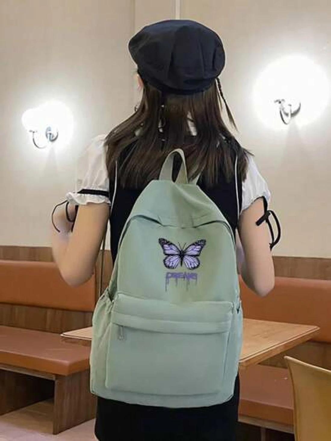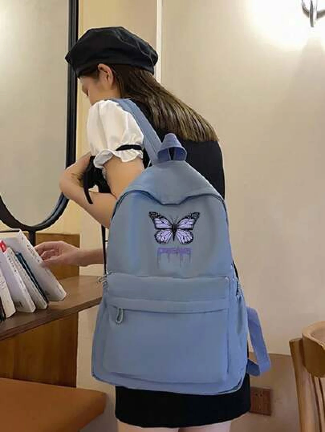 1 حقيبة ظهر للعودة إلى المدرسة، حقيبة بطبعة فراشة طازجة وحلوة، خفيفة الوزن وسعة كبيرة، مناسبة للدراسة اليومية