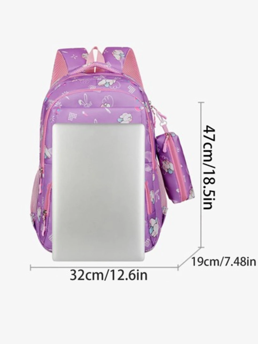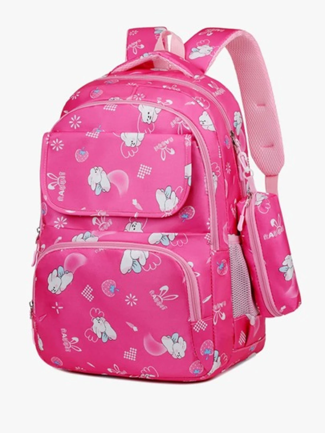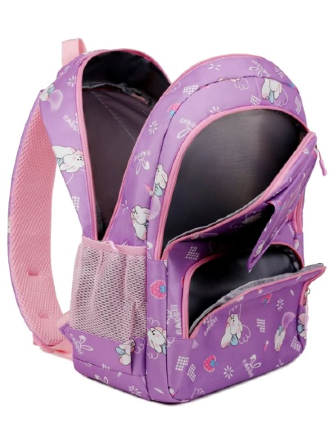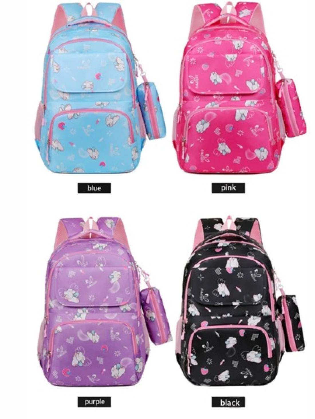 Girls Cute Double Shoulder Bags With Pen Pockets Featuring Rabbit Pattern Accents Commuting And Leisure Backpacks Available In Four Colors Black Blue Pink And Purple Adjustable Straps Large Capacity Z