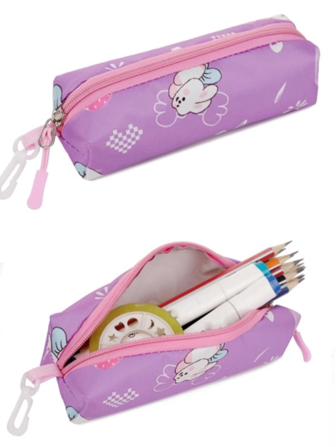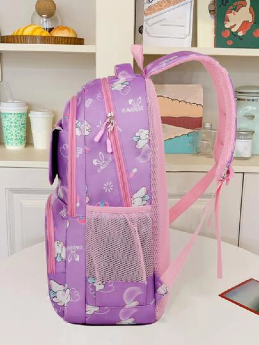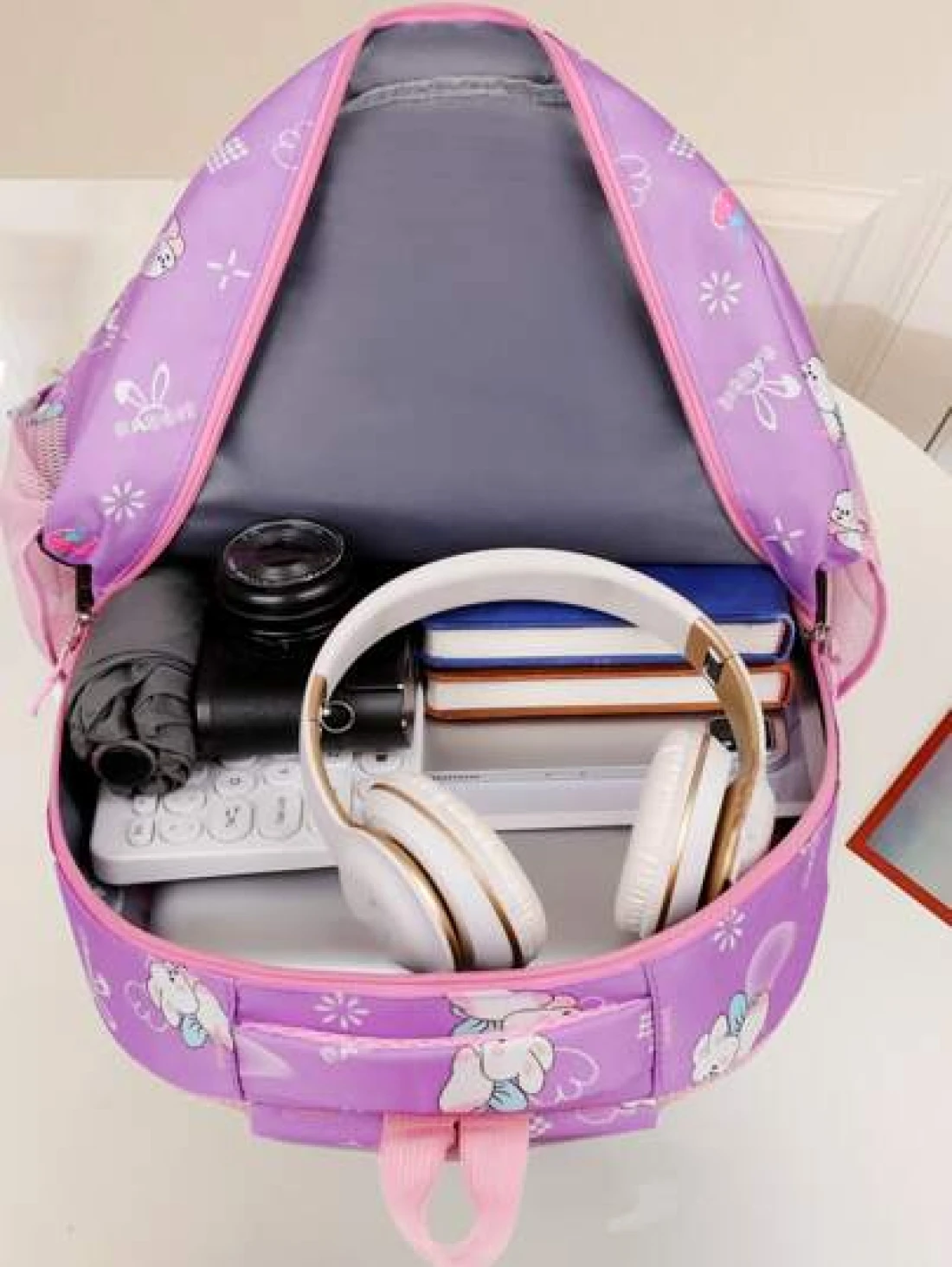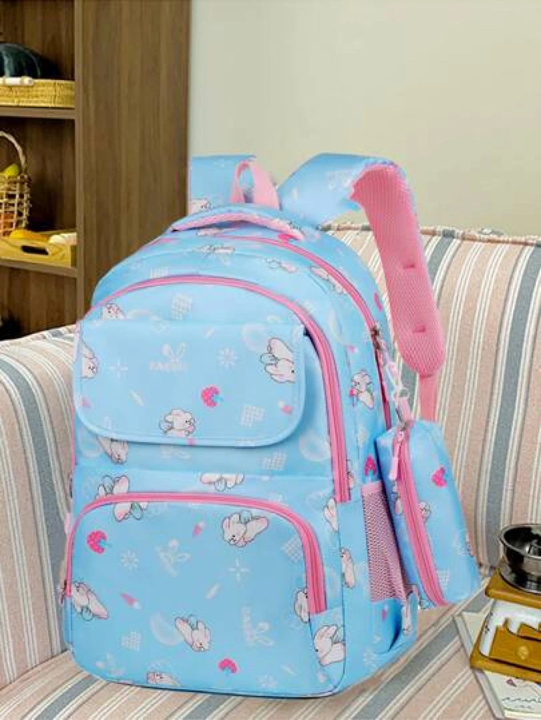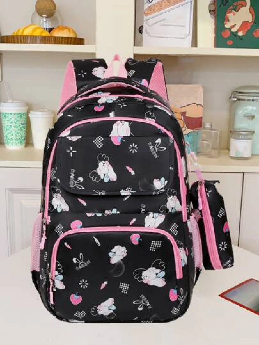 Girls Cute Double Shoulder Bags With Pen Pockets Featuring Rabbit Pattern Accents Commuting And Leisure Backpacks Available In Four Colors Black Blue Pink And Purple Adjustable Straps Large Capacity Z