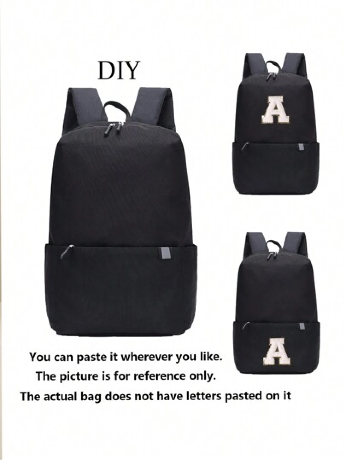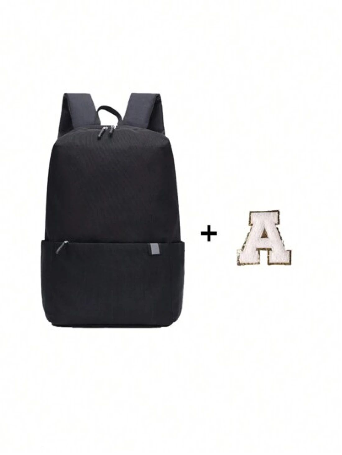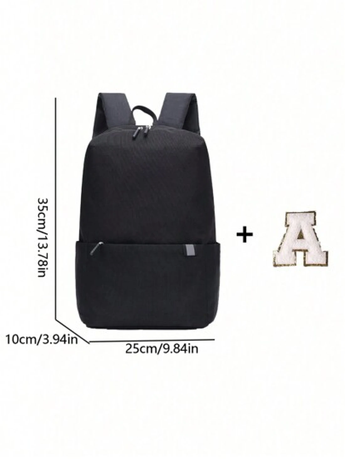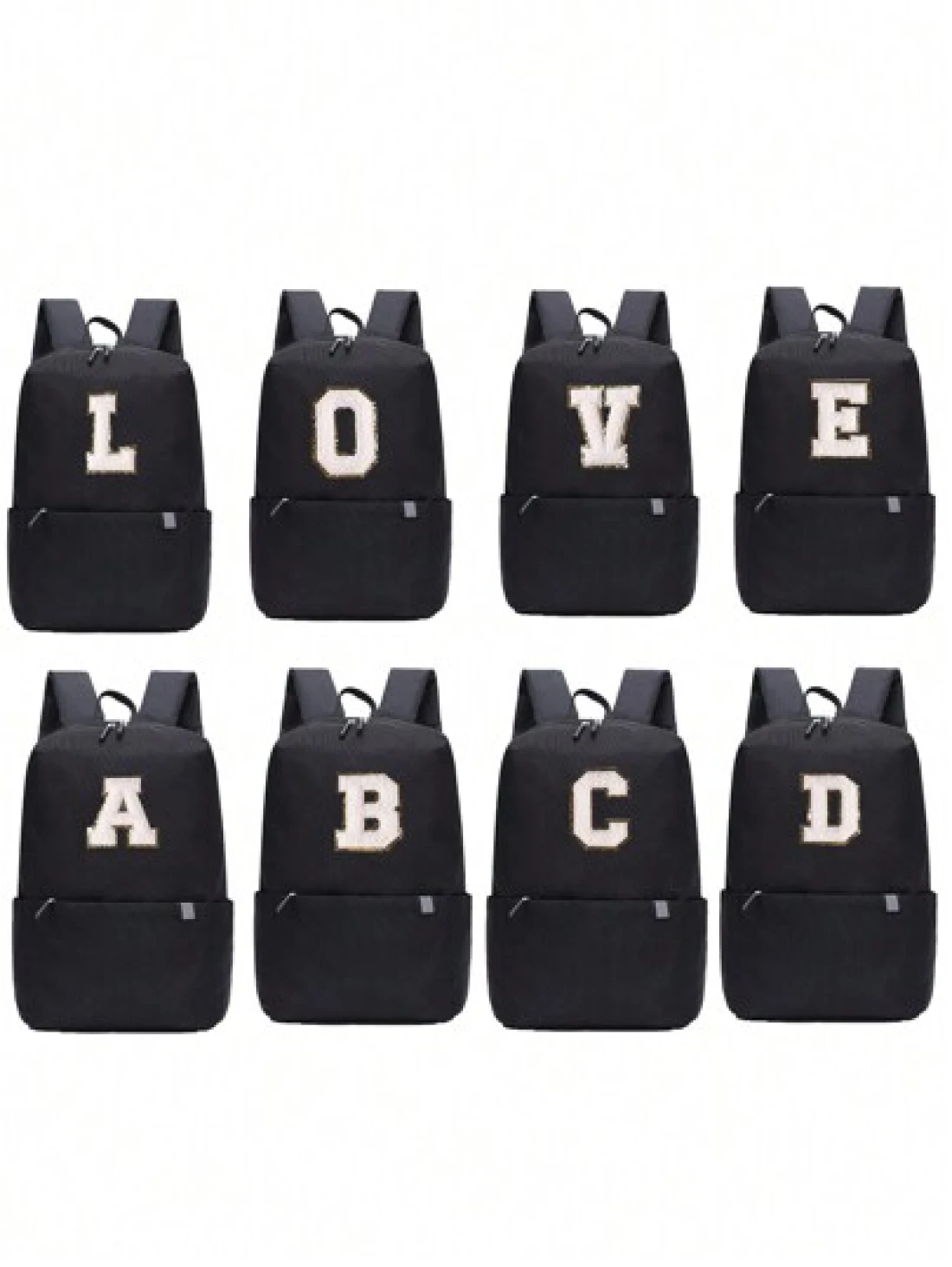 حقيبة ظهر مدرسية واحدة، أنيقة وعملية، بسعة كبيرة، لون سادة، مناسبة لجميع الفصول، 26 حرفًا مزخرفة بزهور، بسحاب
