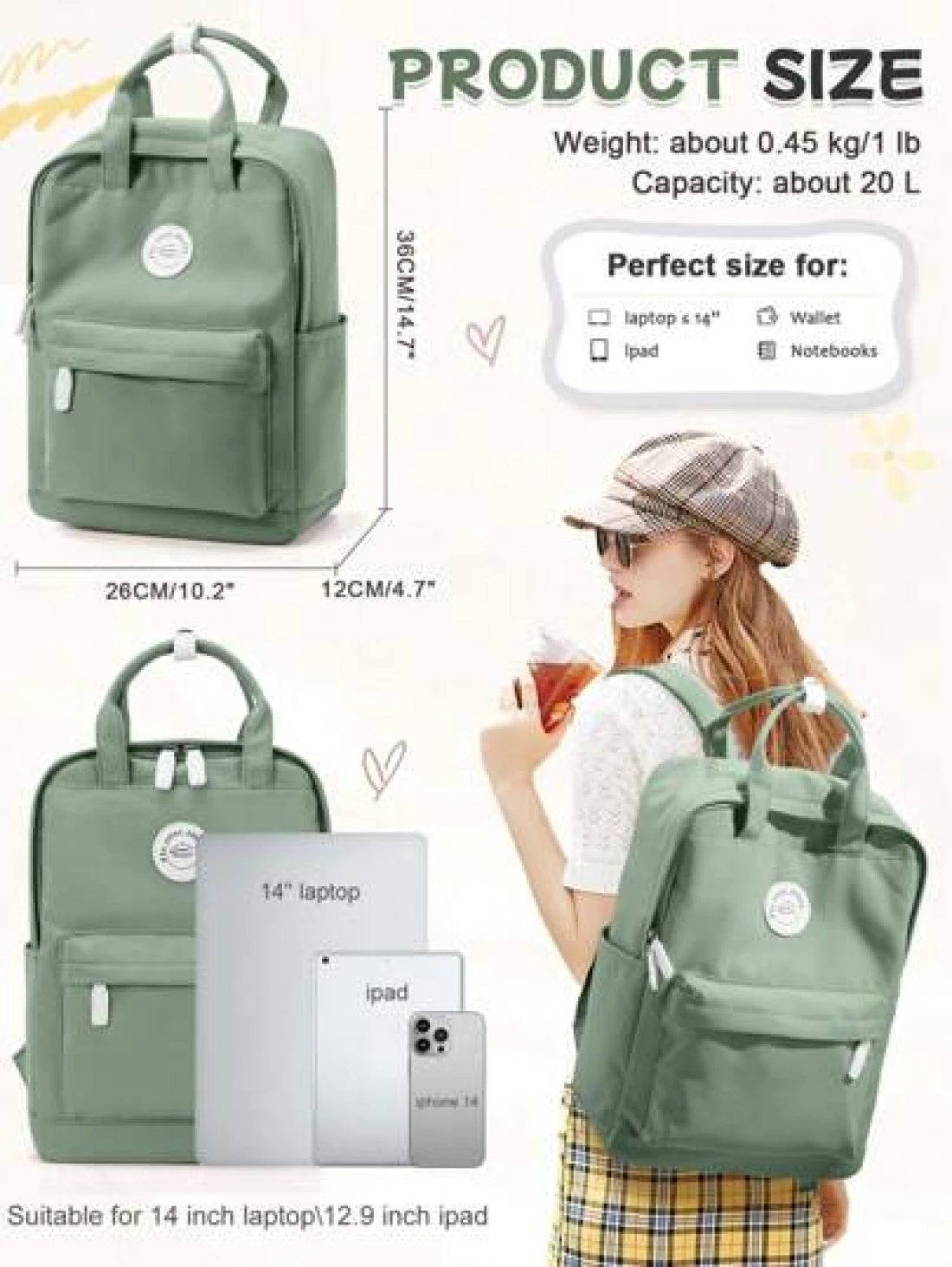 20L Simplicity School Backpack For Teenager Leisure Computer Backpack Fit 14inch Notebook 12 9inch Pad Carry On Backpack With Multi Pocket Lightweight Laptop Backpacks With Laptop Interlayer For Girl