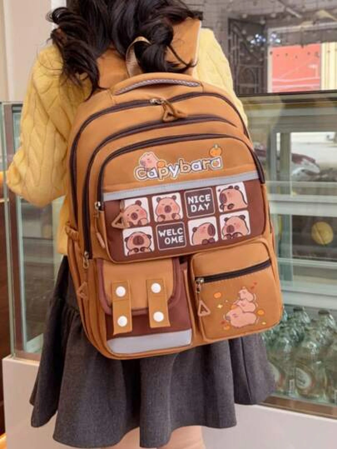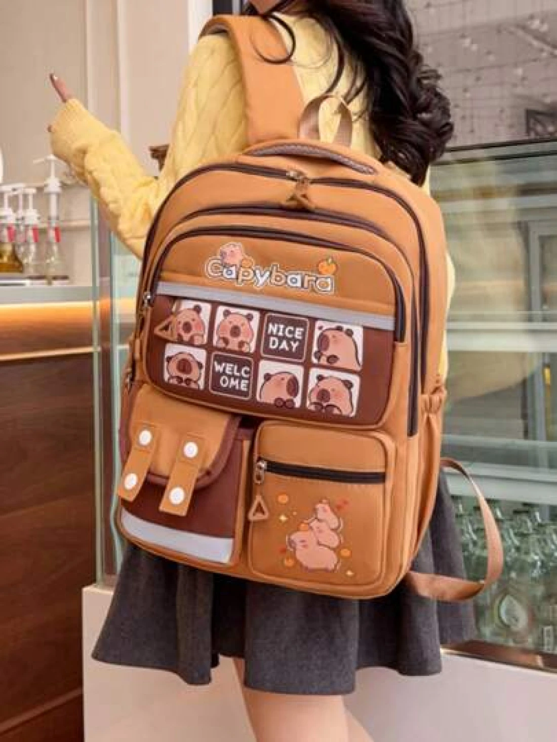 1 Cute Giant Kapibara Pattern Contrast Color Backpack Suitable For Teenagers Large Capacity Lively Student Bag With Multiple Pockets Fashion School Bag Handbag Personalized Lightweight School Backpack