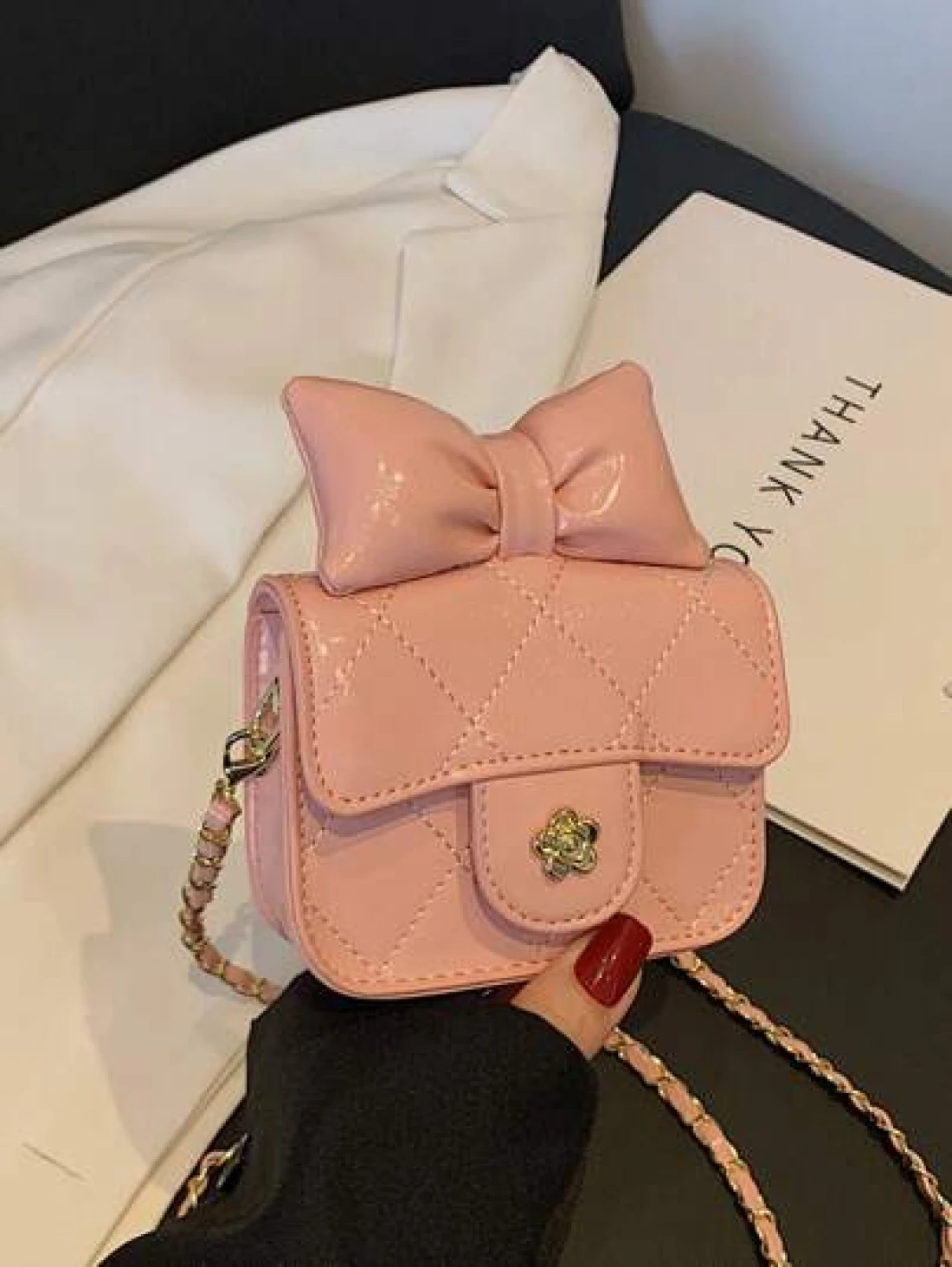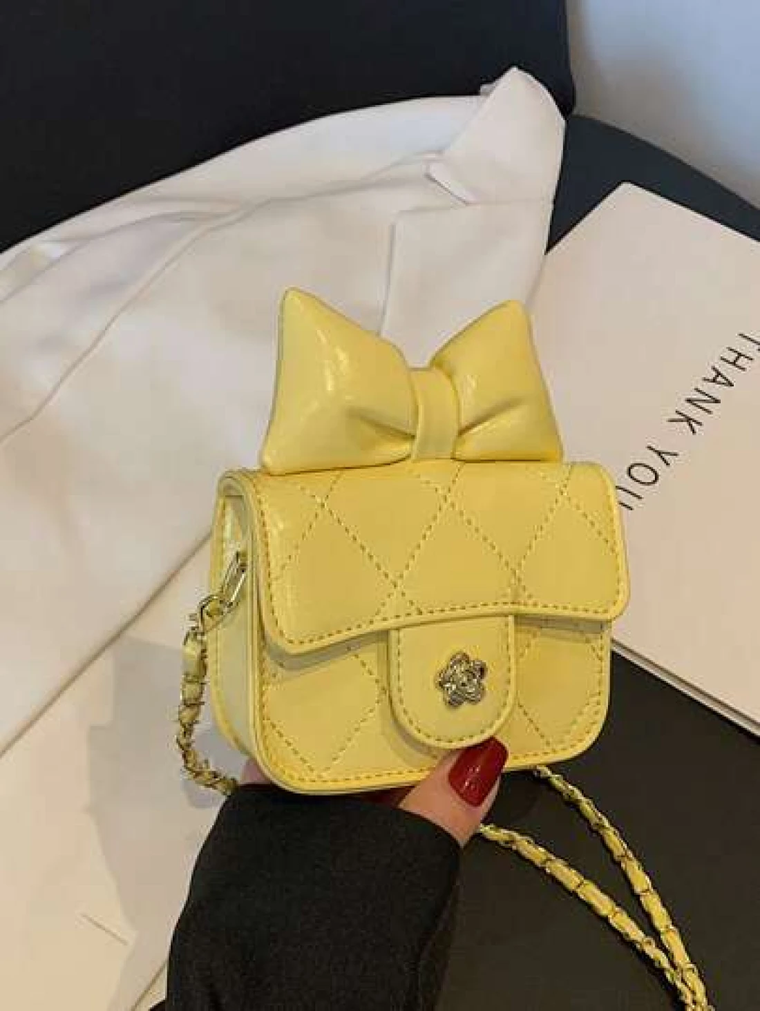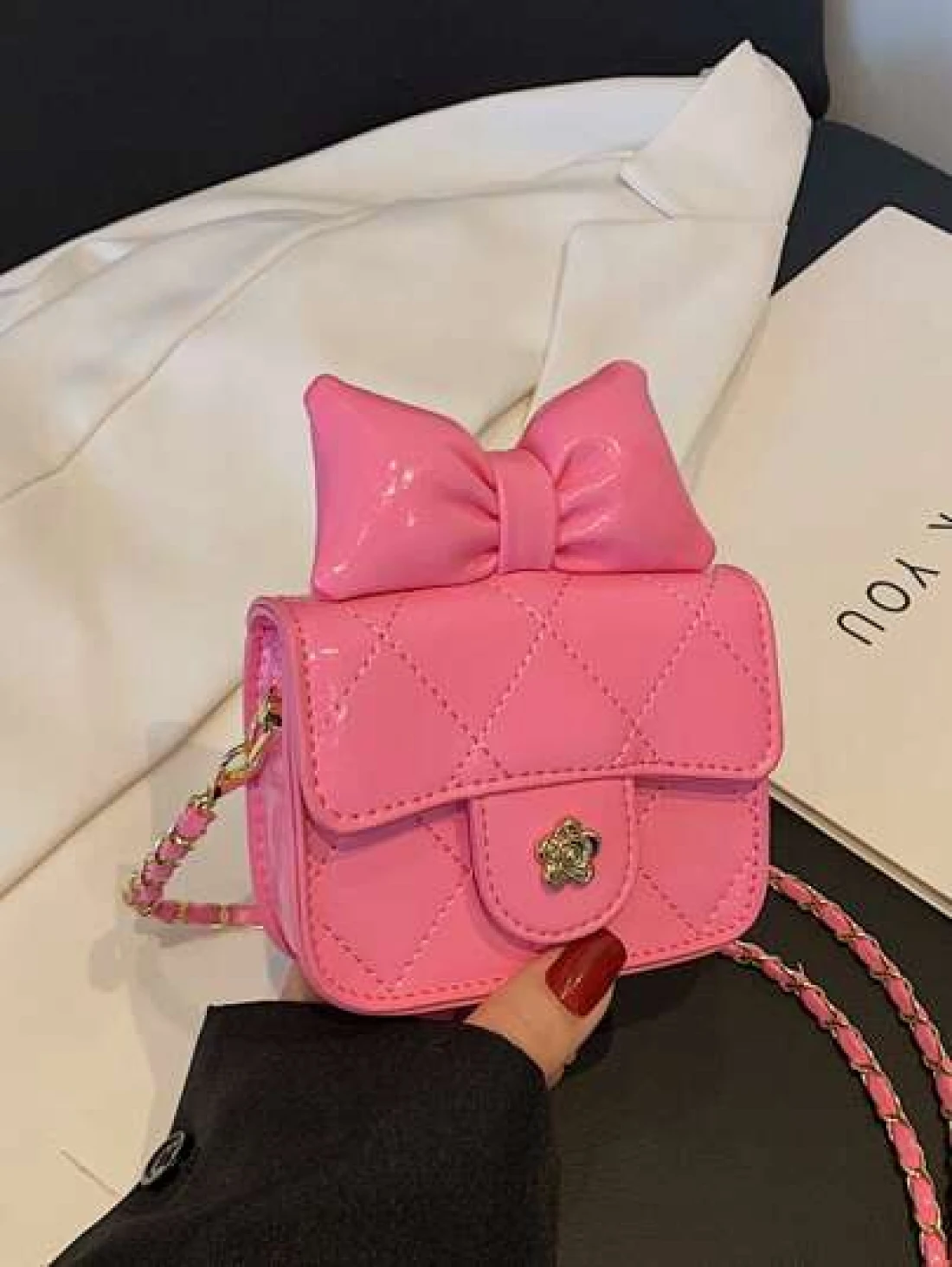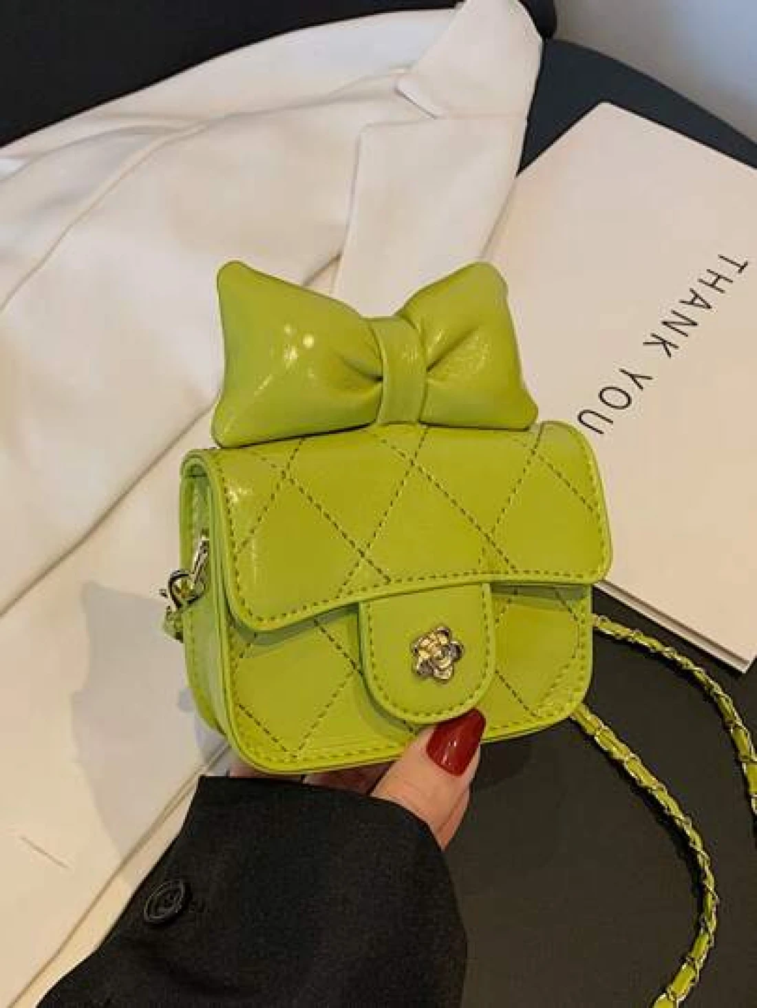 1 قطعة حقيبة جسم عبر للفتيات من مادة البولي يوريثان بشكل ماس ذات لون أحادي، حزام كتف من سلسلة معدنية، إقفال مغن
