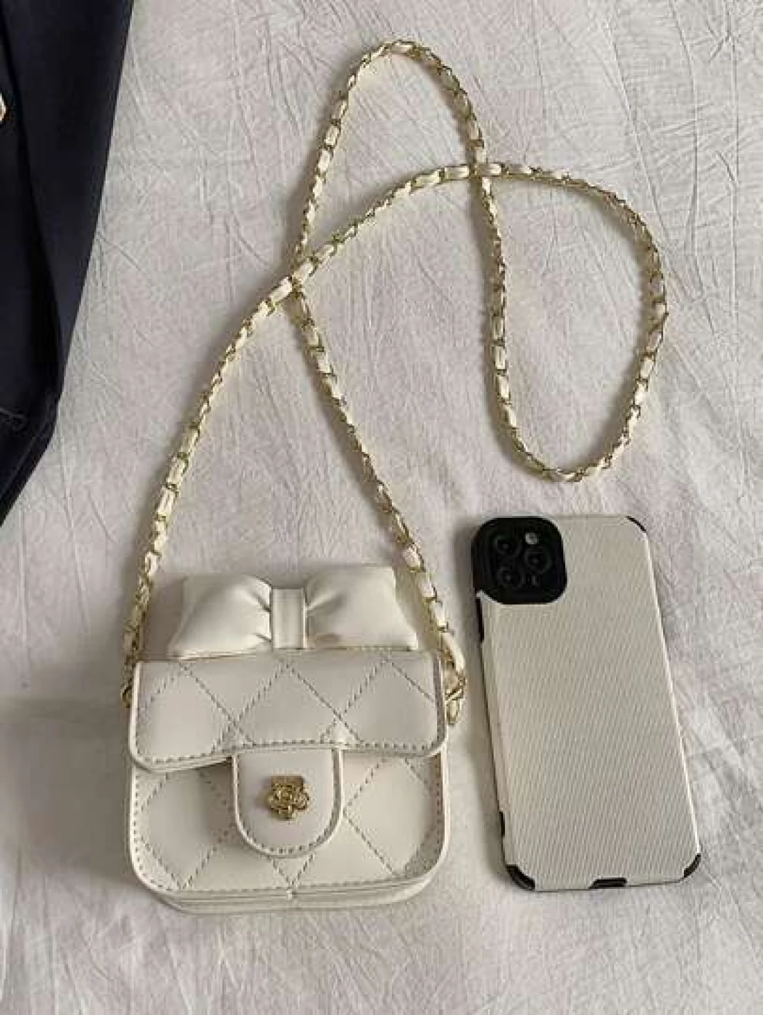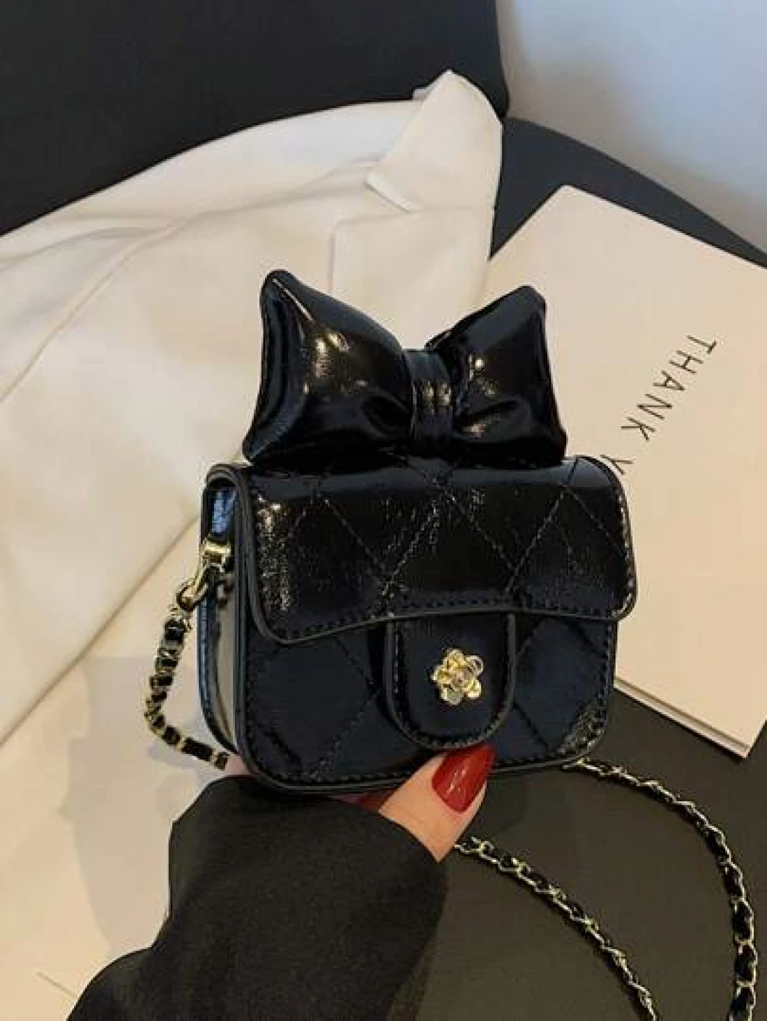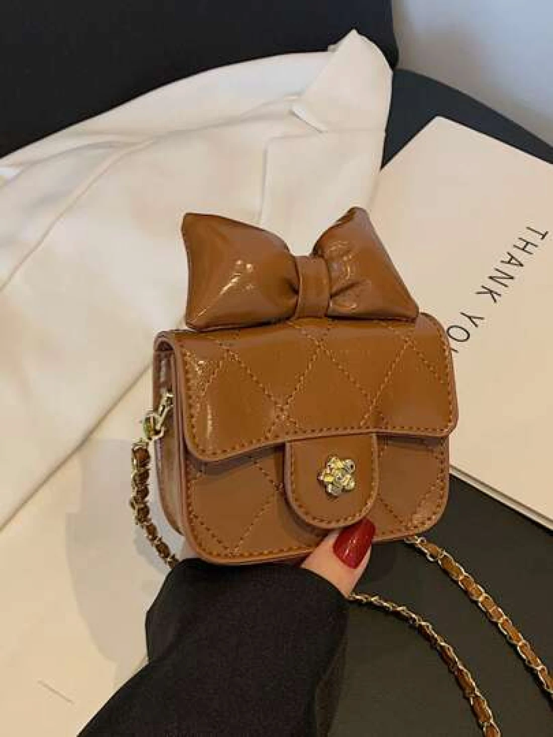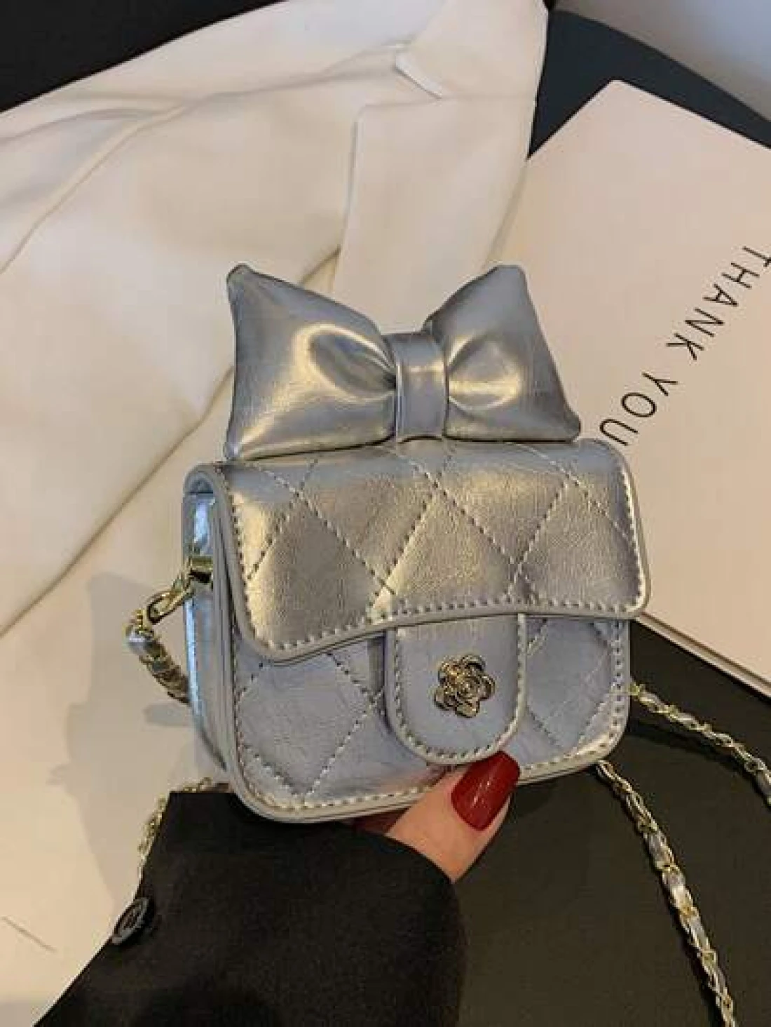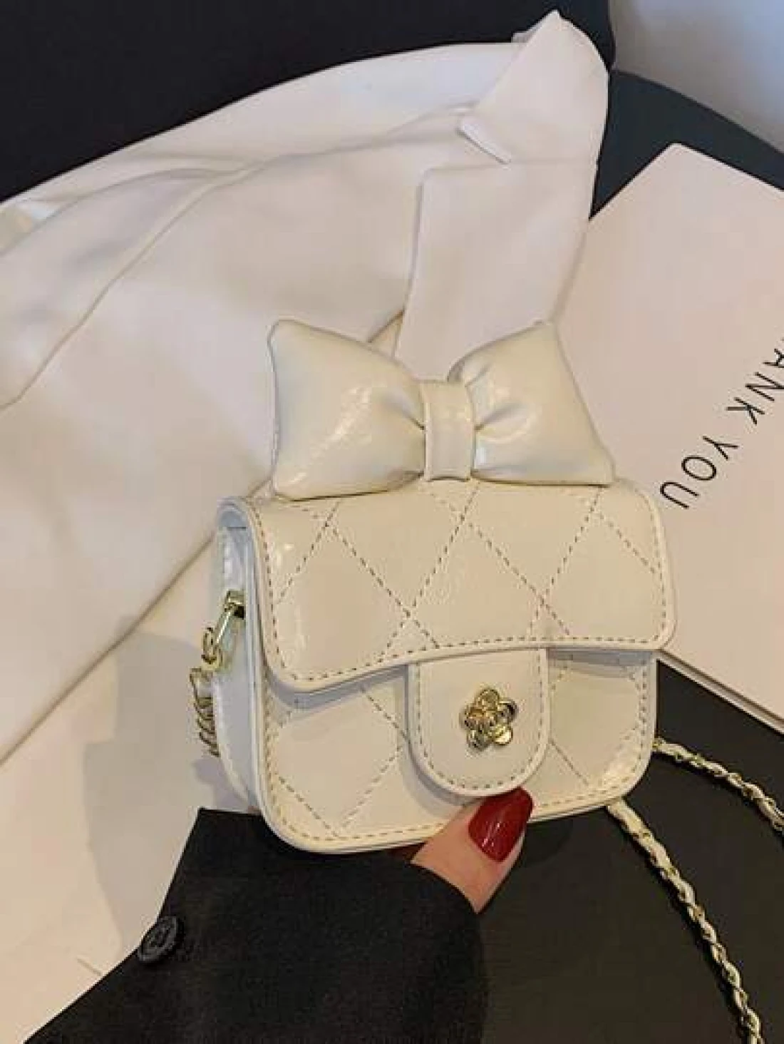 1 قطعة حقيبة جسم عبر للفتيات من مادة البولي يوريثان بشكل ماس ذات لون أحادي، حزام كتف من سلسلة معدنية، إقفال مغن