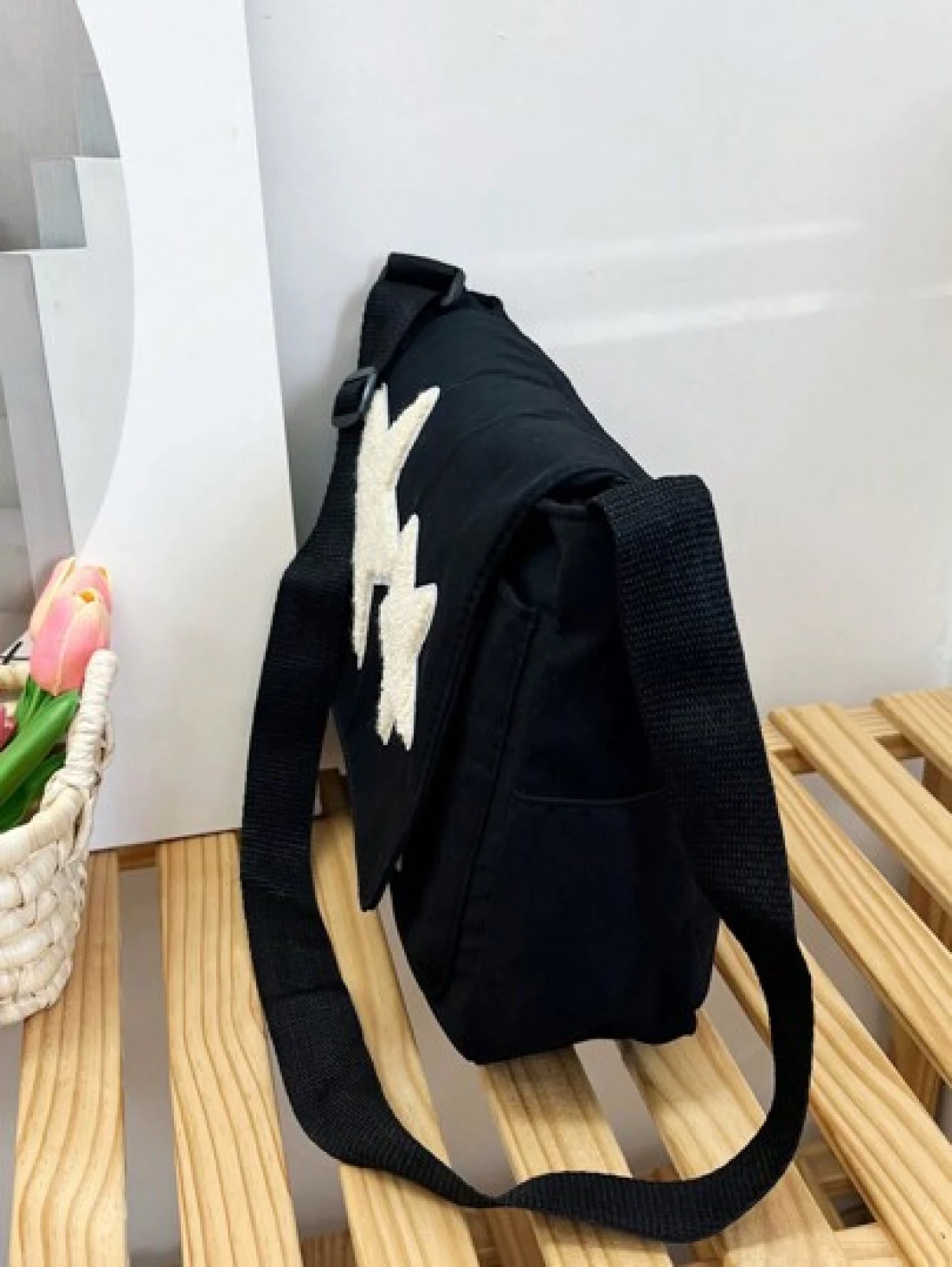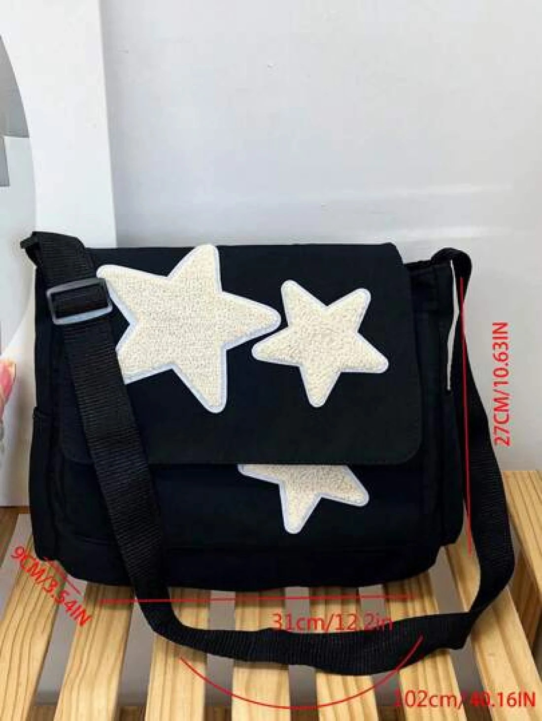 حقيبة كروس من النايلون مطبوعة بنجمة واحدة للمراهقات مع غطاء قلاب وحقيبة حمل ذات سعة كبيرة