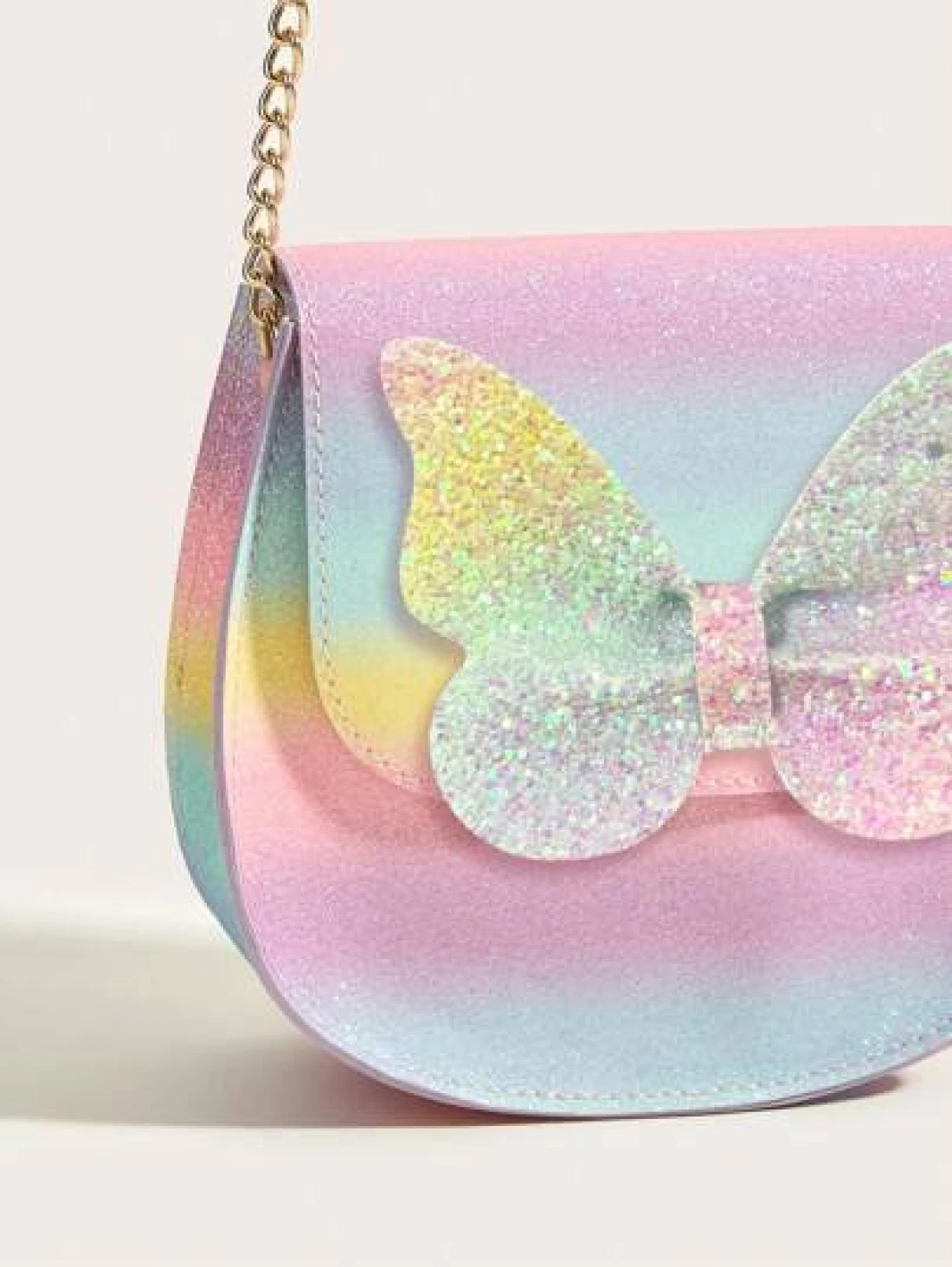 حقيبة كروس بادي من جلد البولي يوريثان بزخارف براقة بتصميم فراشة وألوان نمط المرقط، مناسبة للاستخدام اليومي