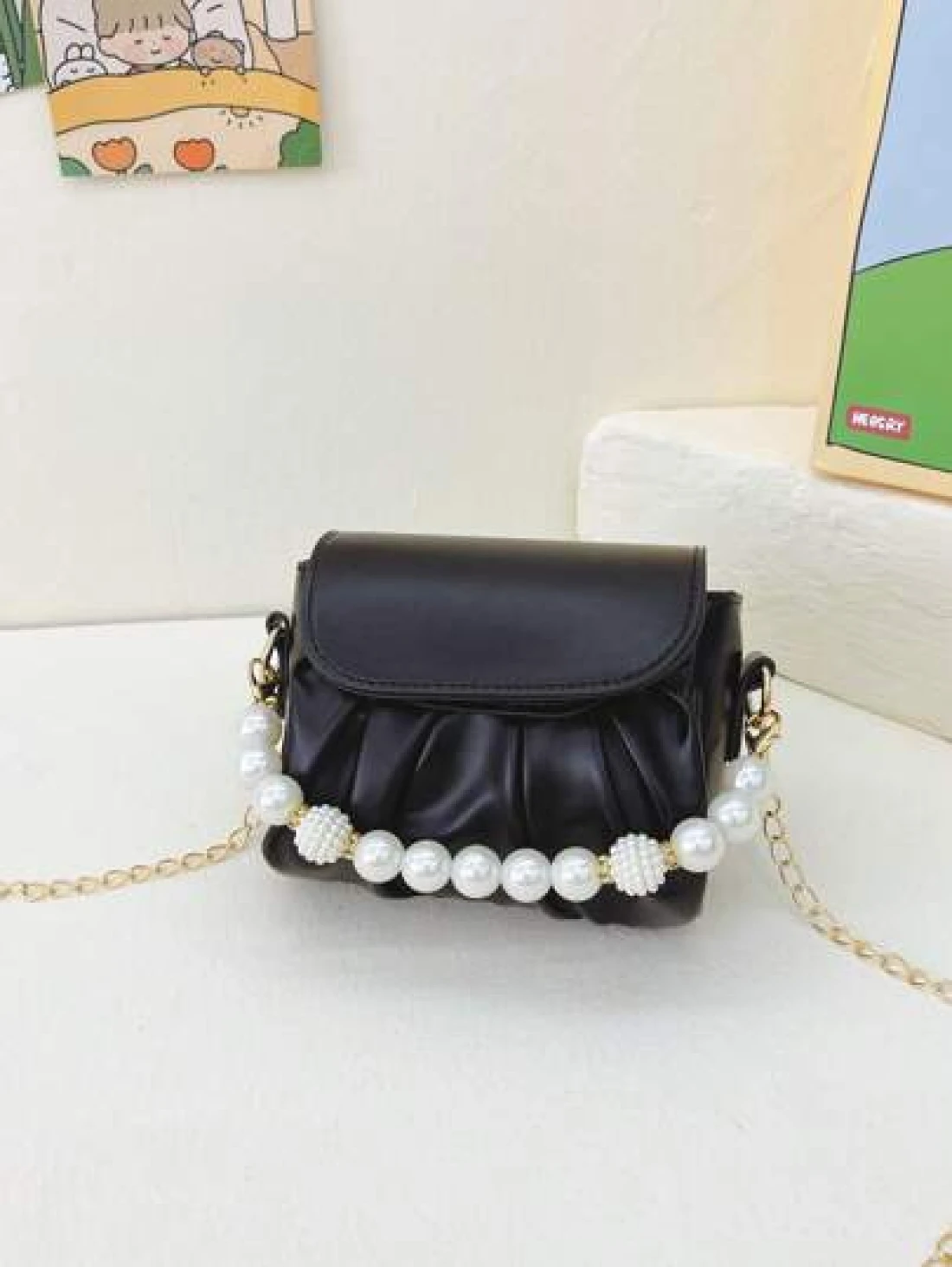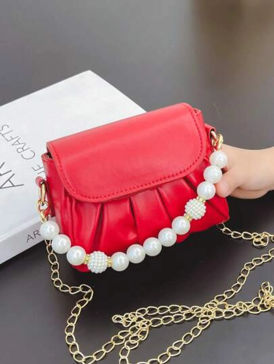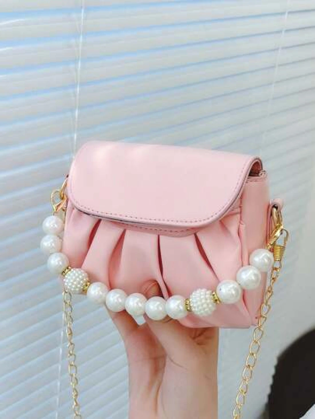 قطعة واحدة حقيبة كتف منسدلة بسلسلة اللؤلؤ الأنيقة المصنوعة من ال- PU المُبرمة بإتقان وبتصميم متناسق عالي الجود