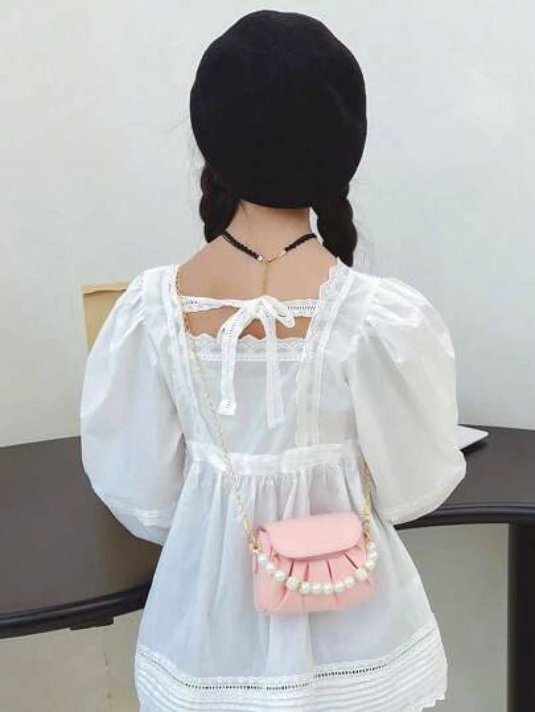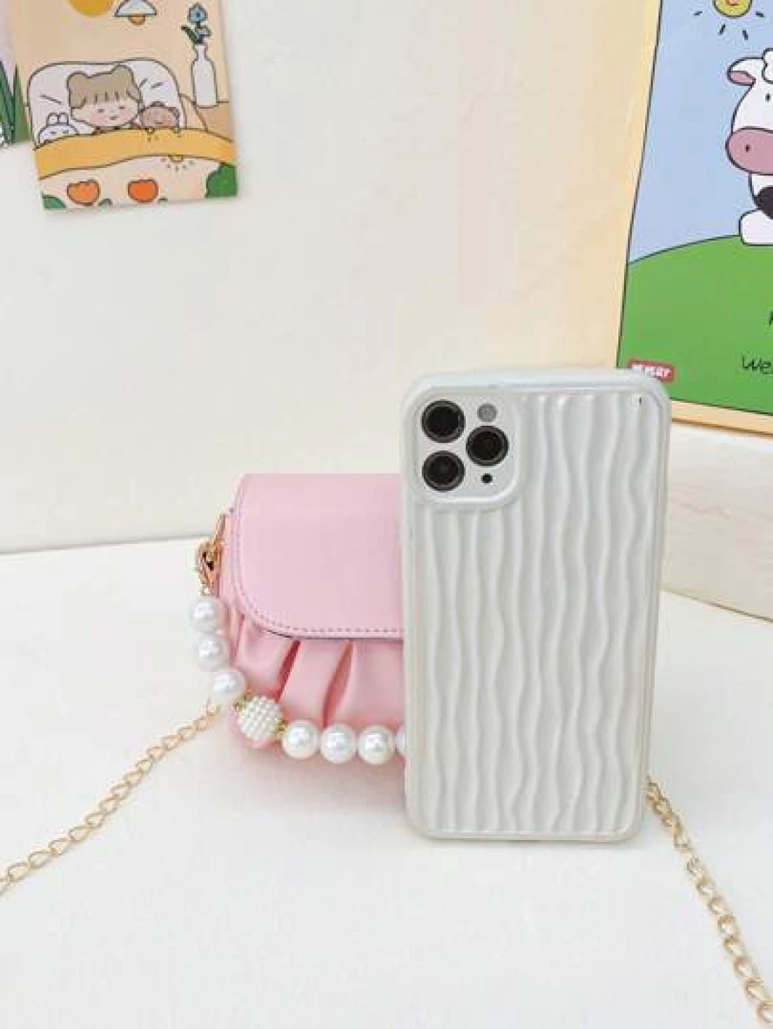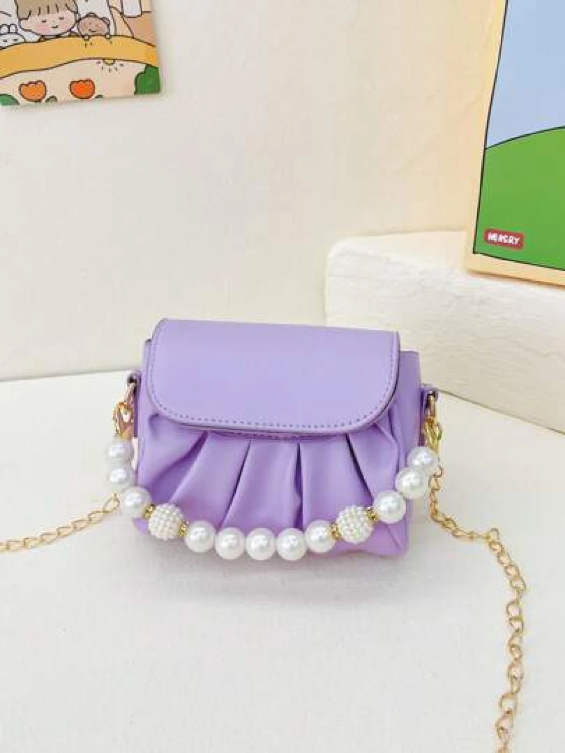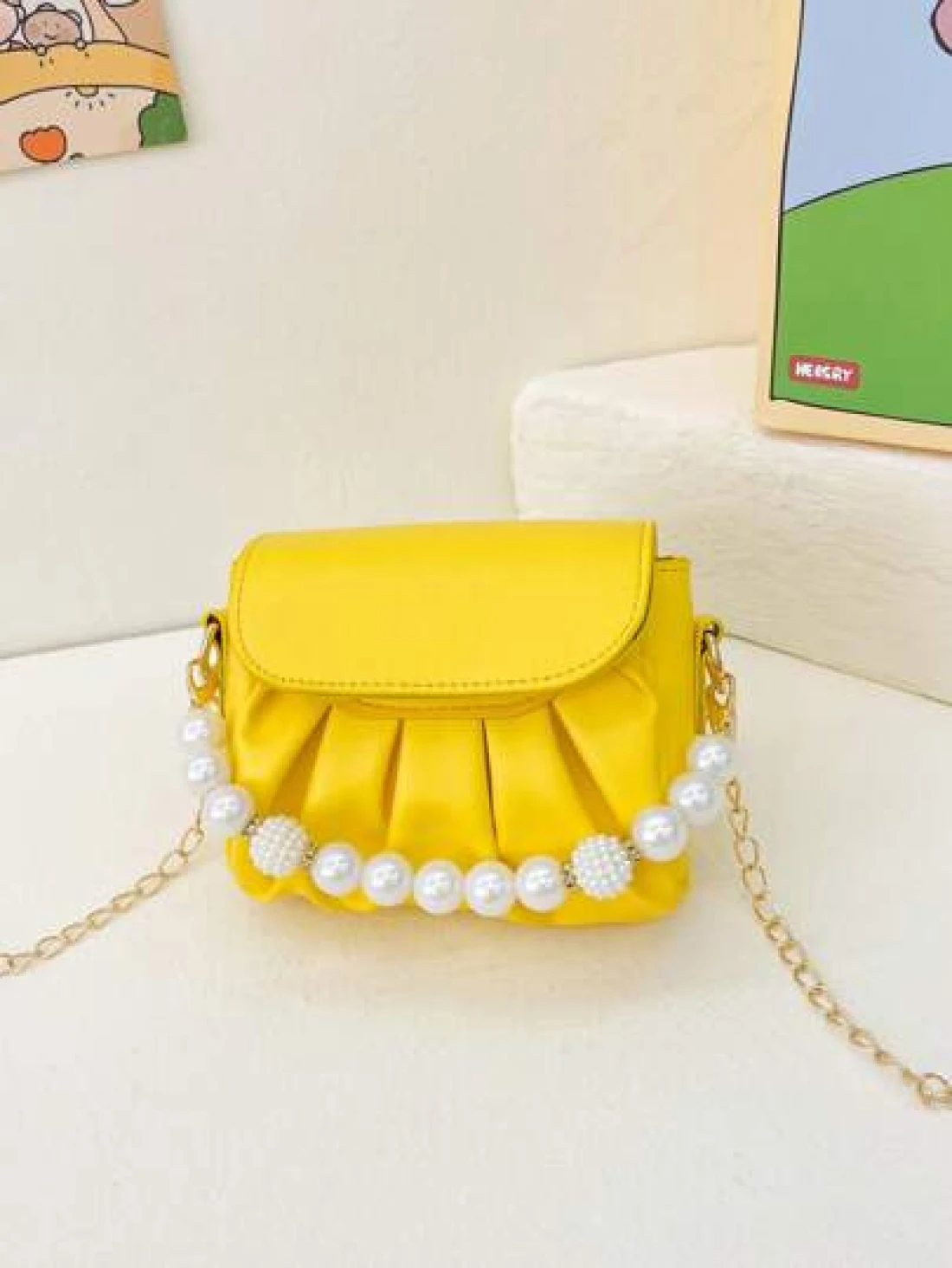 قطعة واحدة حقيبة كتف منسدلة بسلسلة اللؤلؤ الأنيقة المصنوعة من ال- PU المُبرمة بإتقان وبتصميم متناسق عالي الجود