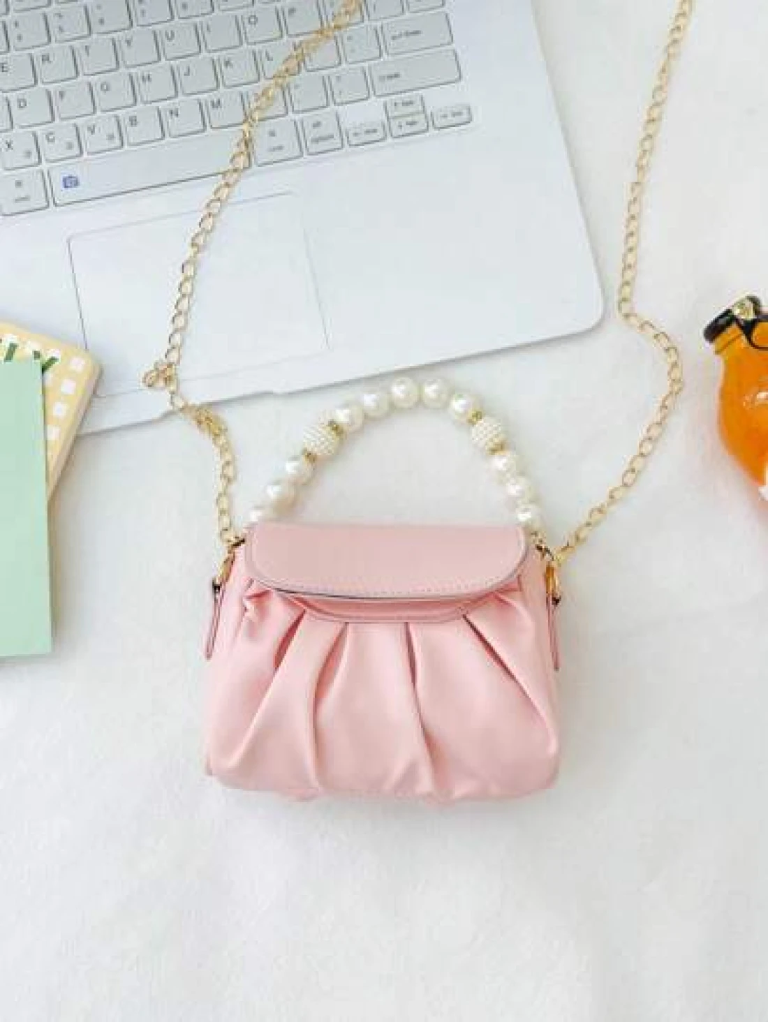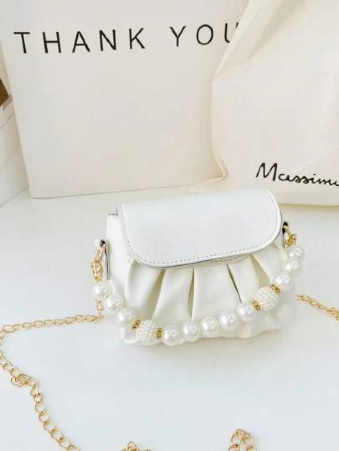 قطعة واحدة حقيبة كتف منسدلة بسلسلة اللؤلؤ الأنيقة المصنوعة من ال- PU المُبرمة بإتقان وبتصميم متناسق عالي الجودة، مناسبة للفتيات للتسوق وحضور حفلات أعياد الميلاد، وشنطة أنيقة وجميلة مزودة بسلسلة للحمل، هدية للأصدقاء والعائلة