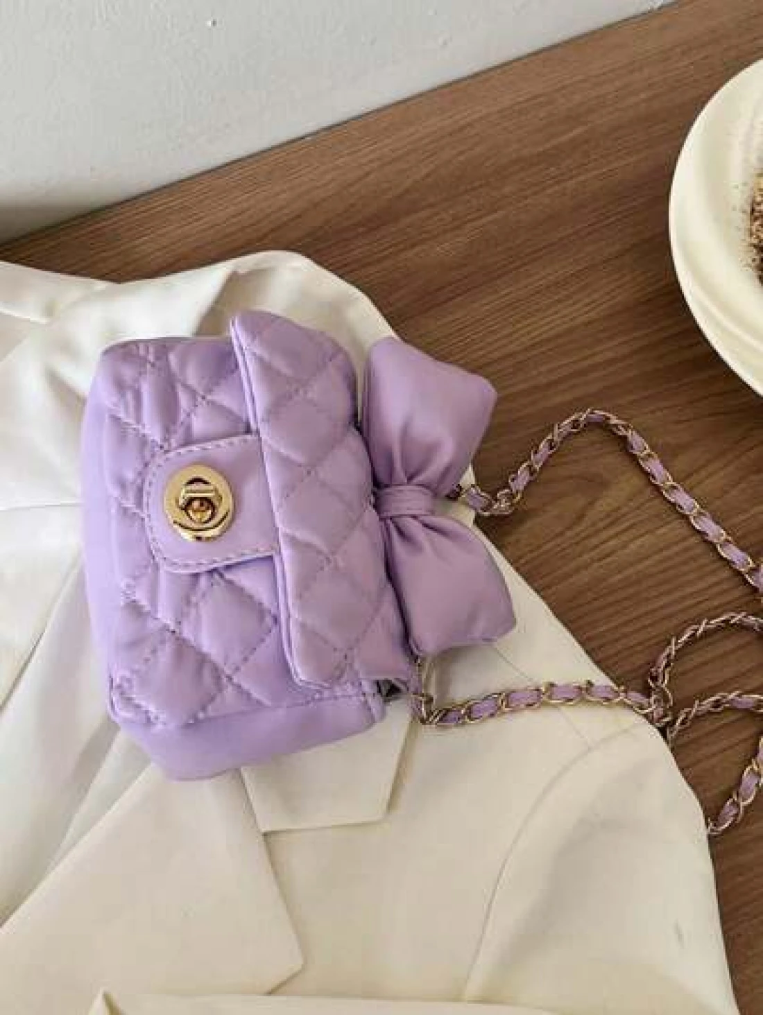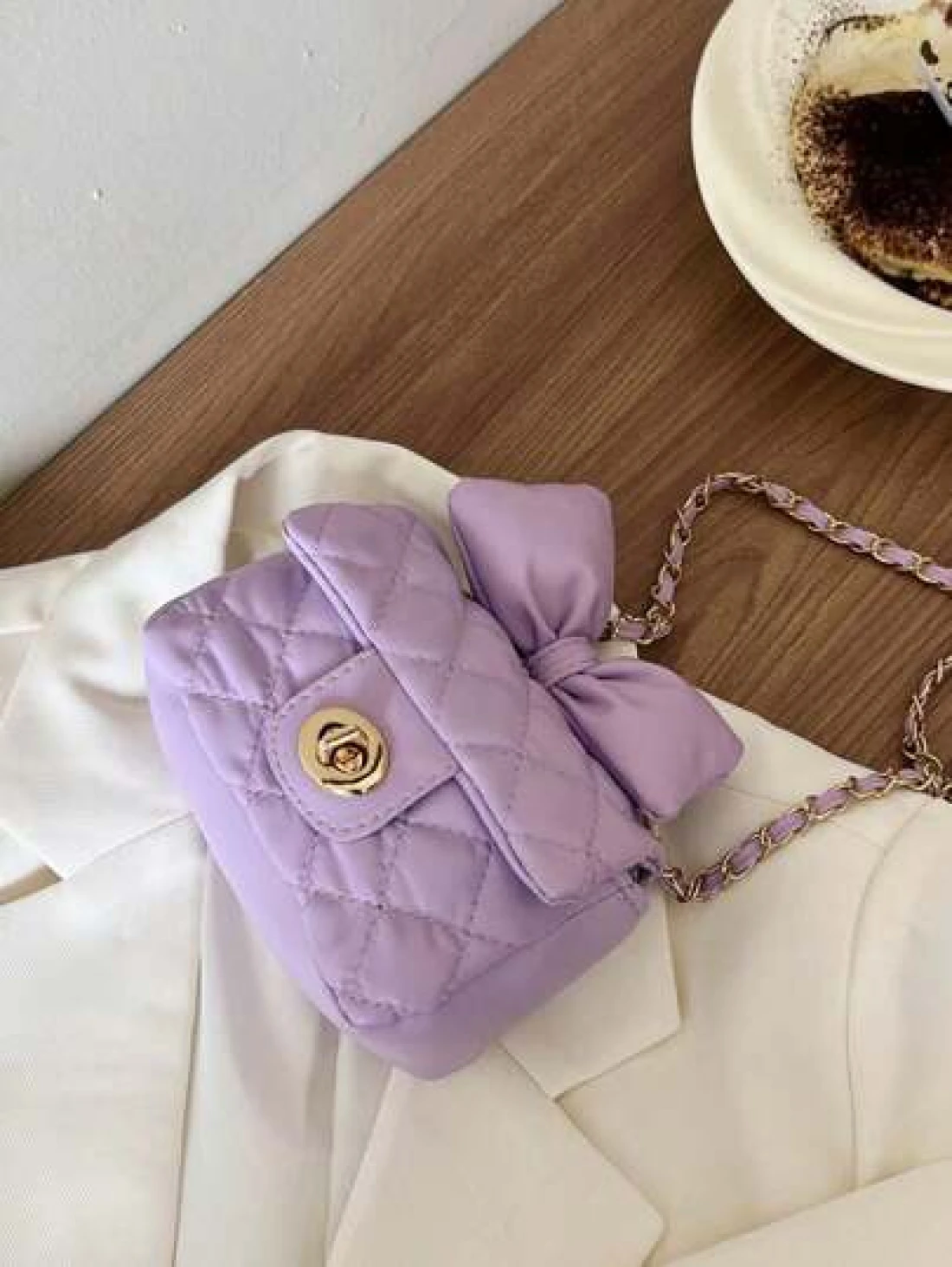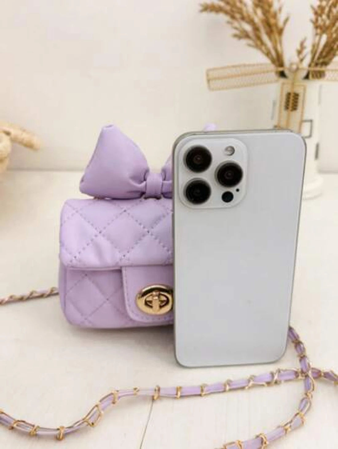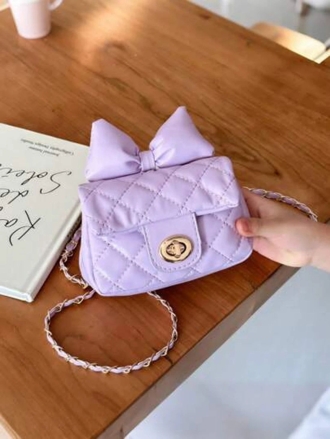 قطعة واحدة محفظة عملة مزينة بالفيونكة للأطفال، حقيبة صغيرة مطرزة بشكل معين مع سلسلة، حقيبة كروس بودي أنيقة لل