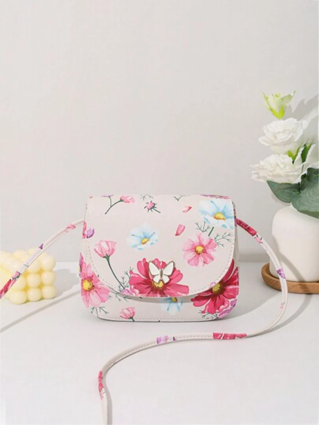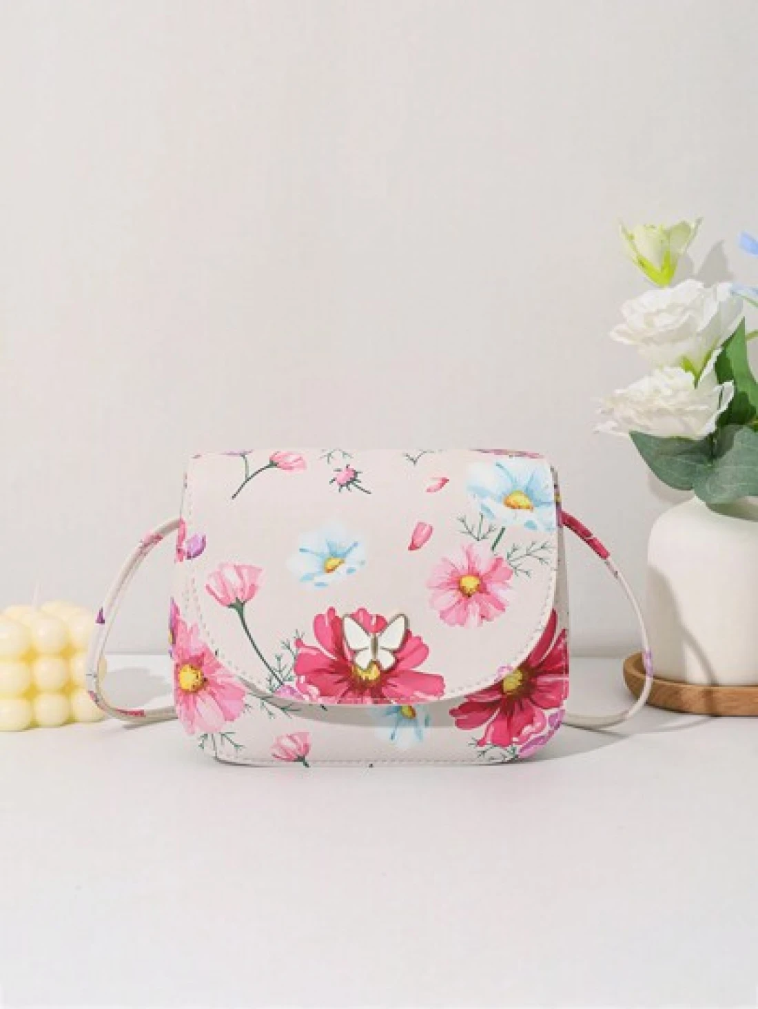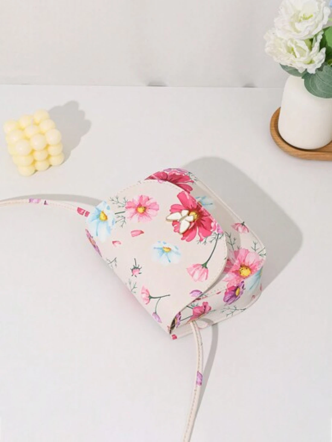 حقيبة كروسبودي ذات طبعة فراشة صغيرة مزينة بقطع معدنية ذات صدفة
