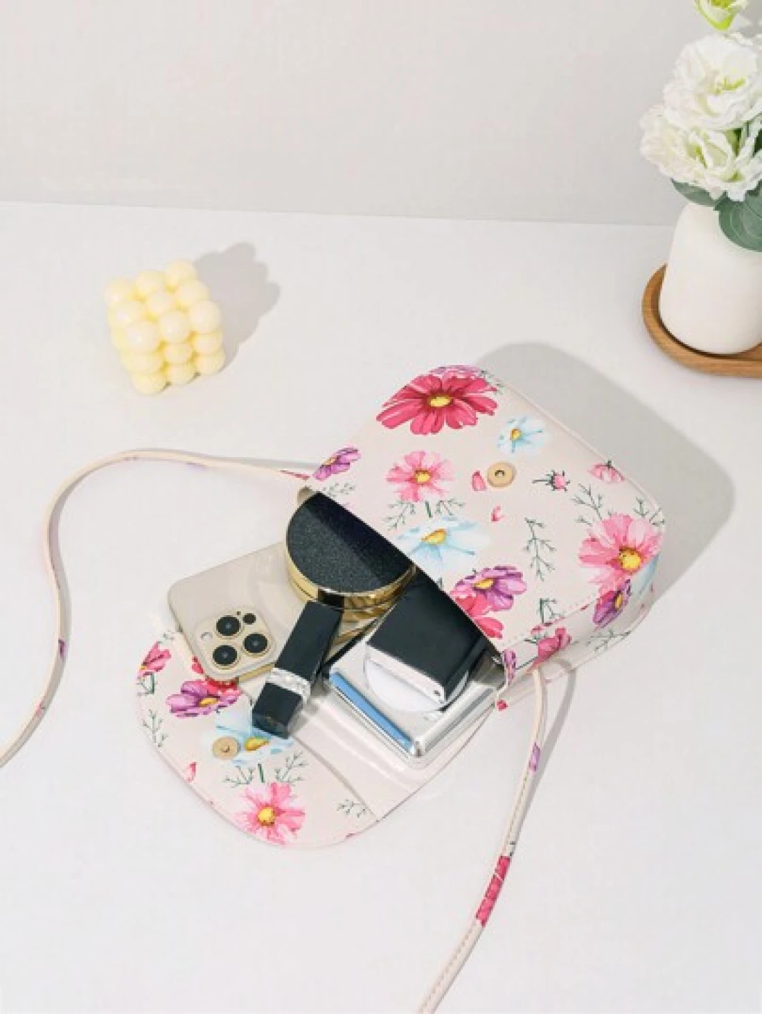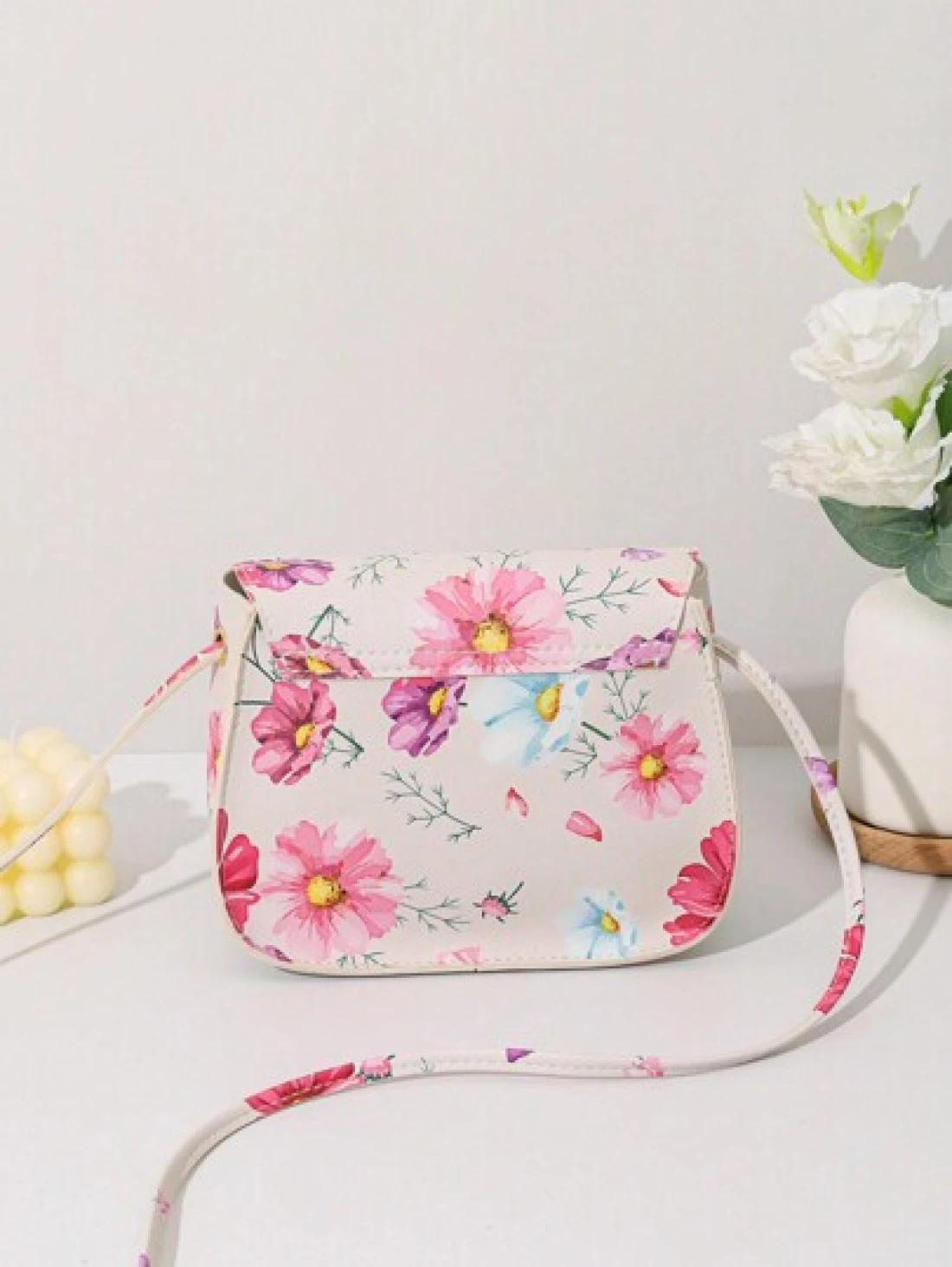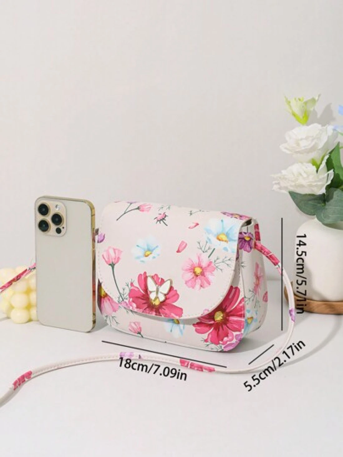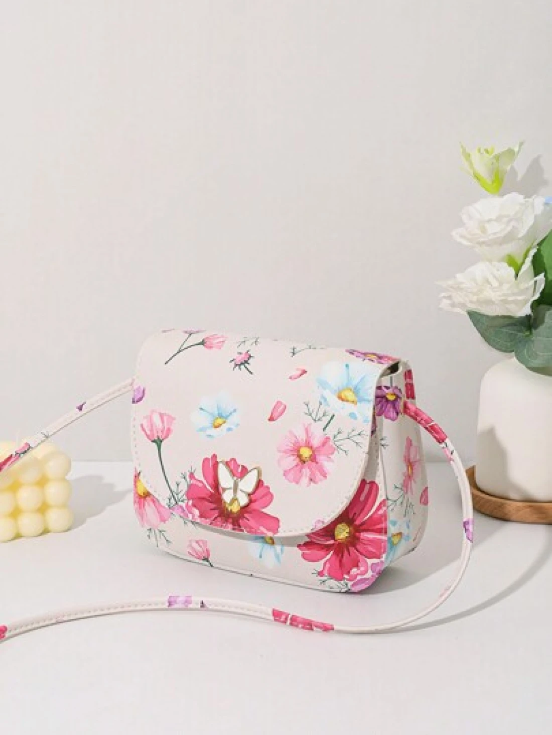 حقيبة كروسبودي ذات طبعة فراشة صغيرة مزينة بقطع معدنية ذات صدفة