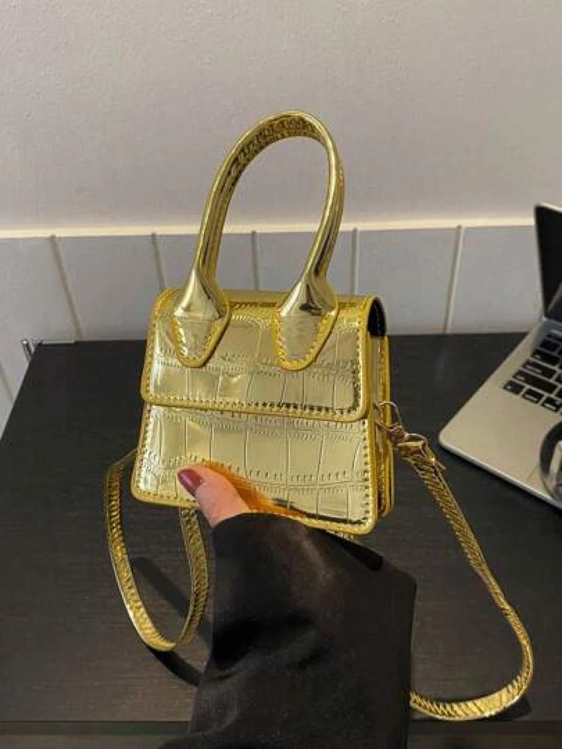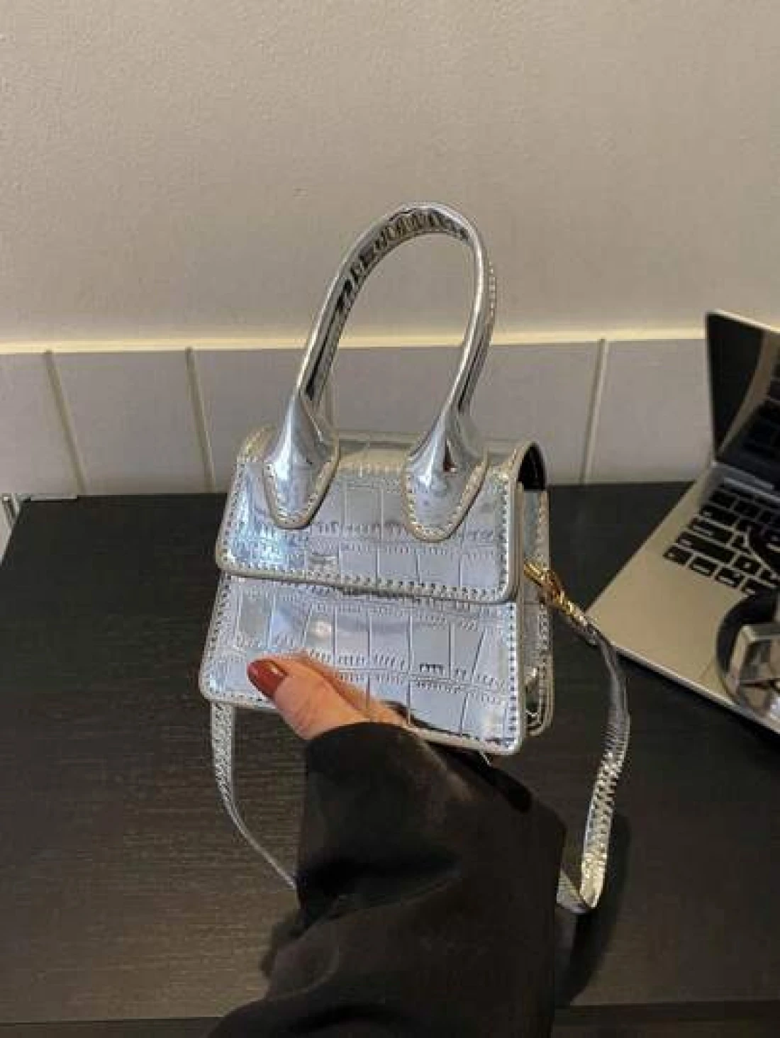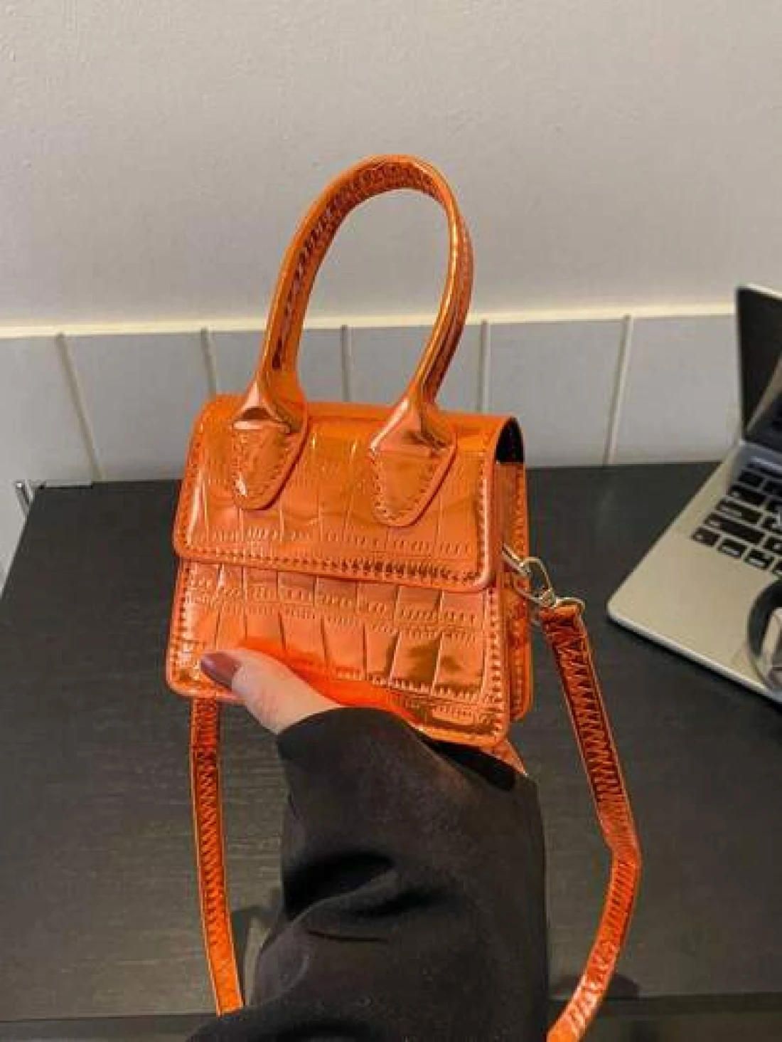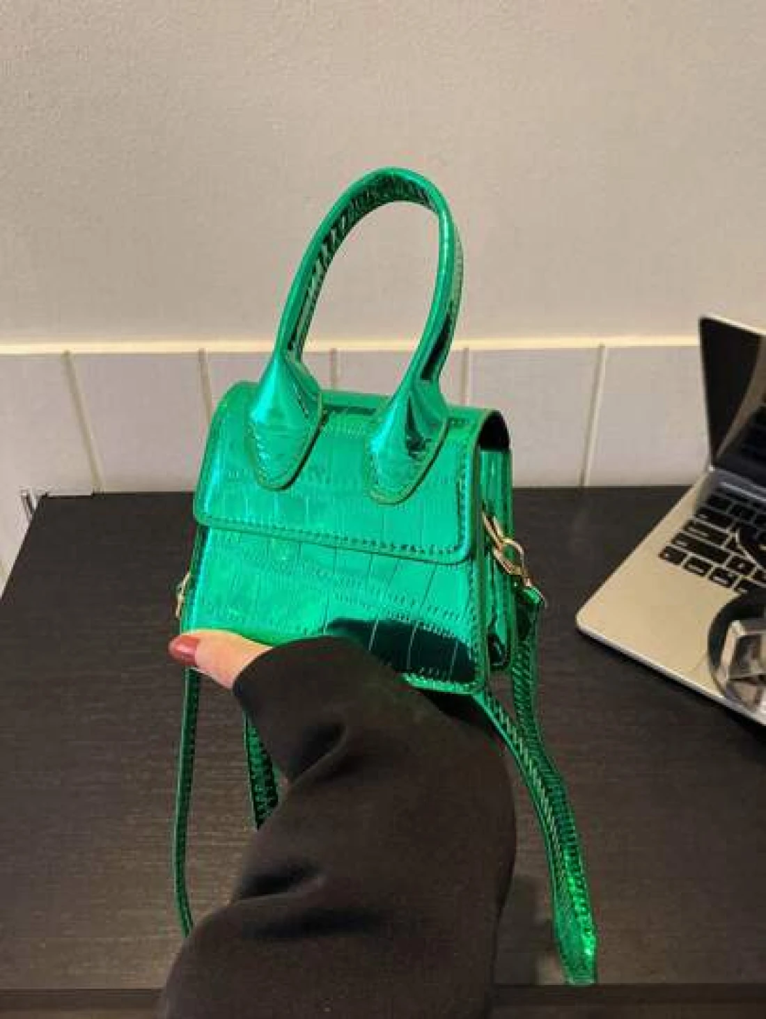 قطعة واحدة حقيبة الكتف المربعة الصغيرة ذات موحد اللون بنقشة تمساح على الطراز الغربي ذات طابع شخصي عصري، مناسبة جدًا للمراهقين للخروج في موعد والتسوق