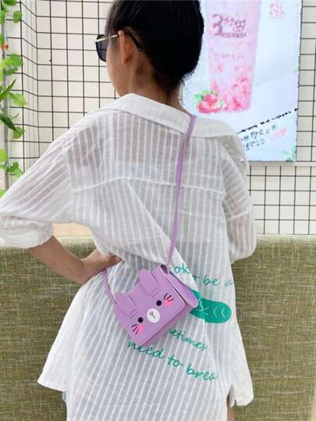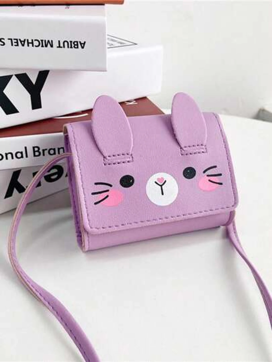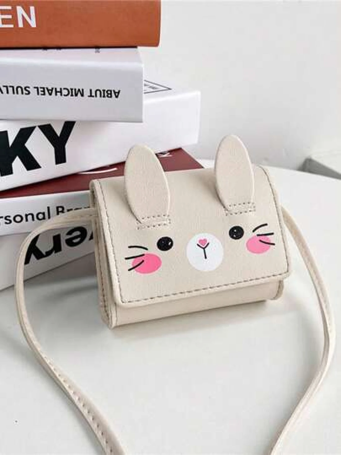 1pc Pu Magnet Closure Fashion Cartoon Bunny Three Dimensional Ears Shoulder Messenger Bag Cute Mini Coin Purse For Girls Suitable For A Variety Of Occasions Comfortable Shoulder Straps Versatile And N