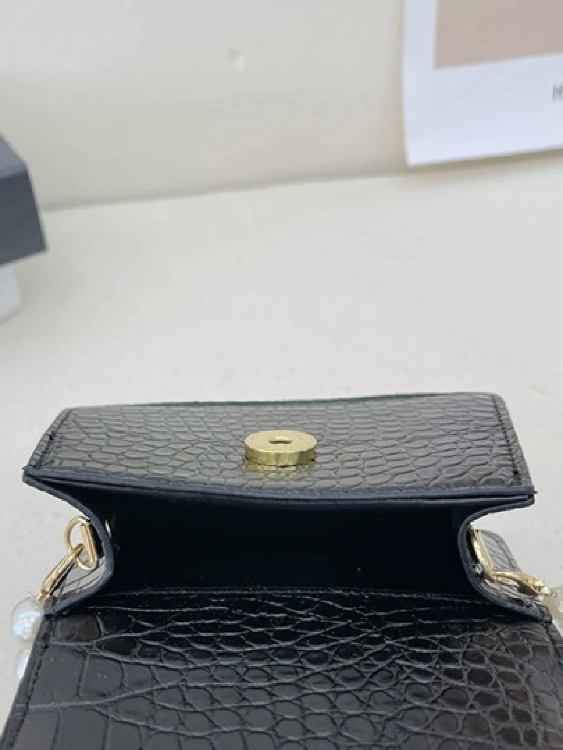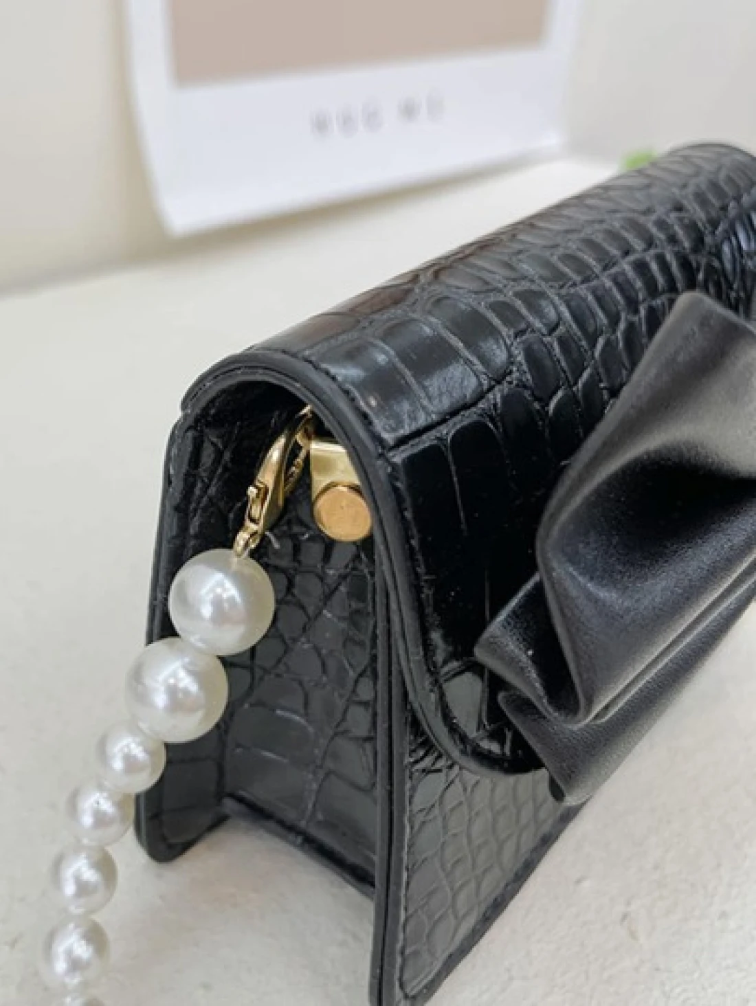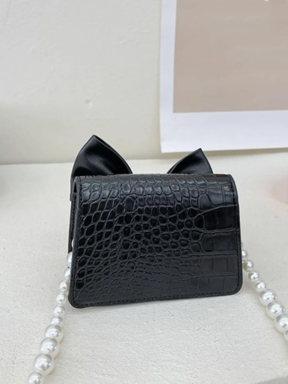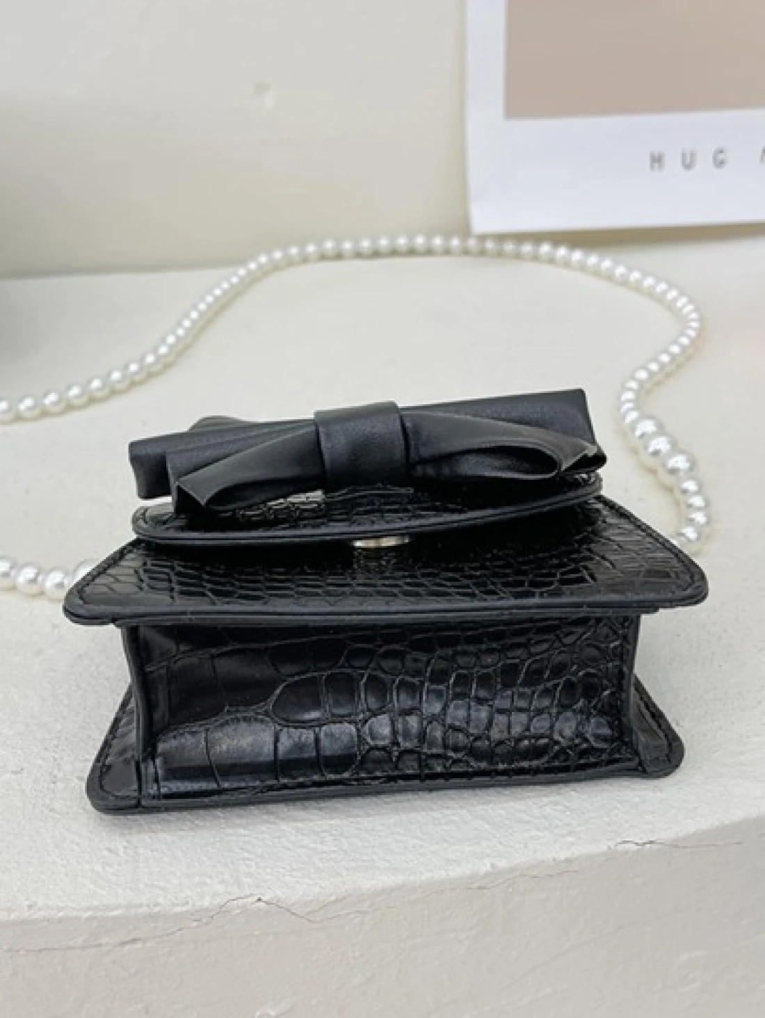 حقيبة مربعة بنقش تمساح مزخرف بعقدة الفراشة بنات
