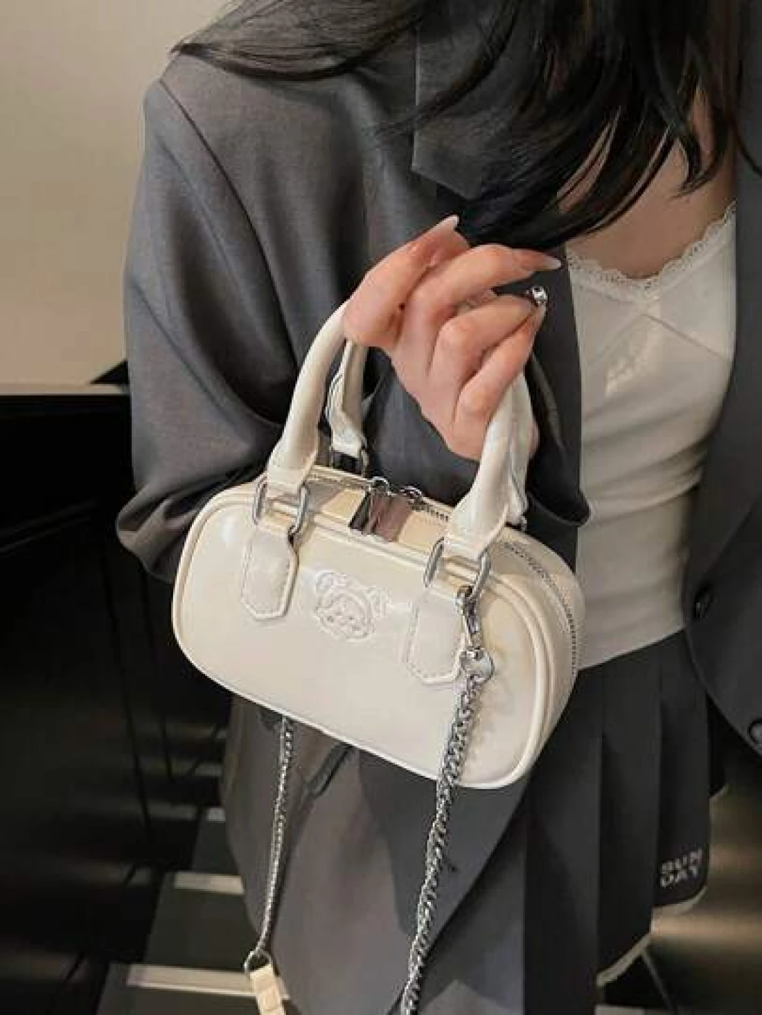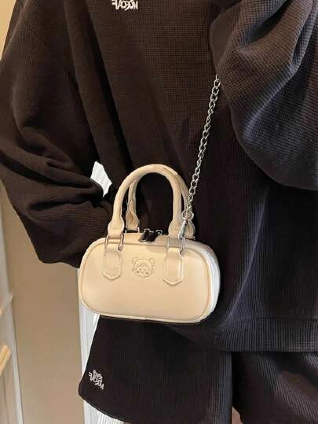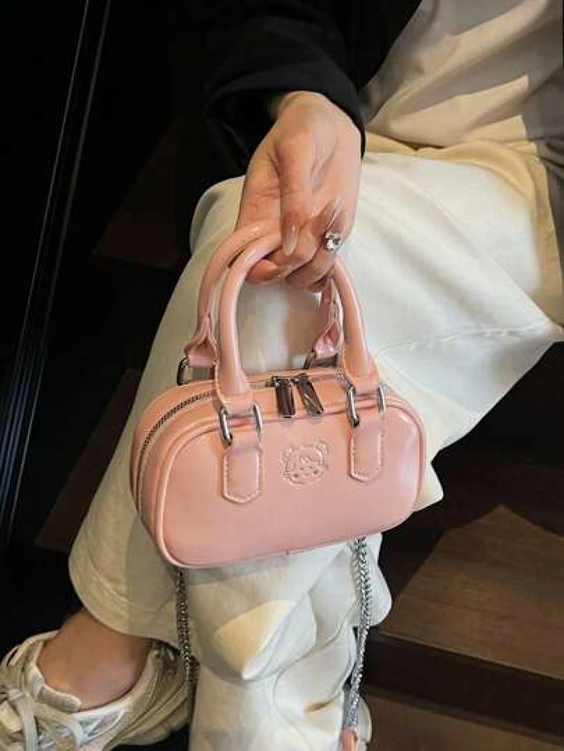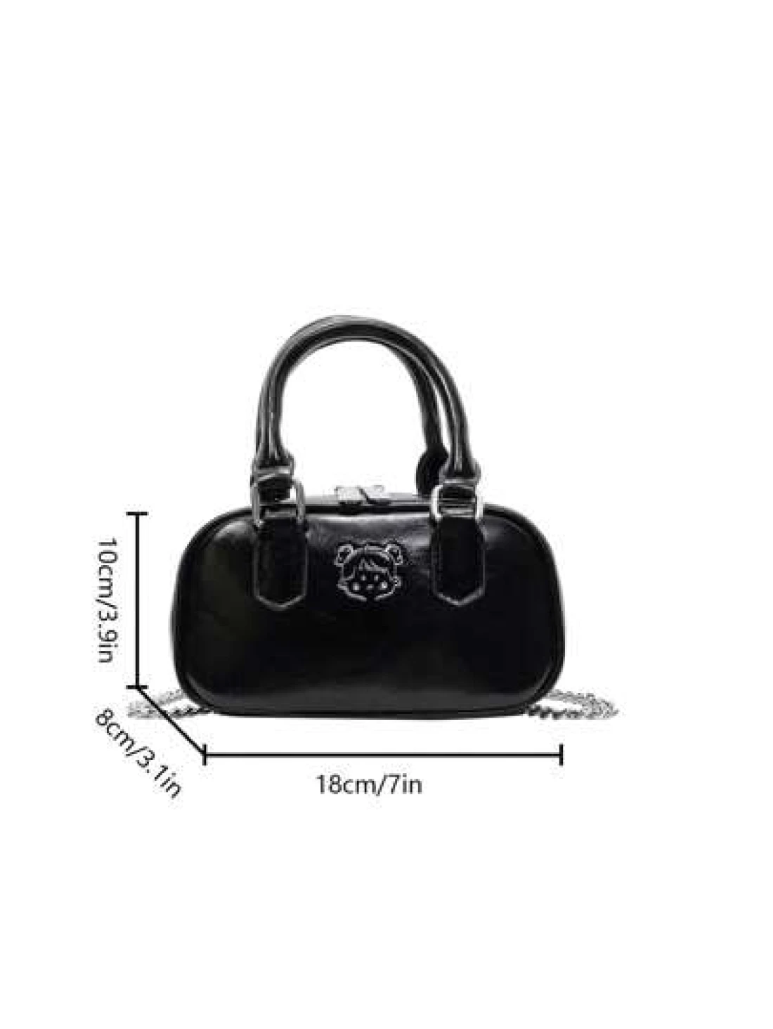 1pc Girls Plain Cute Girl Print PU Handbag Zipper Closure Simple Versatile Girl Crossbody Bag Suitable For Daily Or Festival Use