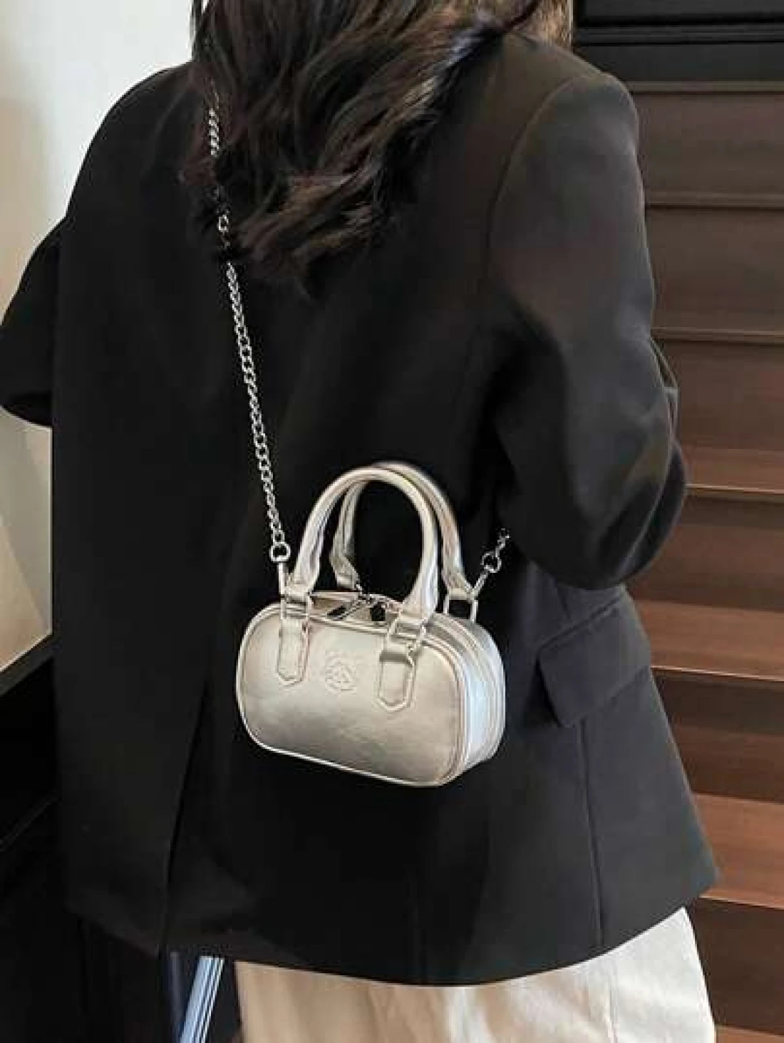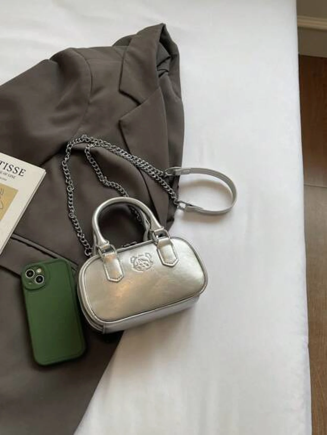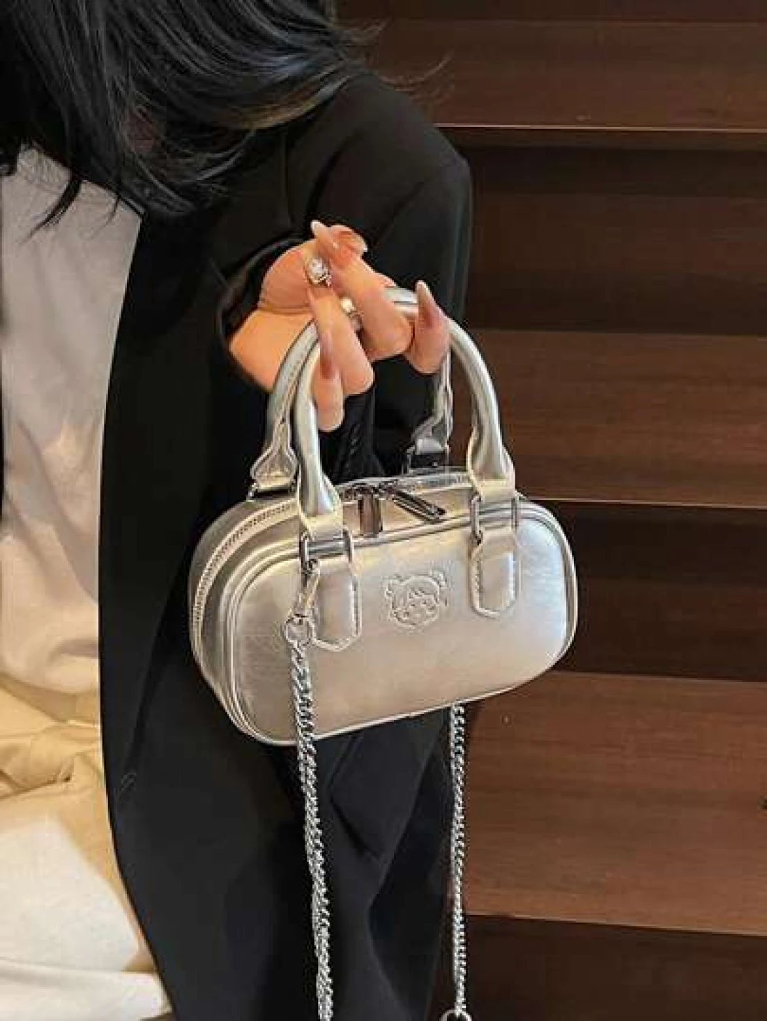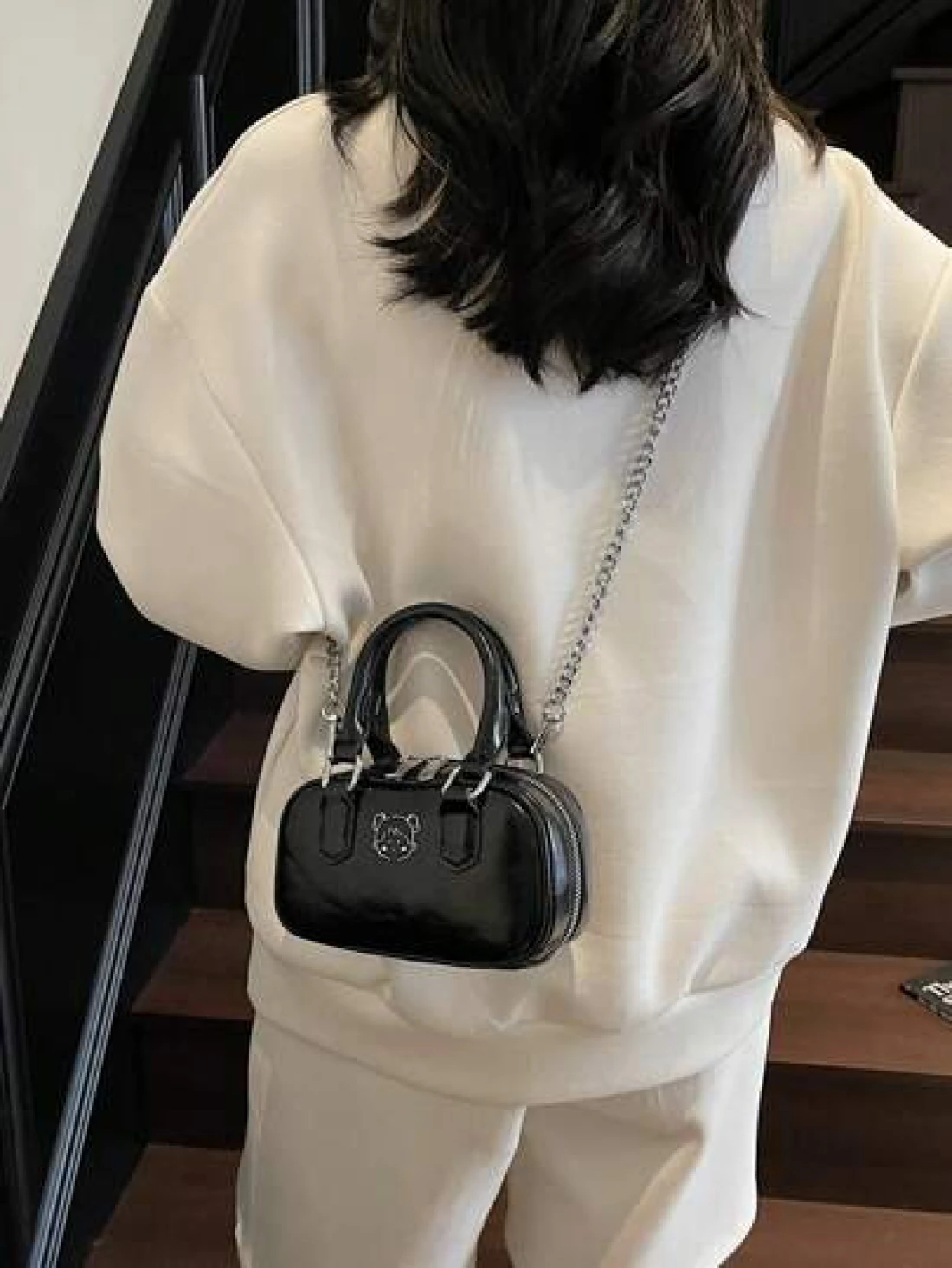 1pc Girls Plain Cute Girl Print PU Handbag Zipper Closure Simple Versatile Girl Crossbody Bag Suitable For Daily Or Festival Use