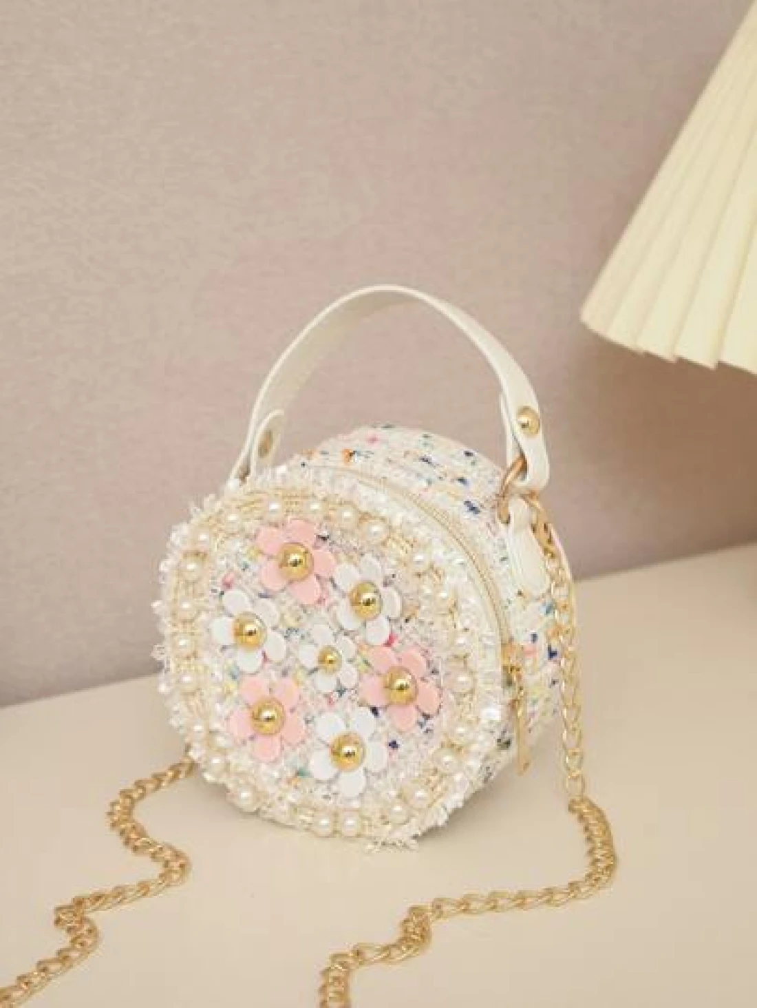 حقيبة كروس صغيرة مزينة بالأزهار لفتيات، ذات إغلاق سحاب دائرية، مناسبة للخروجات