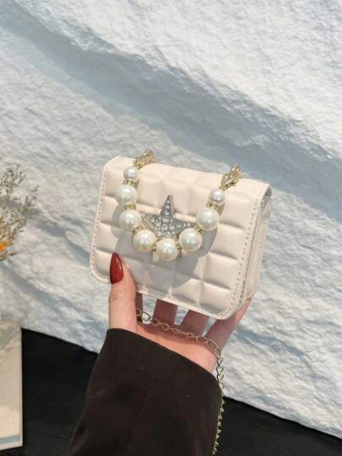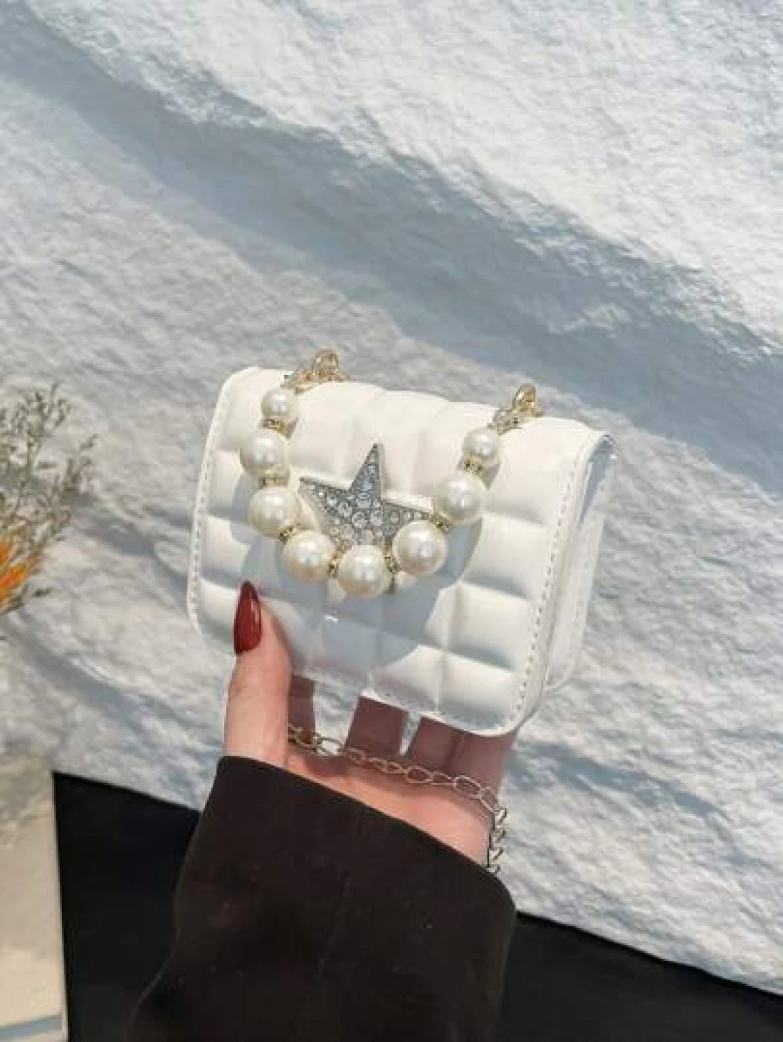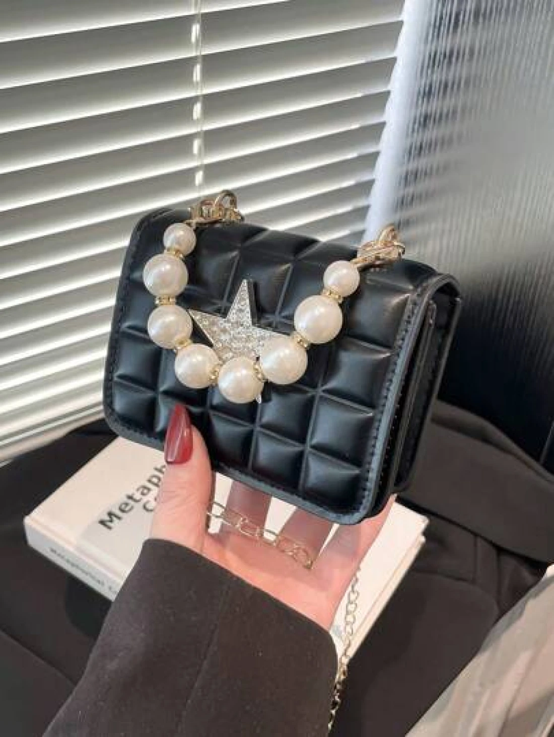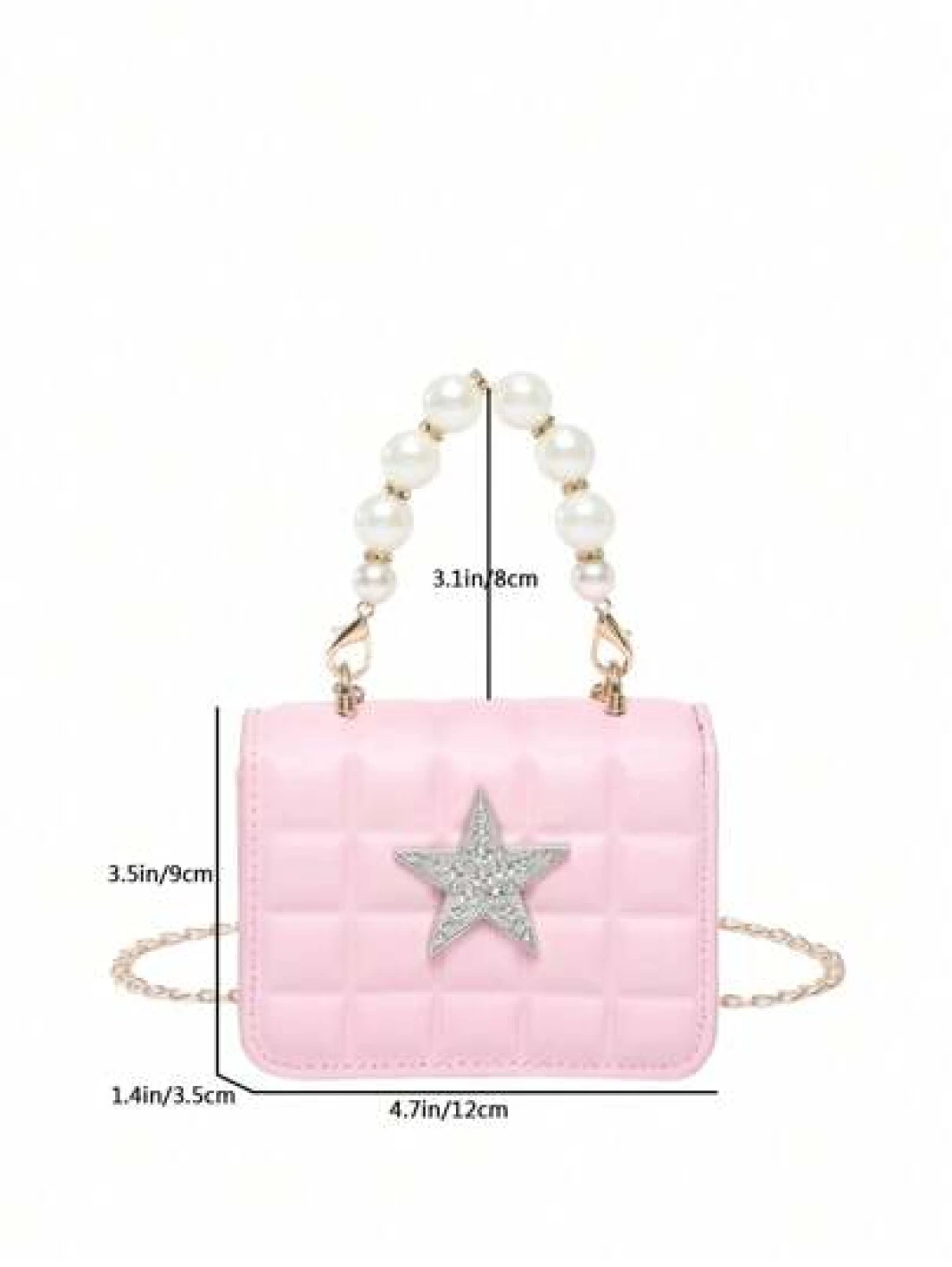 1 قطعة حقيبة مسائية مربعة ذات نجمة خماسية من اللؤلؤ وشبكة الماس، بتصميم فريد مزود بسلسلة كتف، مريحة وقابلة للاستخدام الشامل عبر الجسم أو الكتف، سلسة وملائمة، مناسبة للخروجات اليومية والمدرسة واللعب، هدية مثالية للفتيات