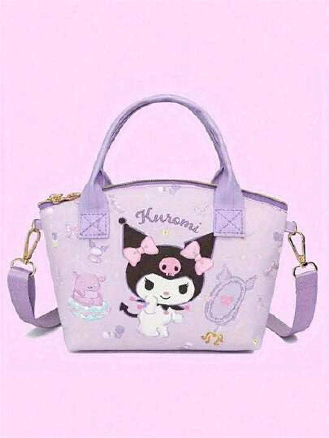 Sanrio حقيبة كتف وحقيبة مكياج ذات حزام كروس للأطفال بشخصيات Sanrio قطعة واحدة