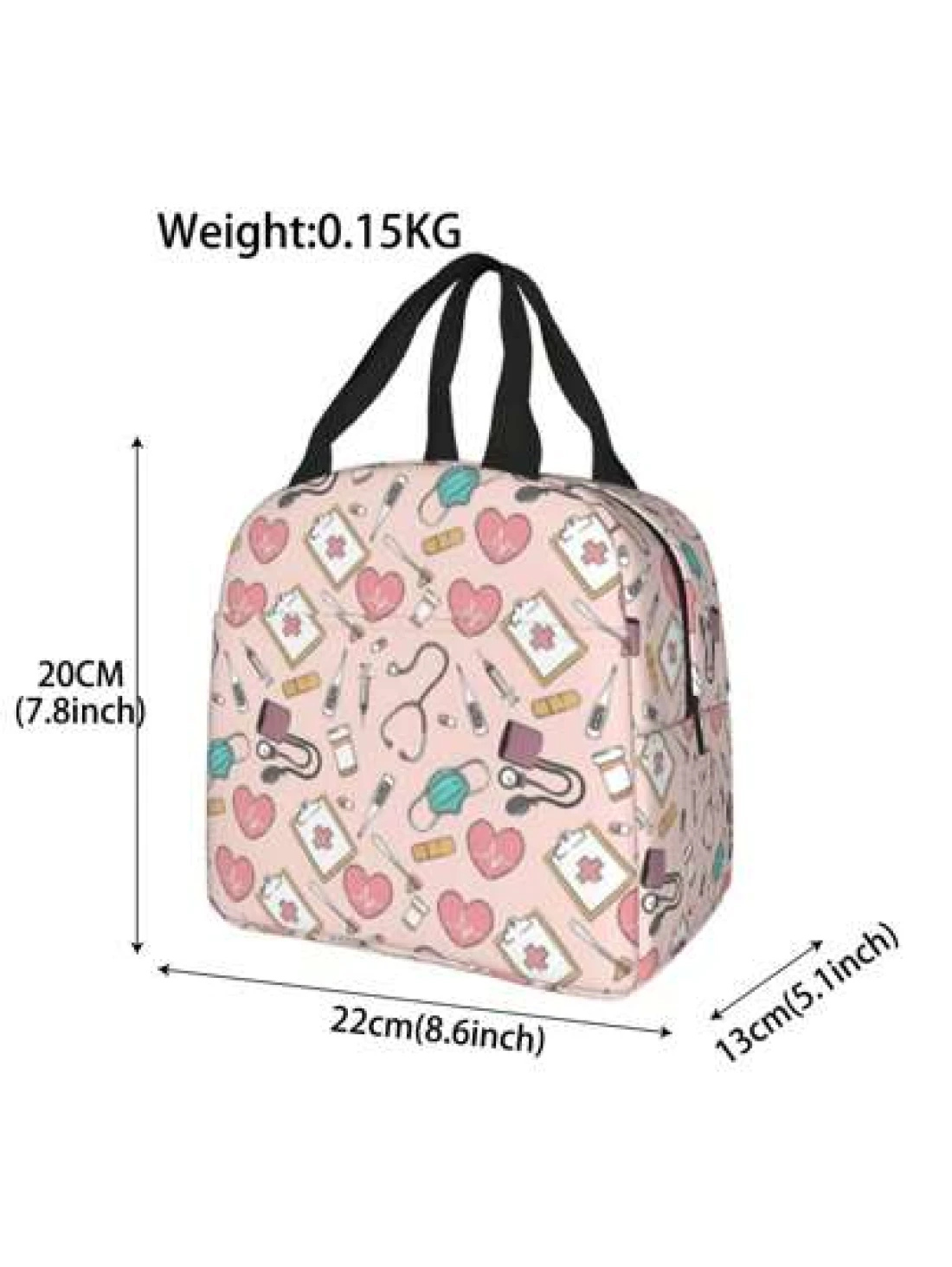 حقيبة غذاء مطبوعة بطباعة طبية قطعة واحدة مناسبة للعمل والسفر والنزهة، جنسي، بدون احتكاك مع الطعام