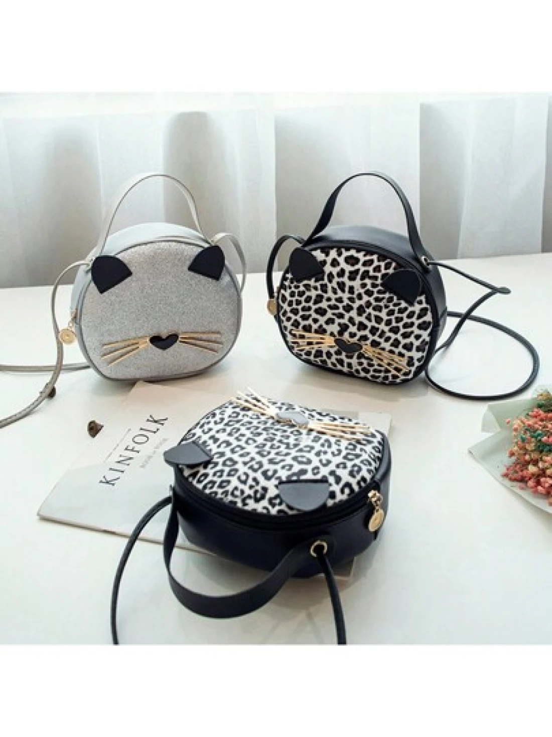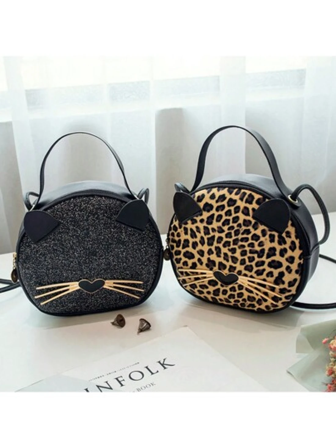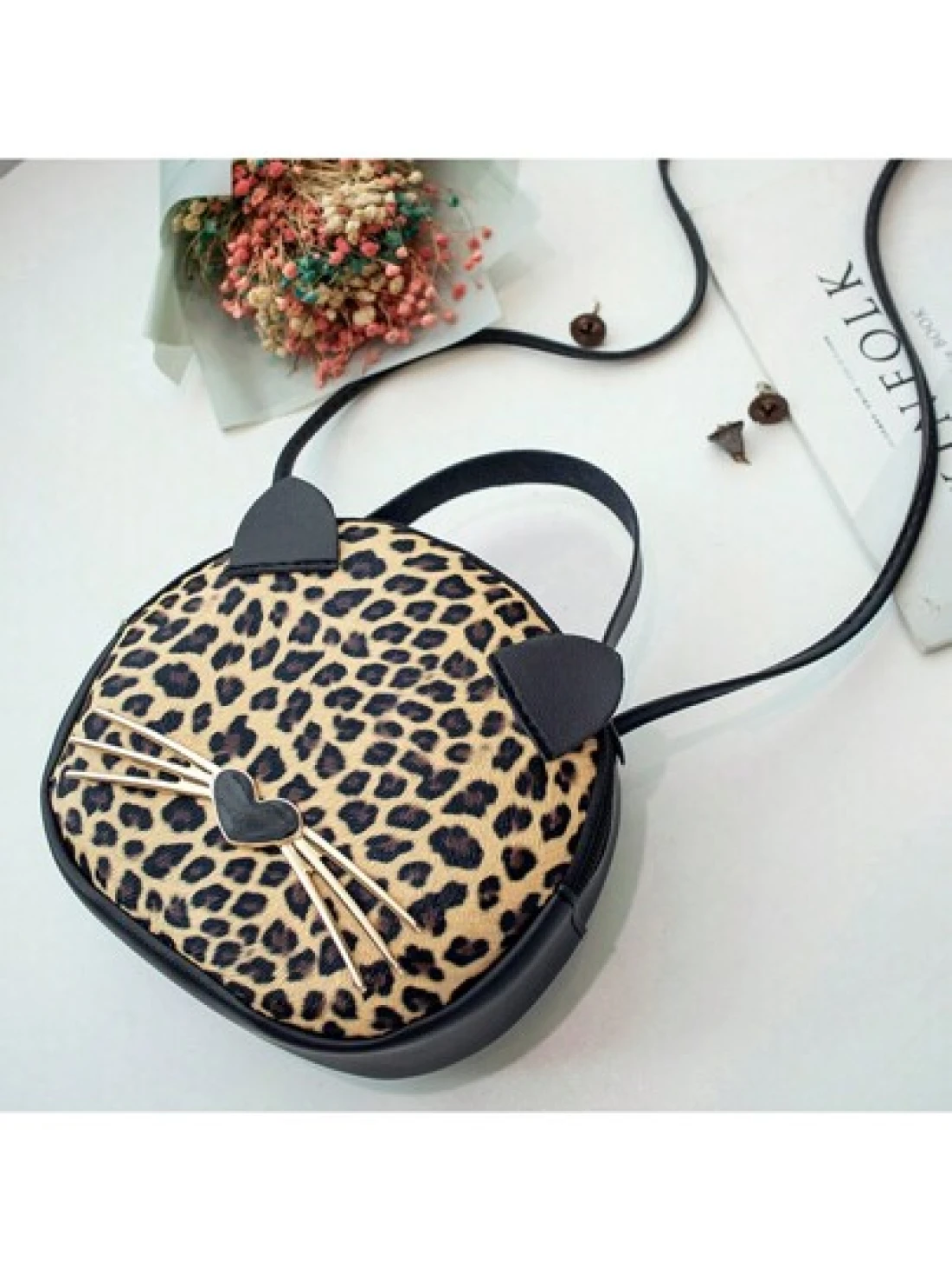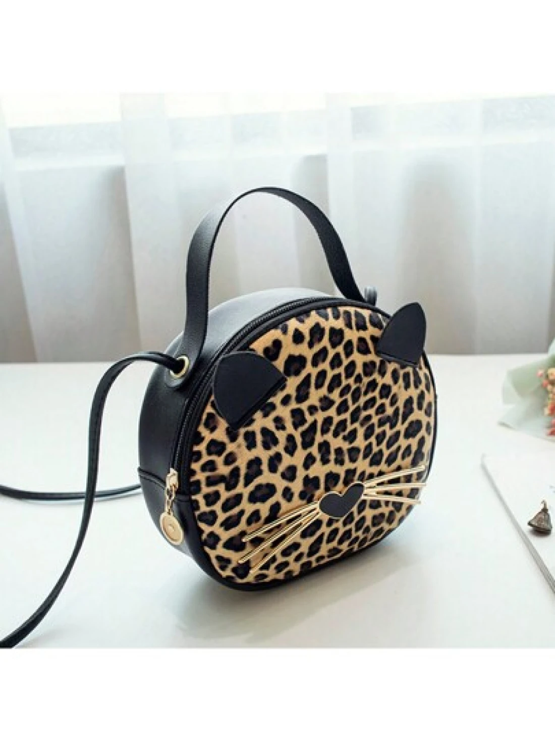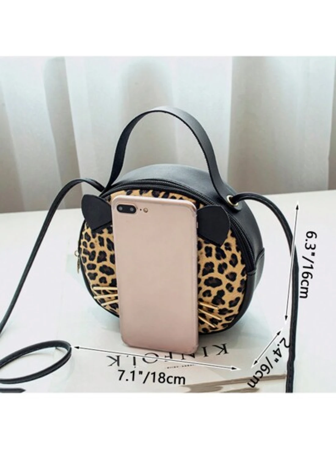 حقيبة جديدة للفتاة بطبعة فهد 1قطعة، حقيبة جلدية اصطناعية للهاتف المحمول بشكل قطة، حقيبة دائرية صغيرة جذابة وع