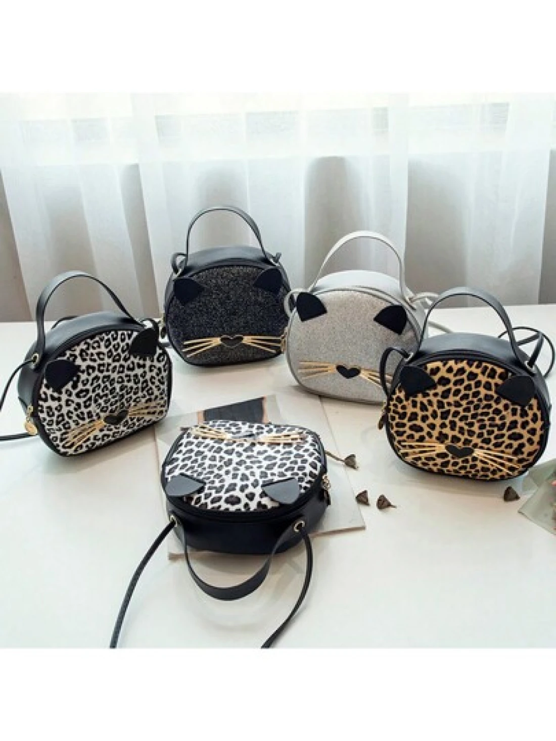 حقيبة جديدة للفتاة بطبعة فهد 1قطعة، حقيبة جلدية اصطناعية للهاتف المحمول بشكل قطة، حقيبة دائرية صغيرة جذابة وعصرية ومثالية للهدايا