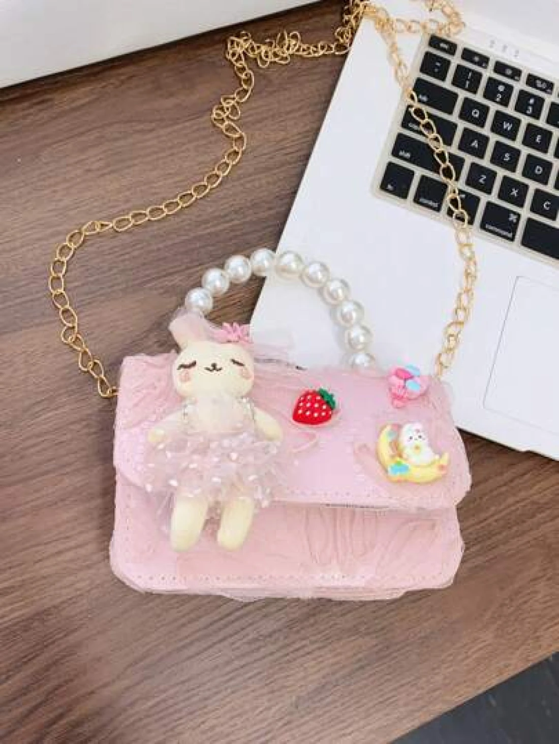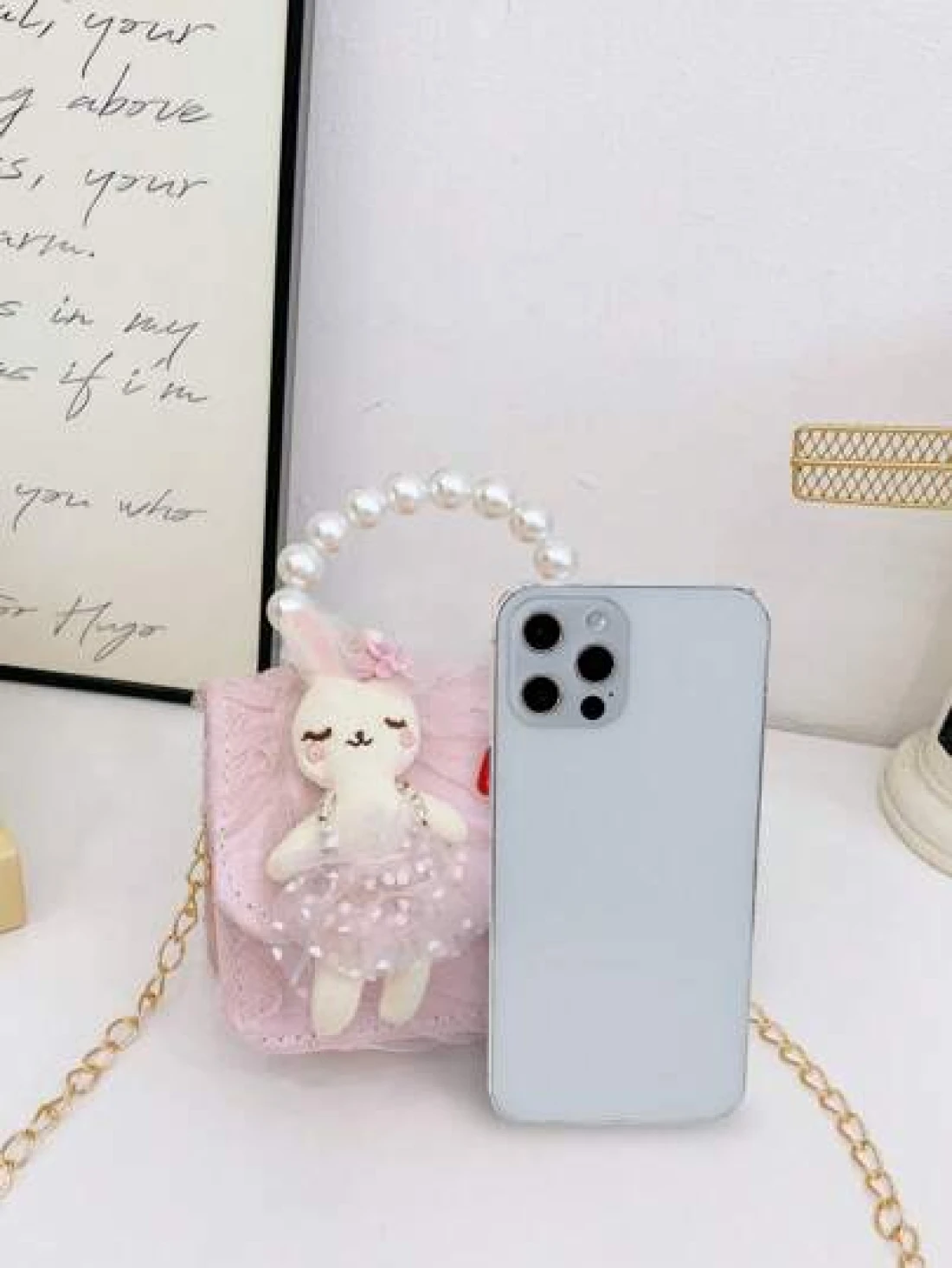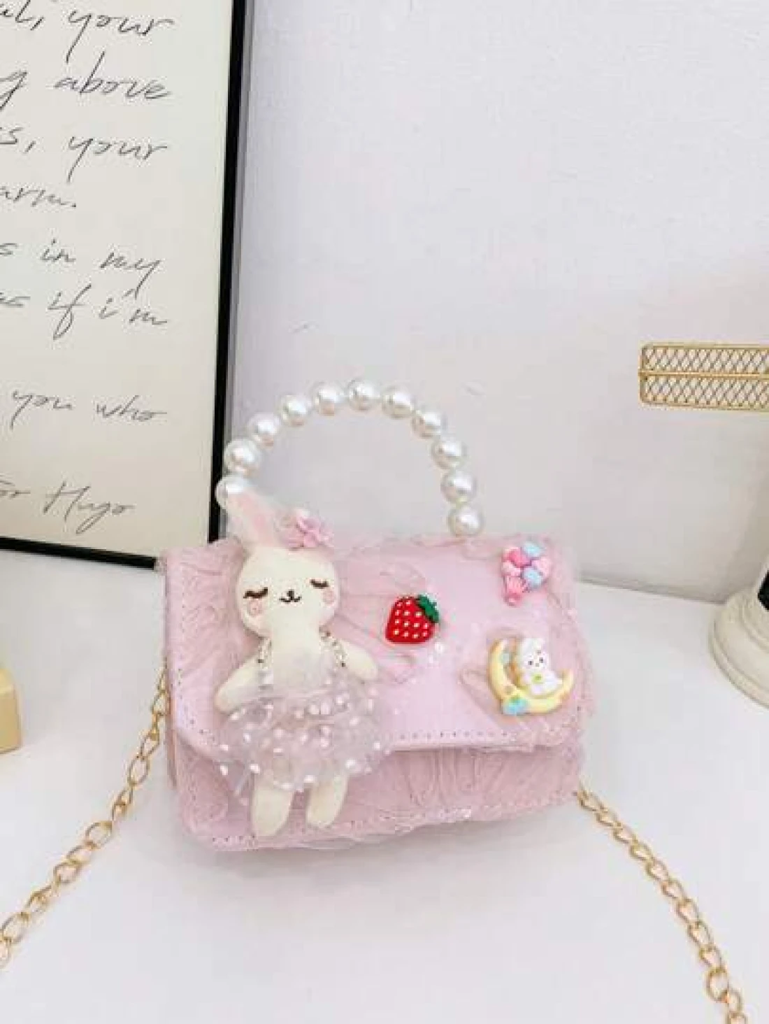1 حقيبة صغيرة للأطفال الصغار حقيبة لؤلؤ يمكن قلب الحقيبة، حقيبة أميرة ذات سلسلة، حقيبة كتف مربعة صغيرة، حقيبة تخزين الحلوى، حقيبة متعددة الاستخدامات خفيفة الوزن قابلة للطي، صلبة ذات لون أنيق وأنيق، مزينة بأرنب كرتوني طريف كأميرة كاواي، محفظة نقود للأطفال الصغار والطلاب ، ملحقات سفر