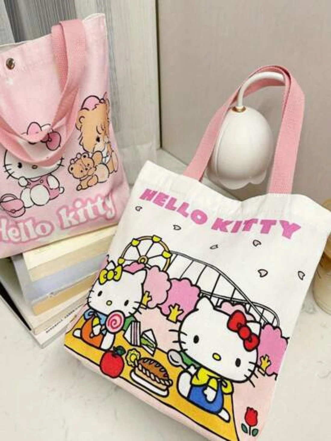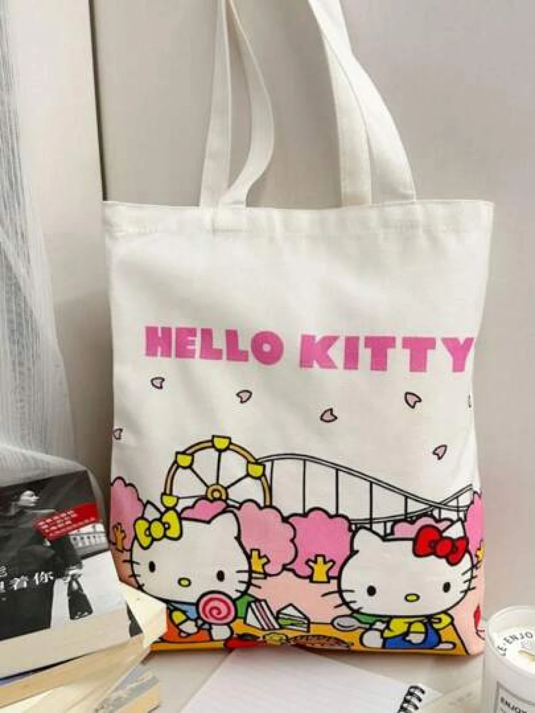Sanrio Cartoon Sanrio Hello Kitty Kuromi New Large Capacity Commuting Canvas Bag Girls Anime Kawaii Cartoon Pattern And Stylish School Design