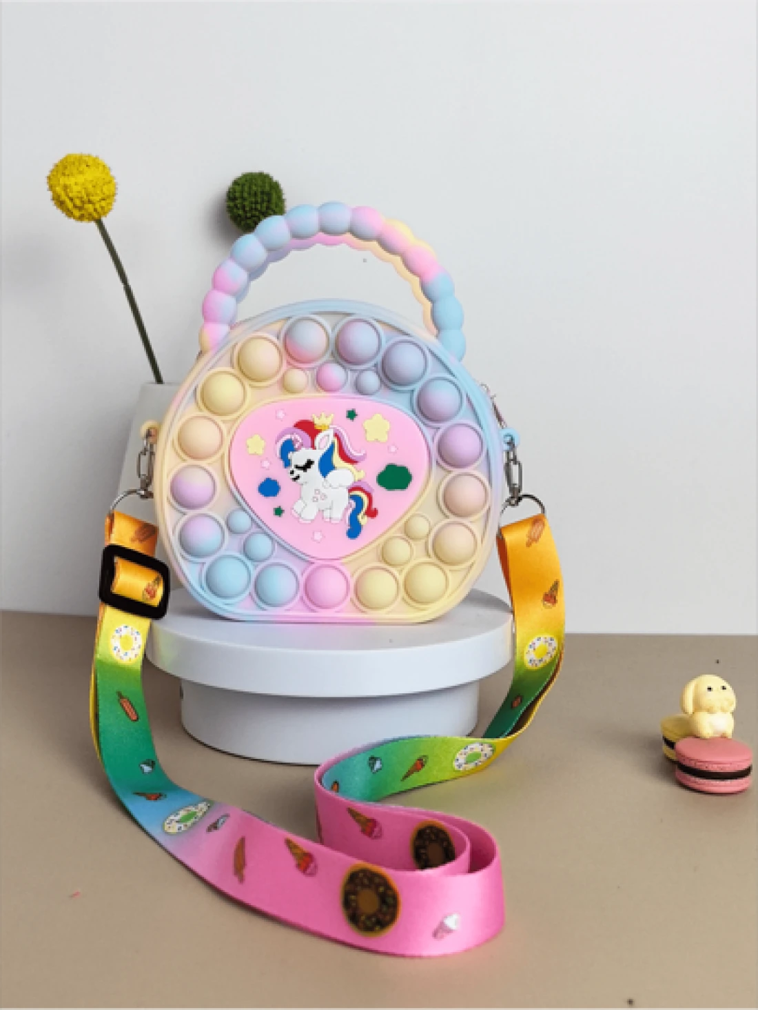 حقيبة يد بتصميم الحب، حقيبة كروس بالسيليكون، محفظة فتاة وحيد القرن - مضاد للضغط، مقاوم للماء ، متين، حقيبة صغي